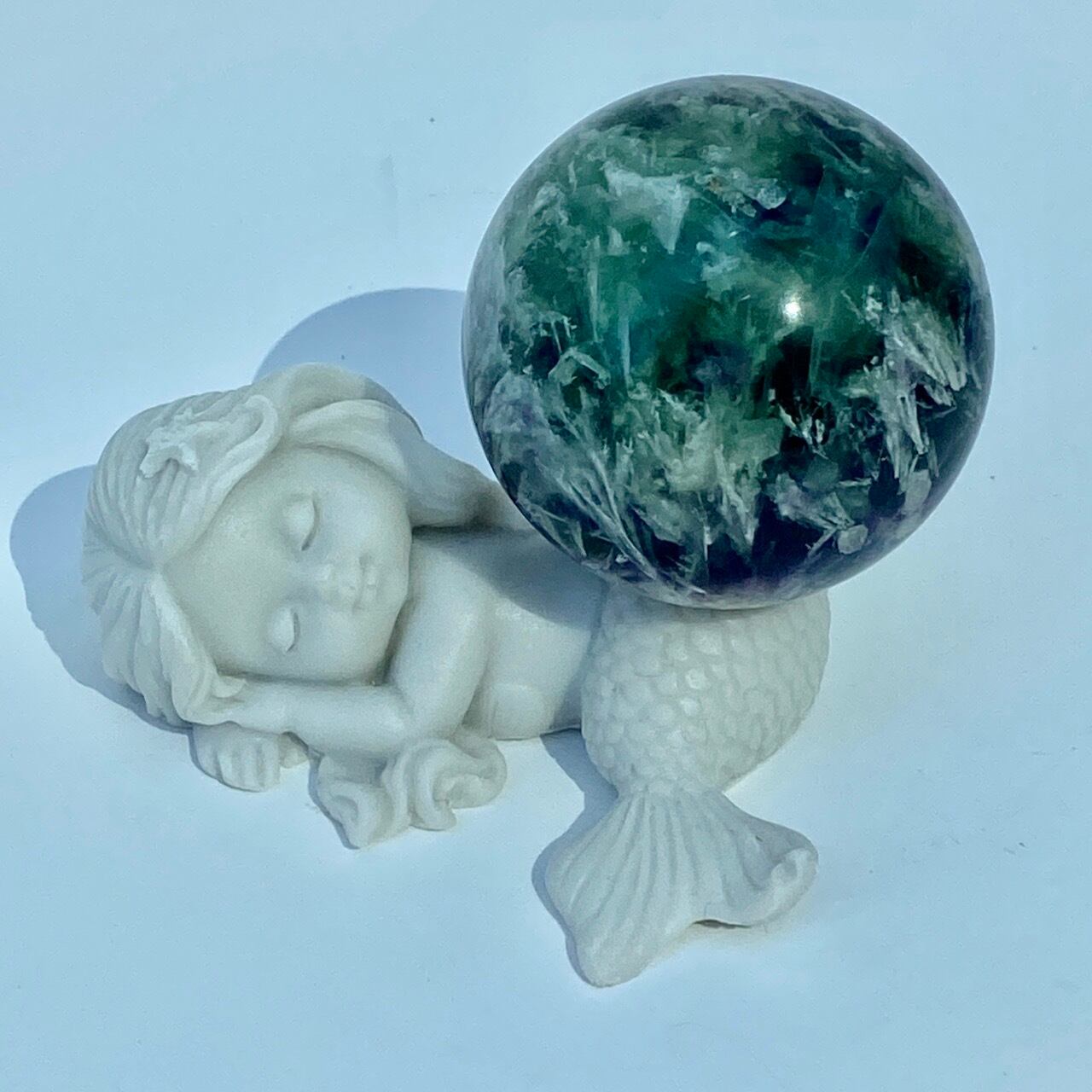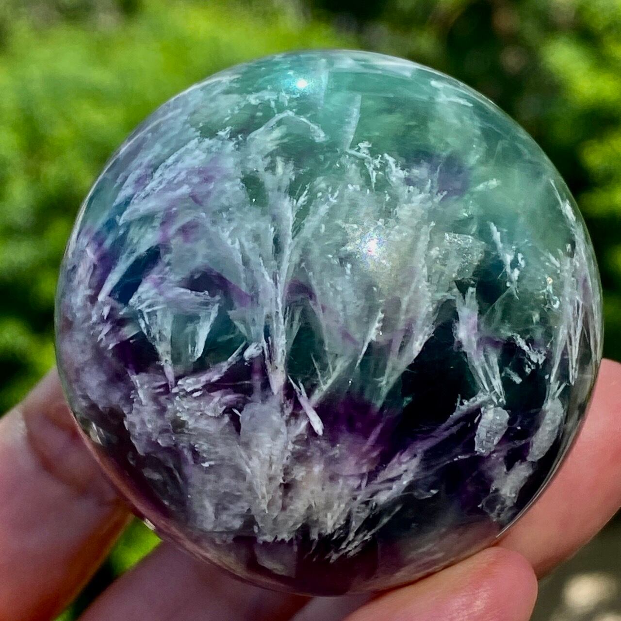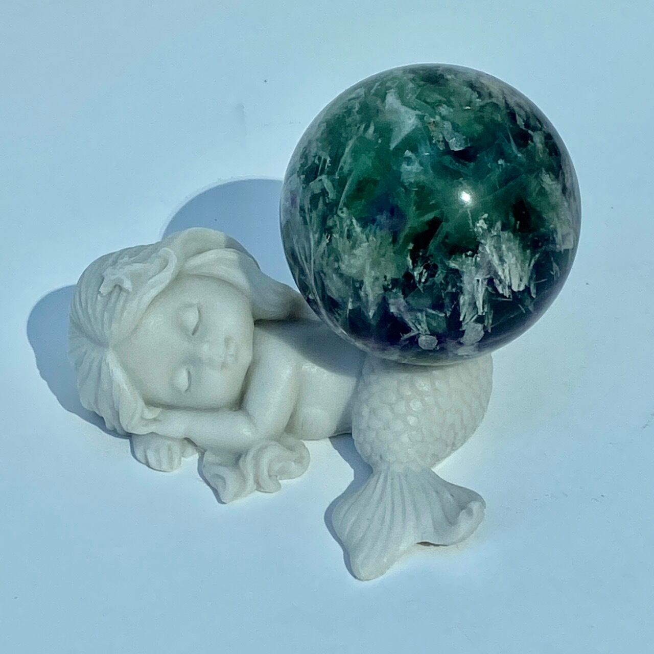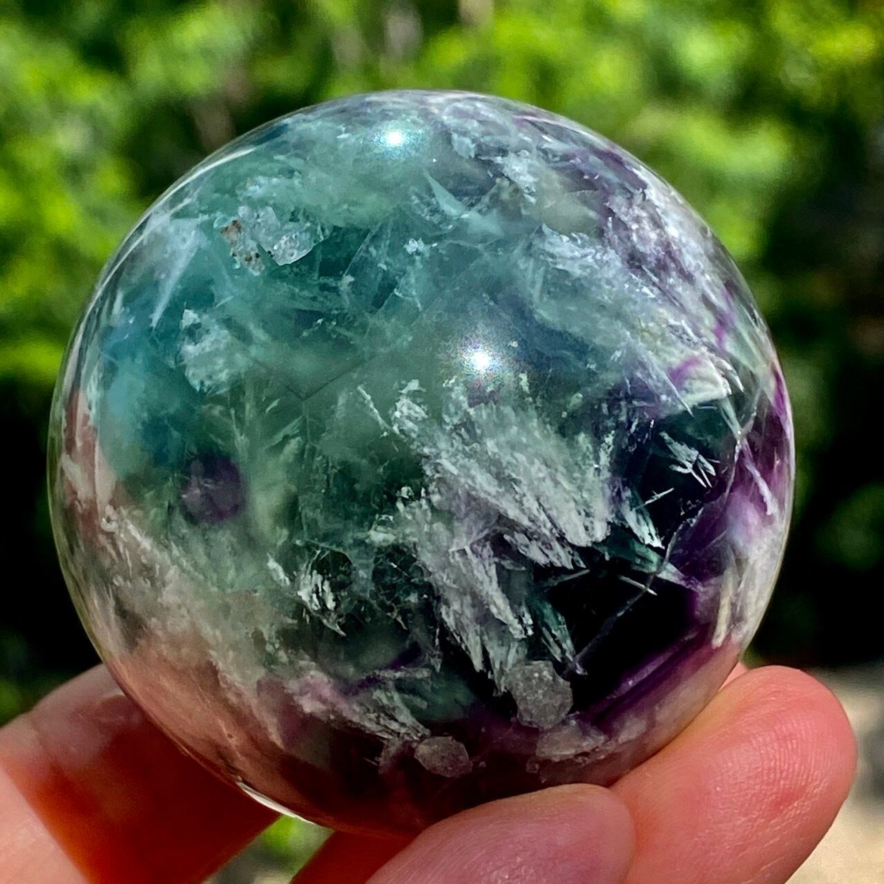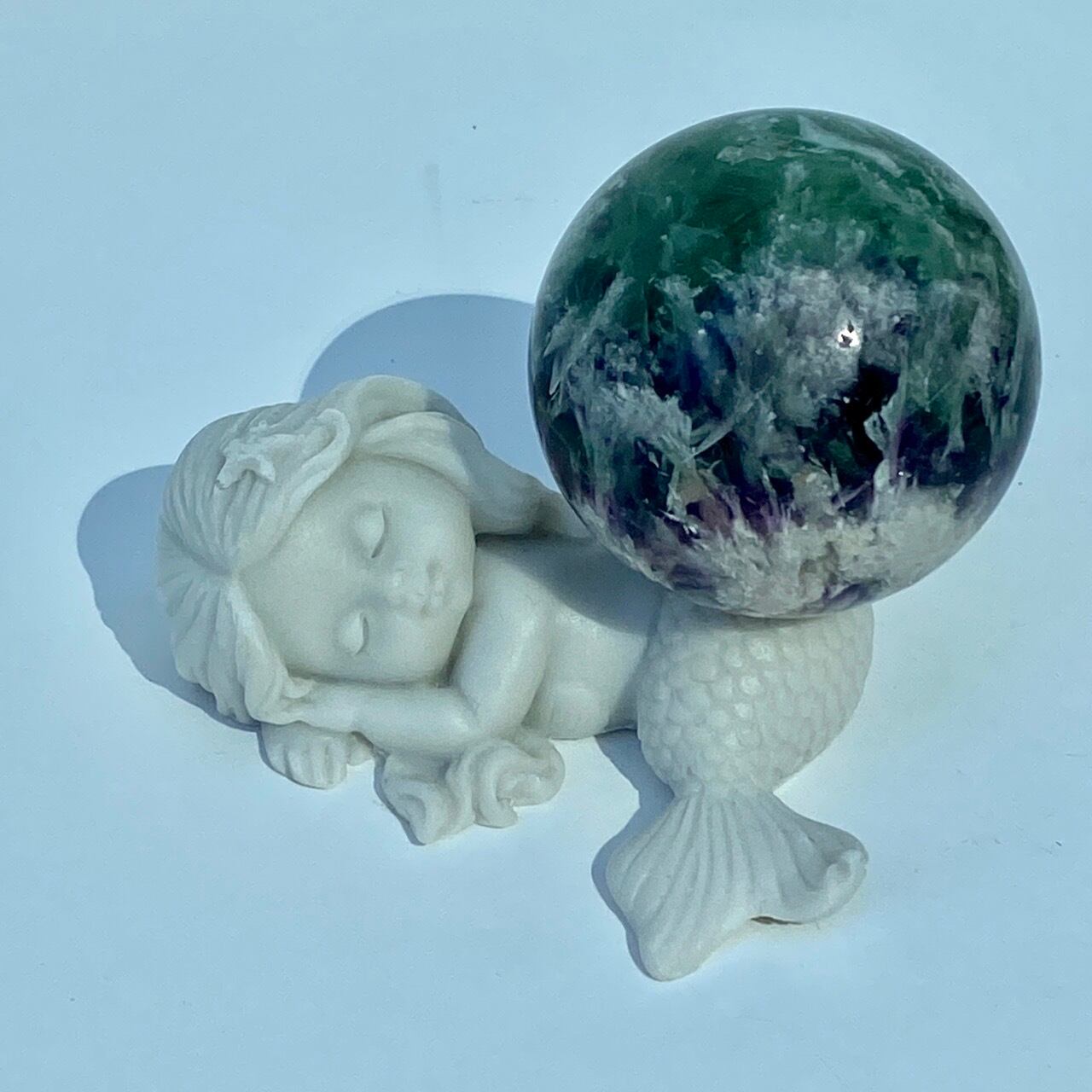 スノーフレーク(エンジェルフェザー)フローライトのスフィア Snowflake Fluorite Sphere SP2074