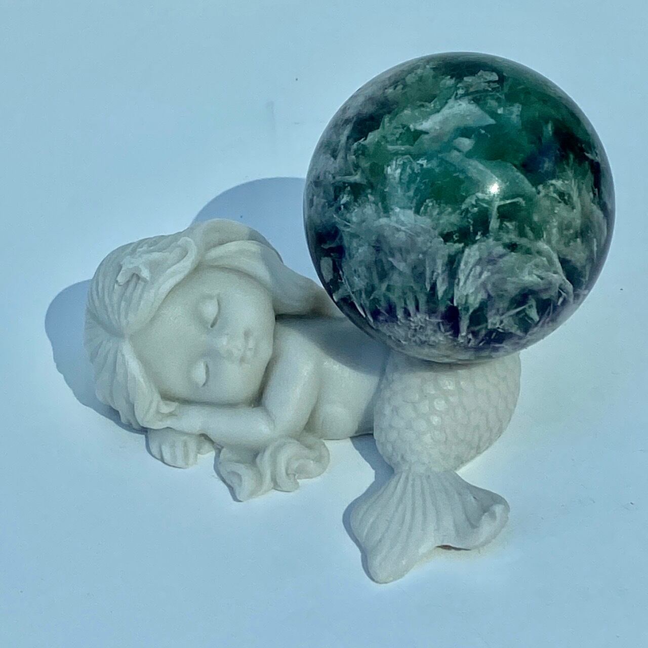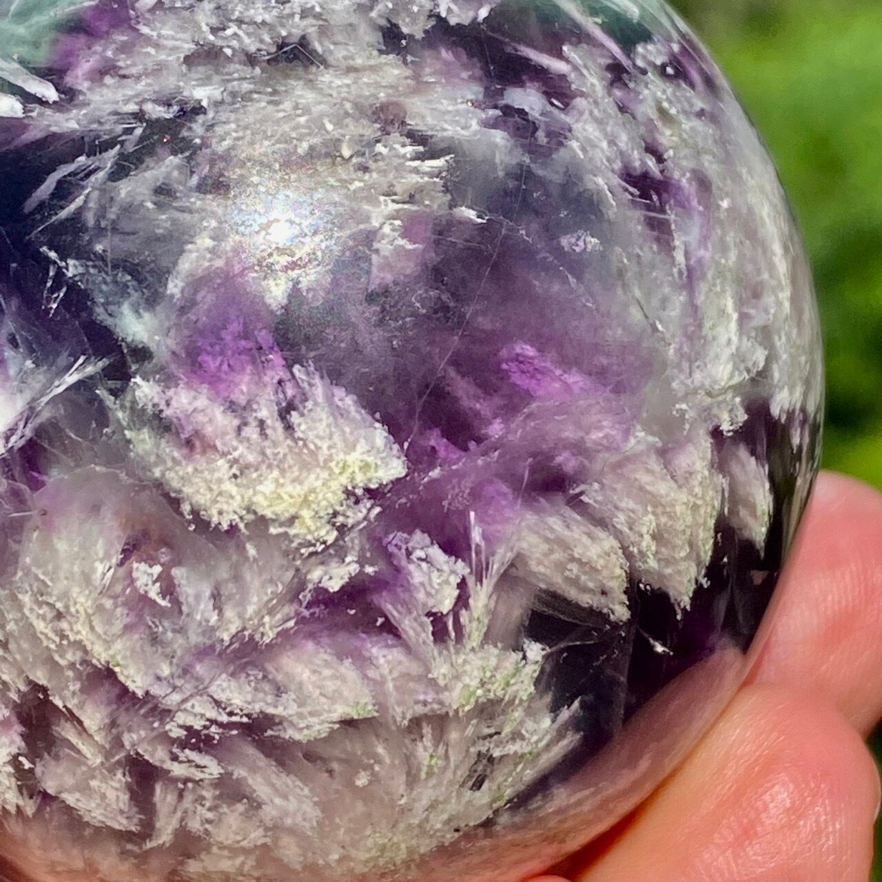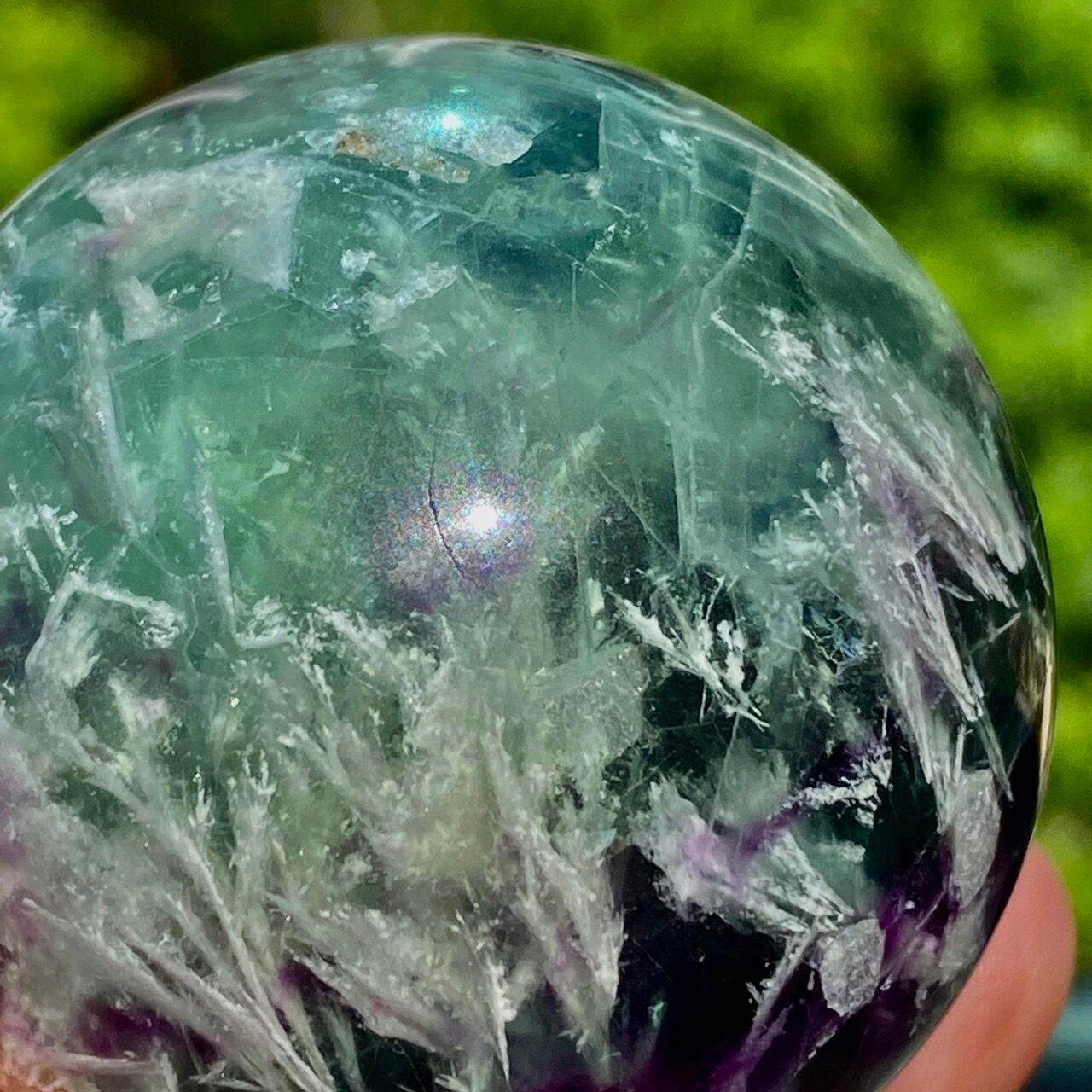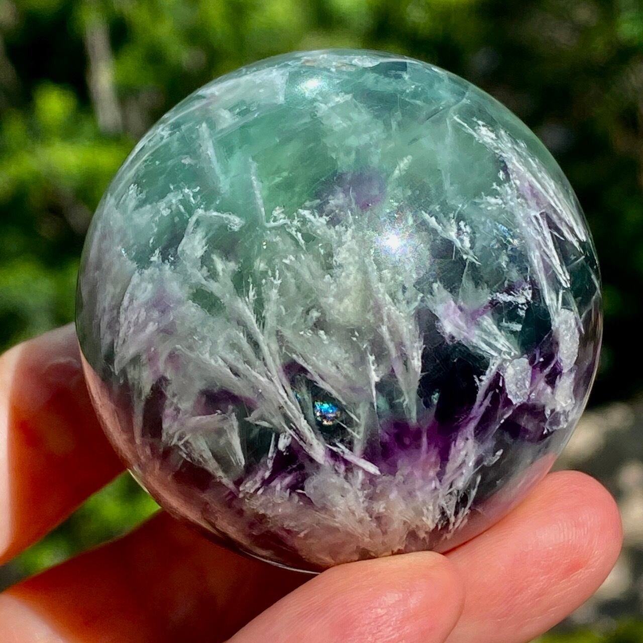 スノーフレーク(エンジェルフェザー)フローライトのスフィア Snowflake Fluorite Sphere SP2074