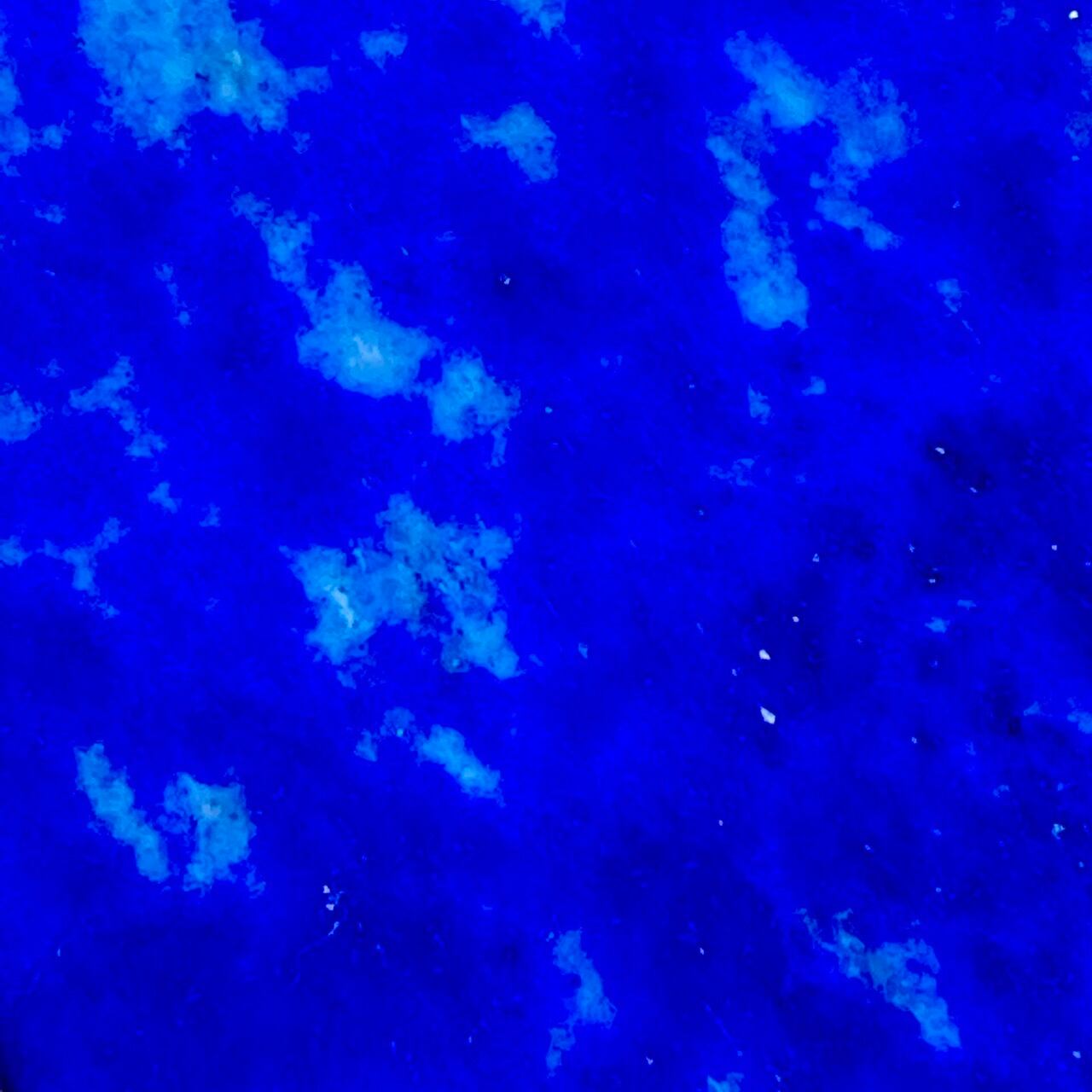両面とも、瑠璃色にカルサイトの白い(水色っぽい)斑模様の子です。金色のパイライトは控えめですが、ライトを当てて角度を変えると、薄ら微量の光を放ちます。