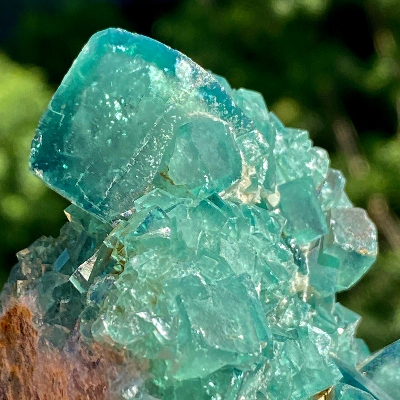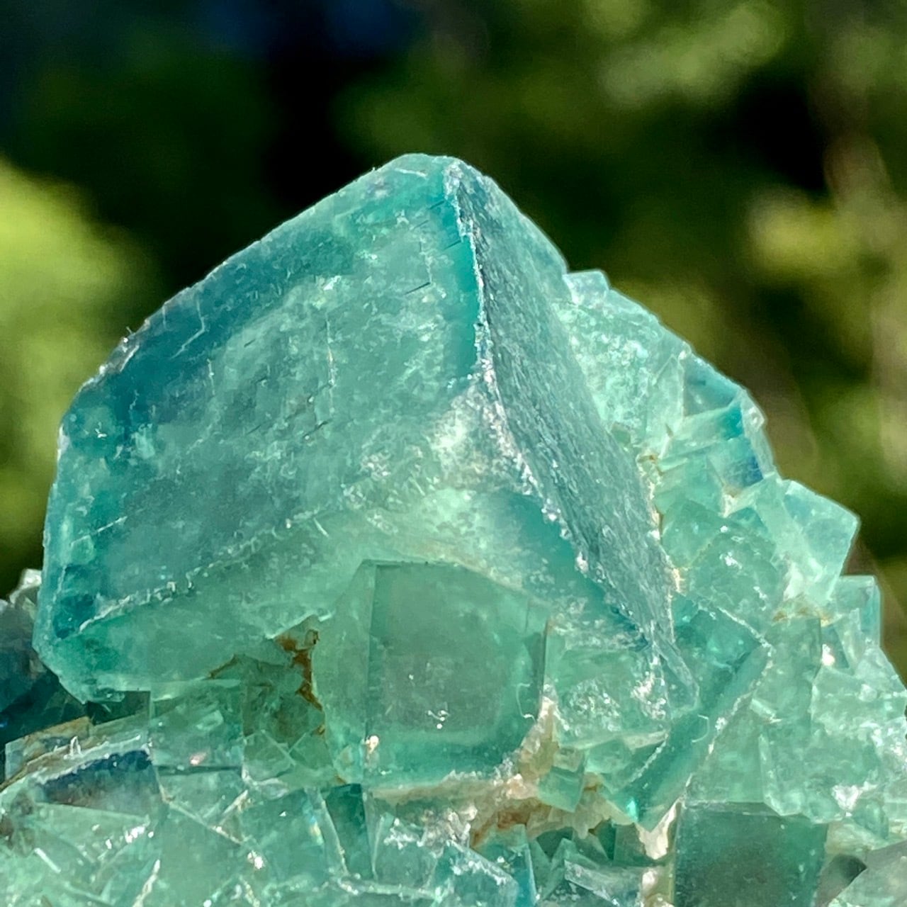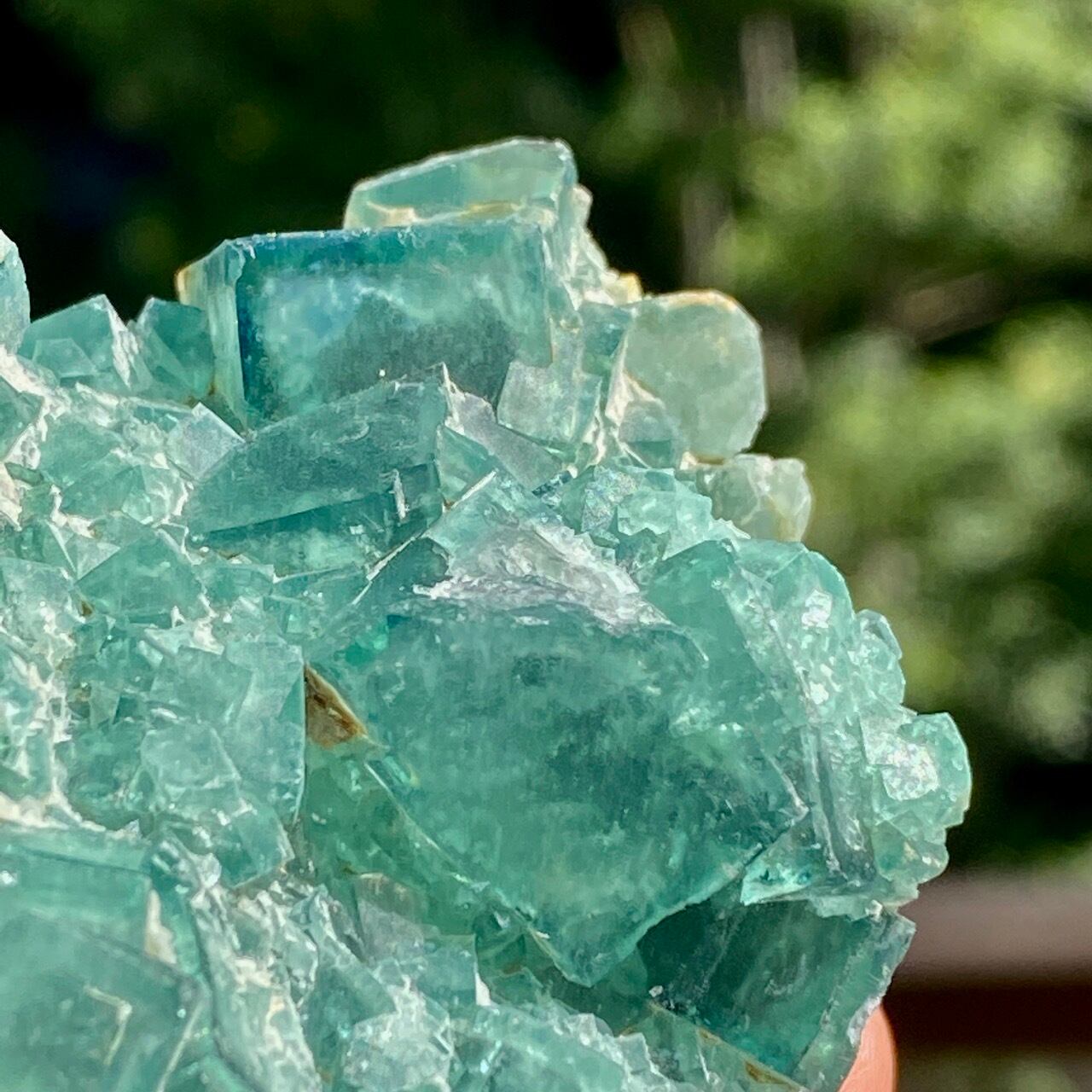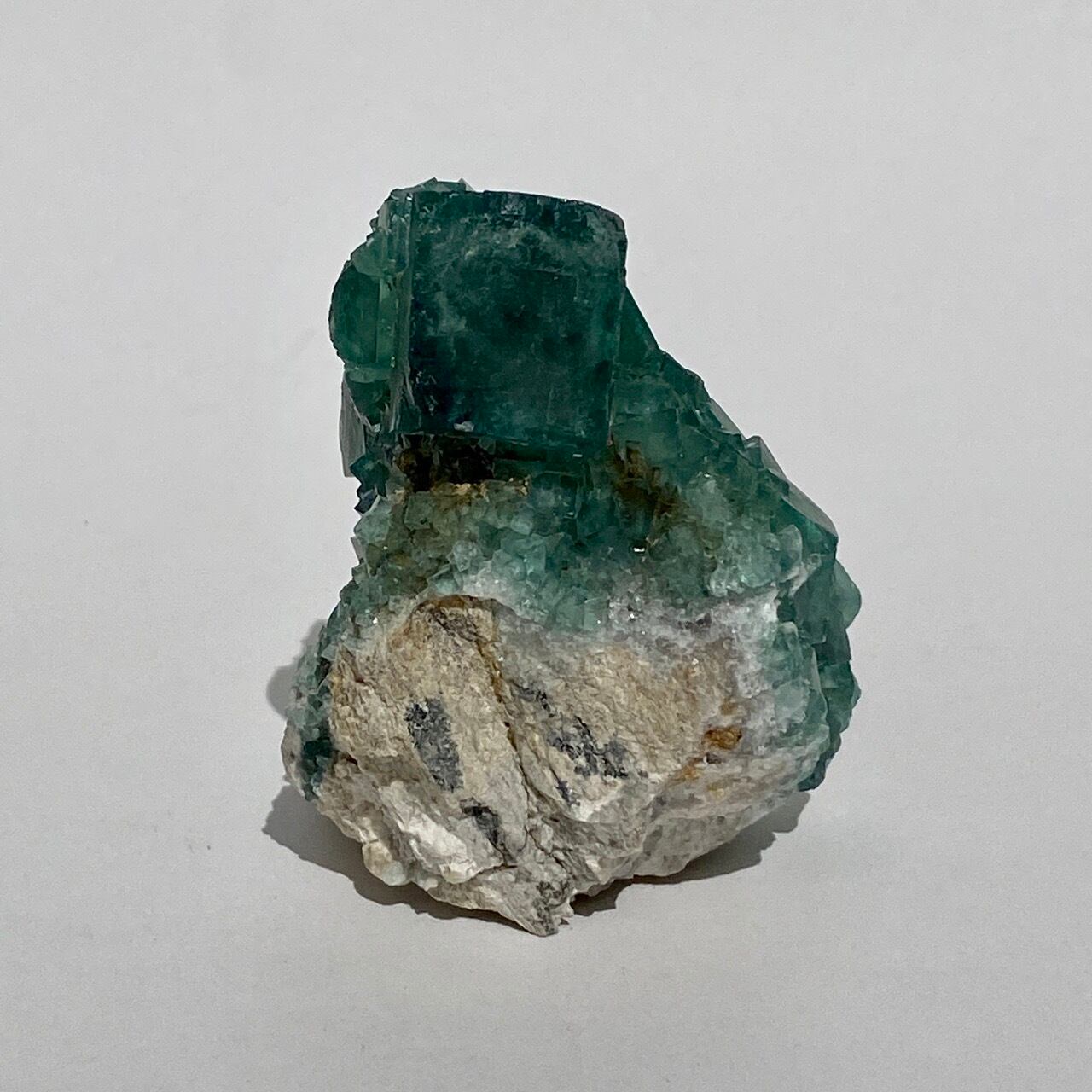 深緑のキューブ型結晶から成る、マダガスカル産フローライトのクラスターです。
