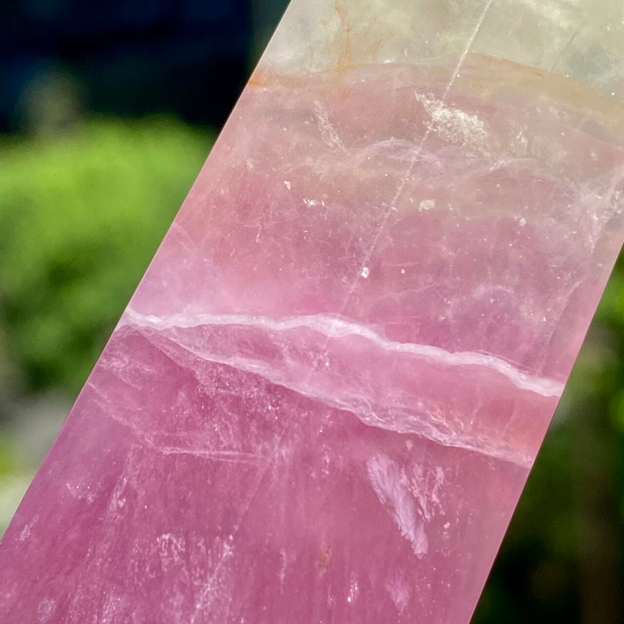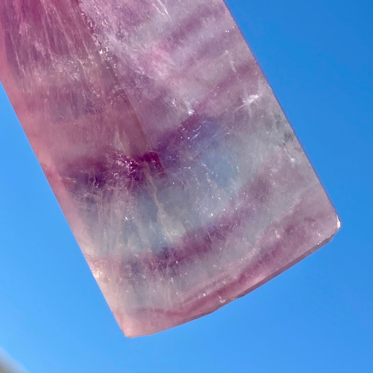 フローライトは太陽光や浴水による浄化には適していません。紫外線に弱いため、取り扱いや保管にご注意下さい。