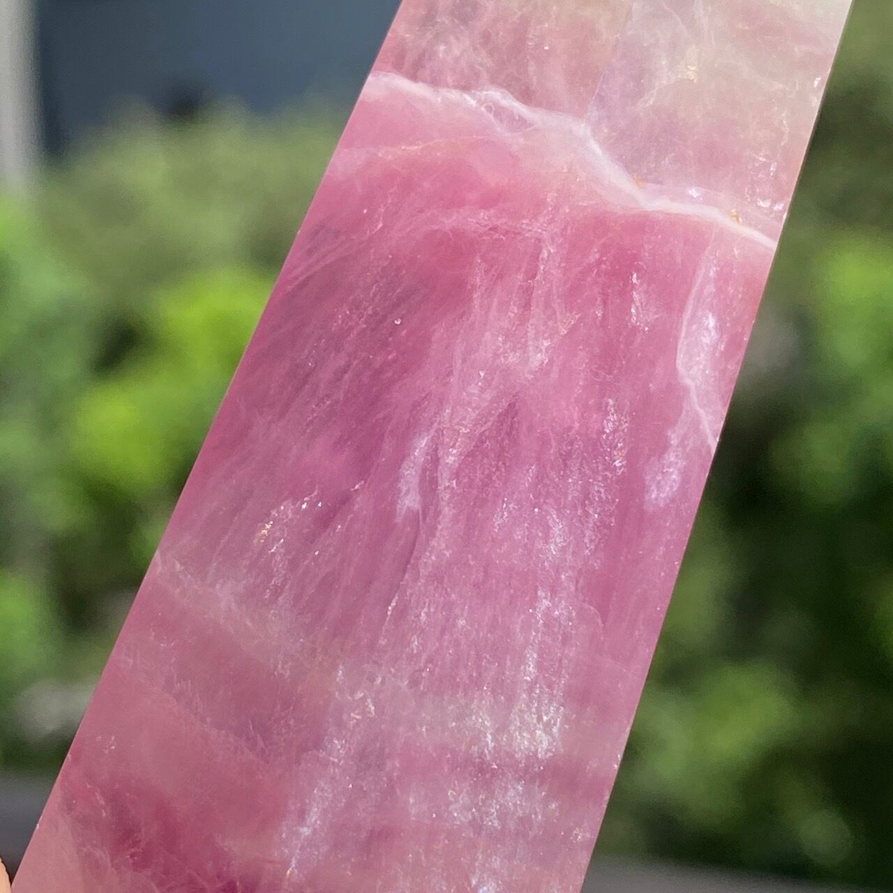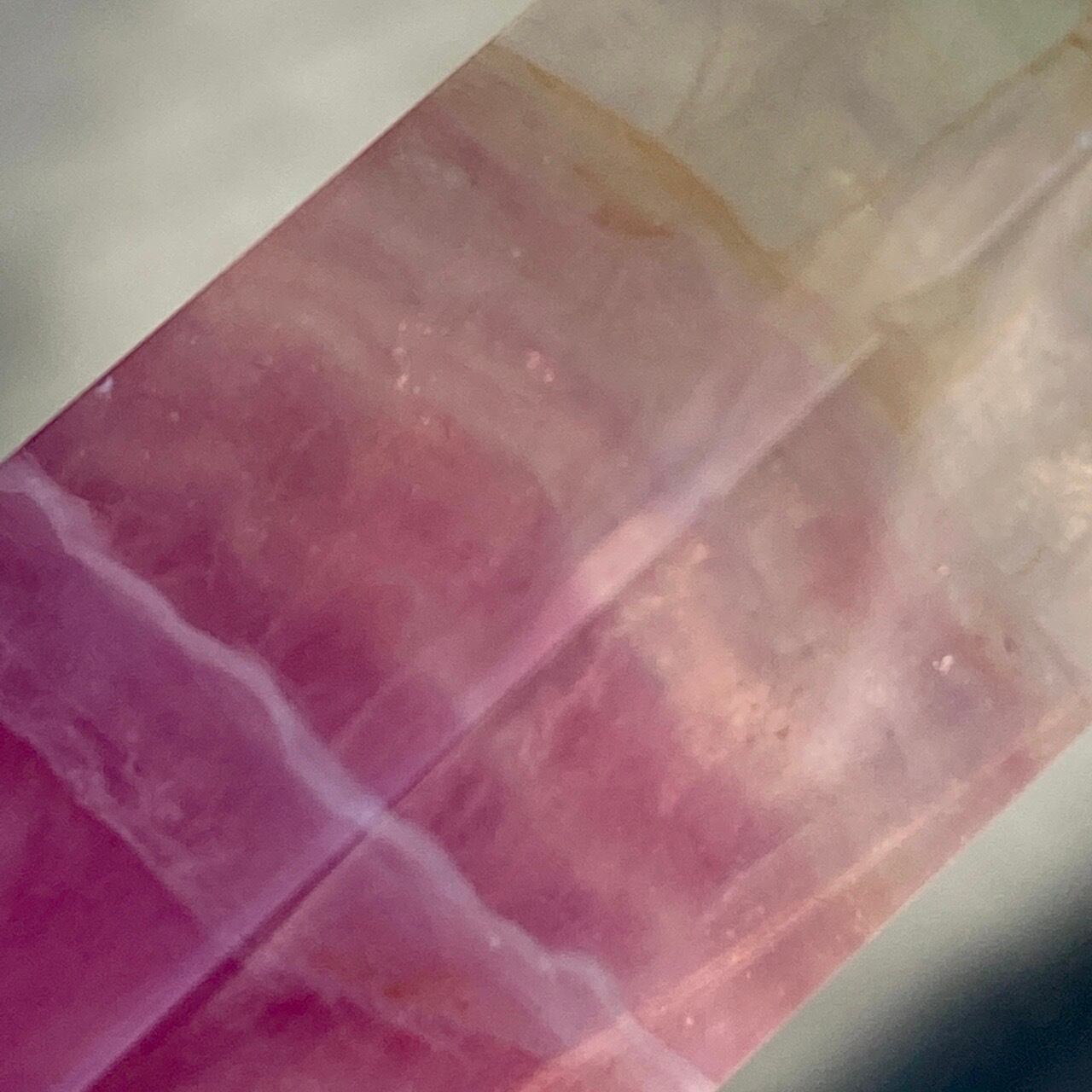 太陽光の下での撮影でしたので、画像が若干明るい色味になっておりますが、室内ですと実際はややグレープがかったピンクの(最後から2枚目の色味)になります。