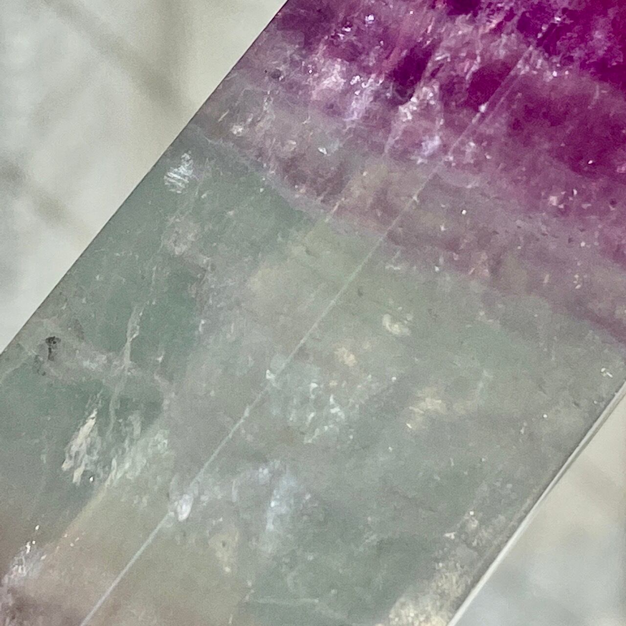 フローライトは太陽光や浴水による浄化には適していません。紫外線に弱いため、取り扱いや保管にご注意下さい。