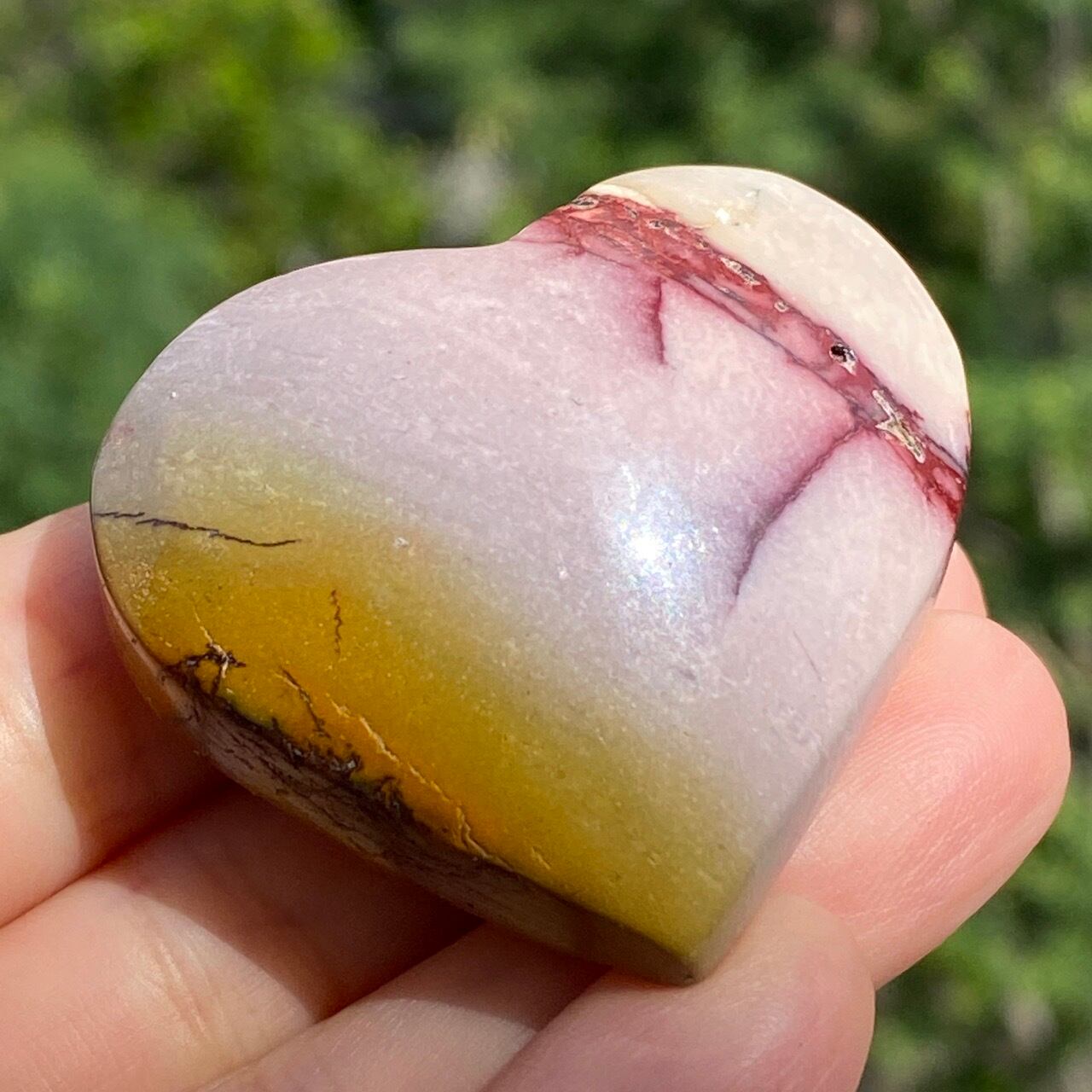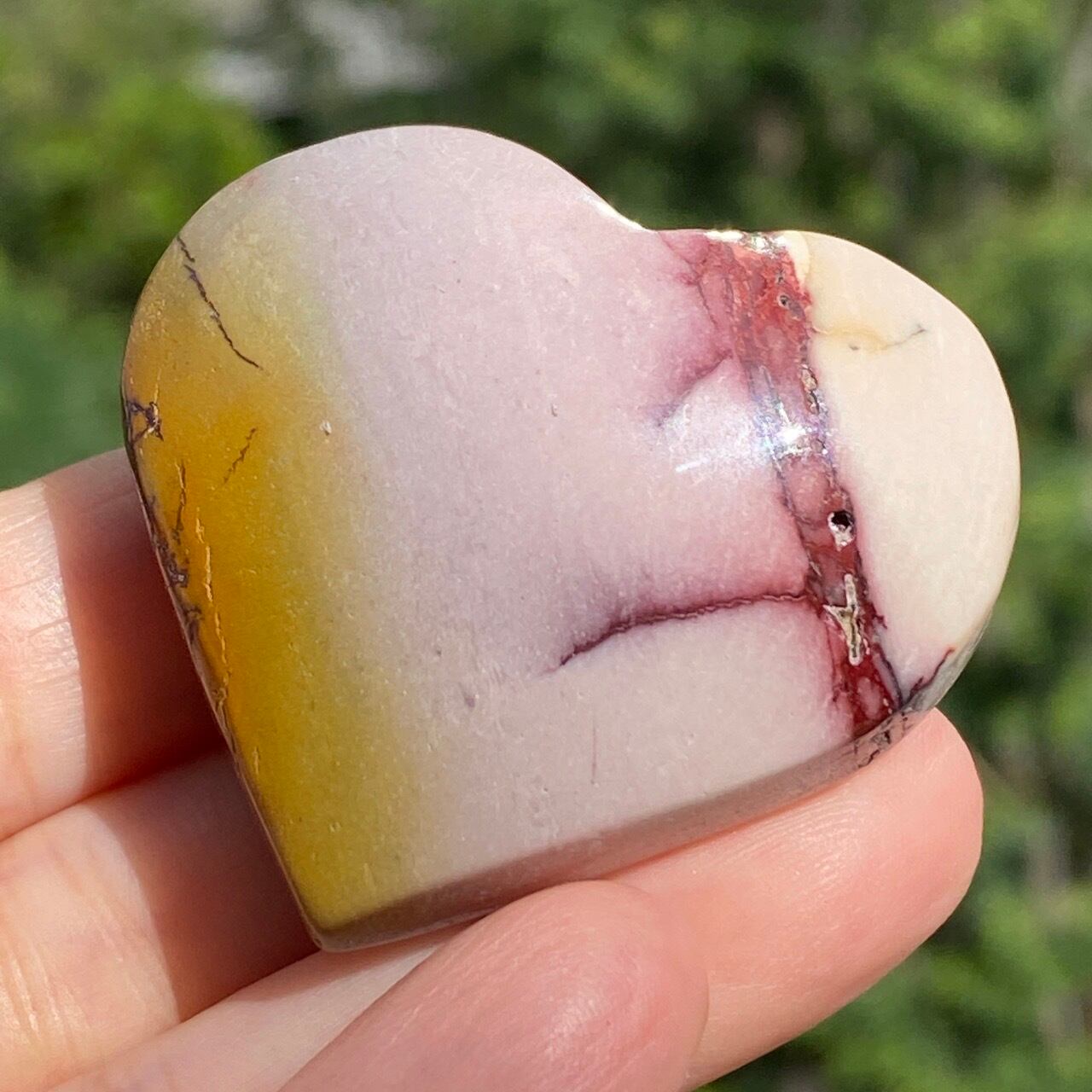 片側に、いばらの冠の様な模様があるムーカイトのハート。こぶりなサイズ感とベージュに黄色の差し色が素敵で、同時発売のポイントとの組み合わせにも注目です(最終画像参照)。