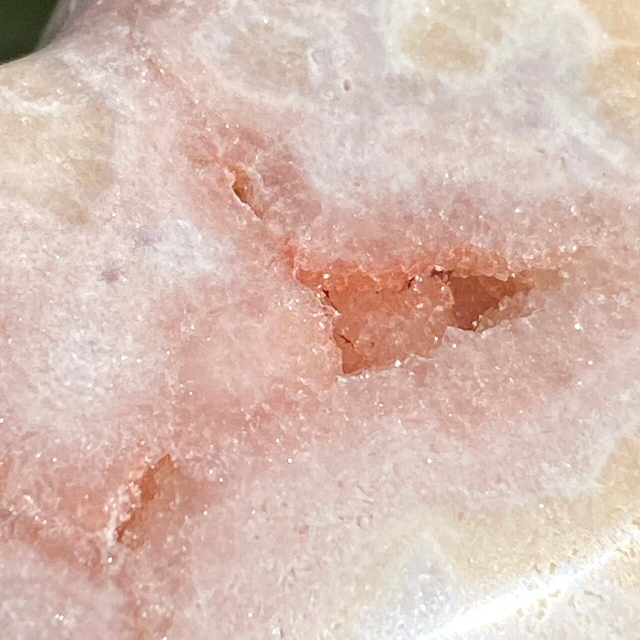 ピンクアメシストは、感情面のトラウマを和らげ、ストレスの多い場面で穏やかな気持ちをもたらしたり、悲しみを癒す等と海外では言われています。また、直感力を高め、心の明晰さを高めるとされています。ハートチャクラ対応
