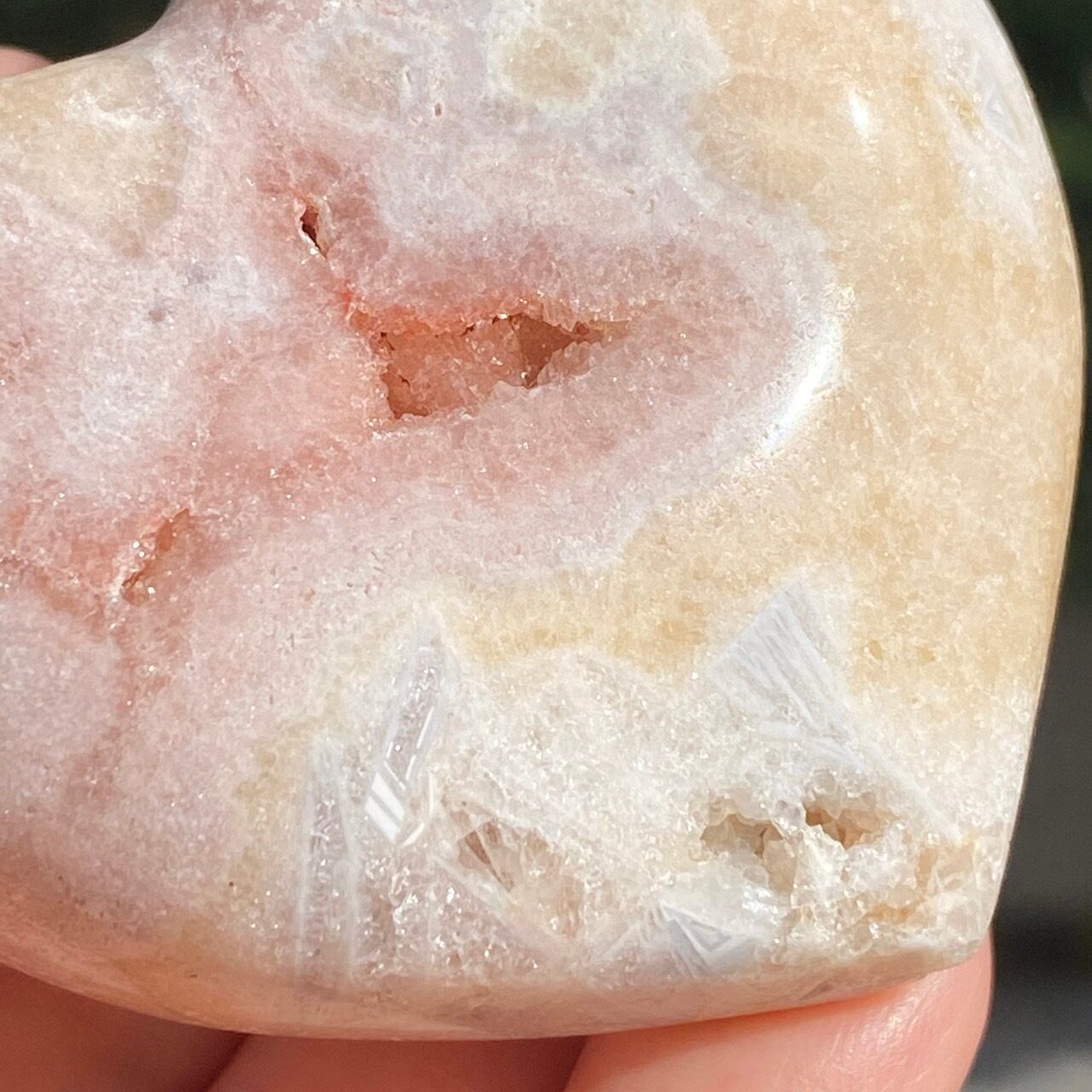 アメシストやピンクアメシストの産地であるリオグランデ・ド・スールのアメシストの名が付いた鉱山から採掘されたピンクアメシストのハートになります。