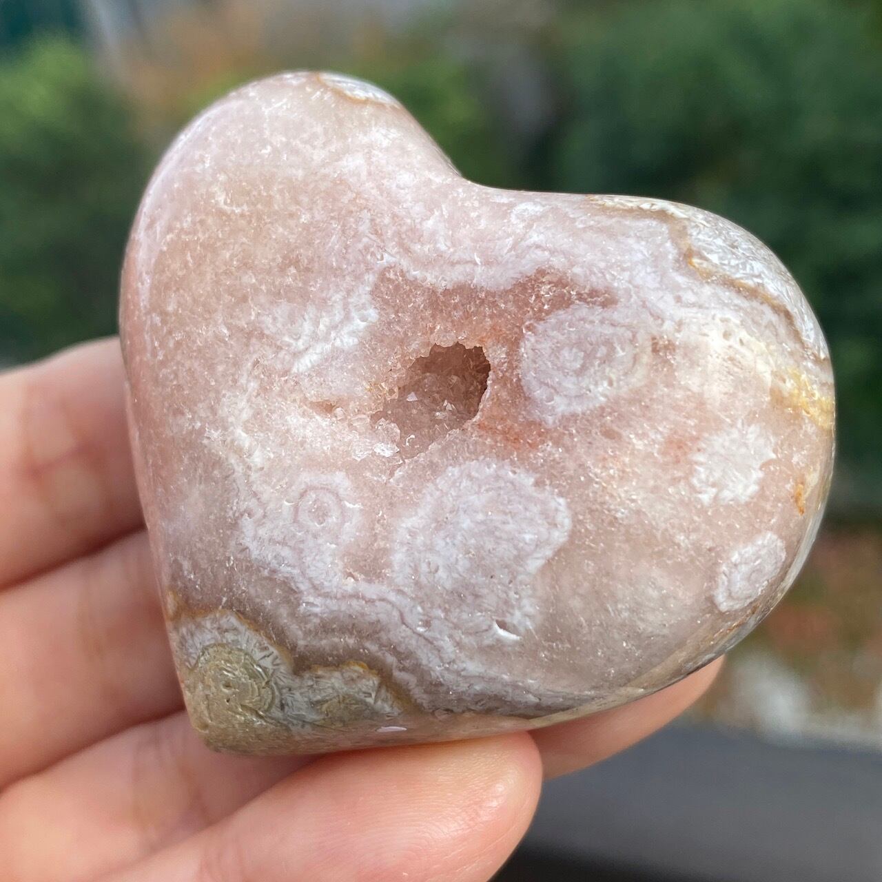 アメシストやピンクアメシストの産地であるリオグランデ・ド・スールのアメシストの名が付いた鉱山から採掘されたピンクアメシストのハートになります。
