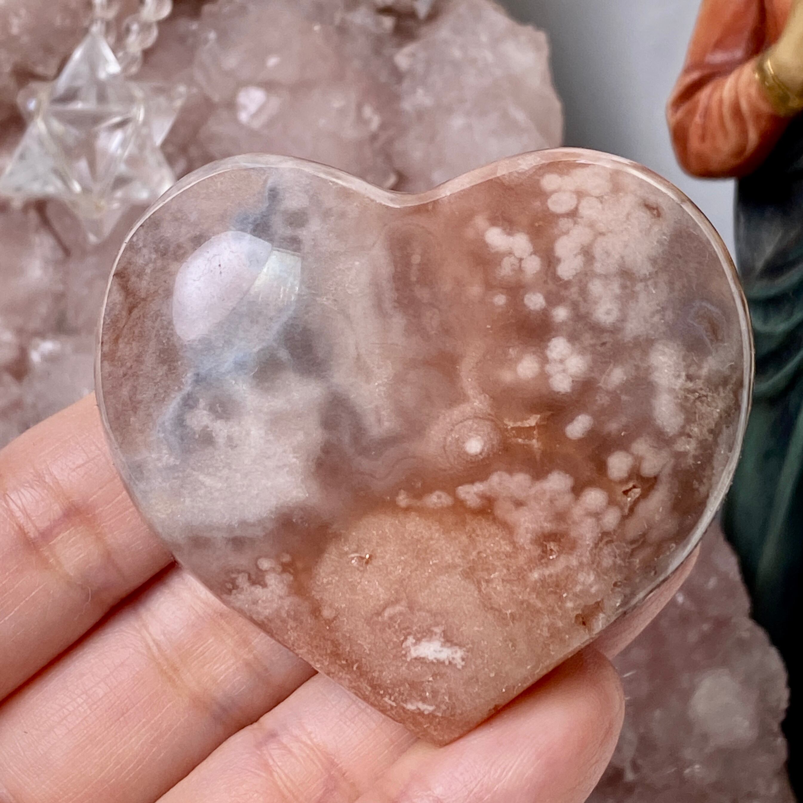 ピンクアメシストは、感情面のトラウマを和らげ、ストレスの多い場面で穏やかな気持ちをもたらしたり、悲しみを癒す等と海外では言われています。また、直感力を高め、心の明晰さを高めるとされています。ハートチャクラ対応