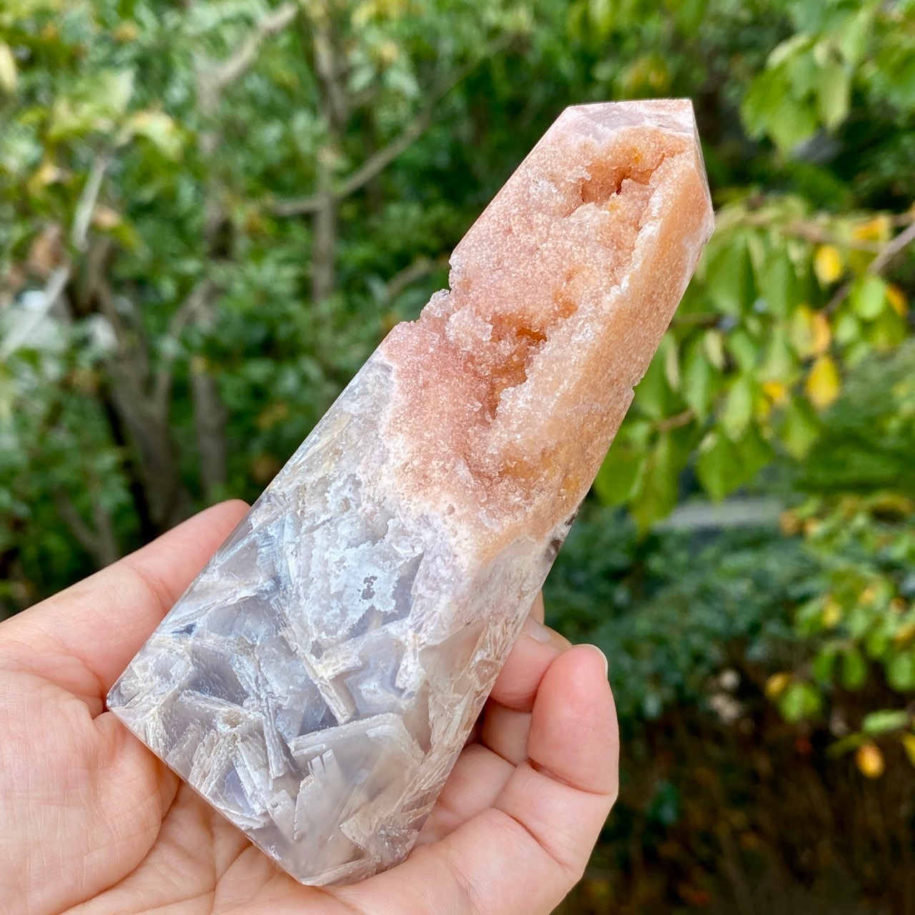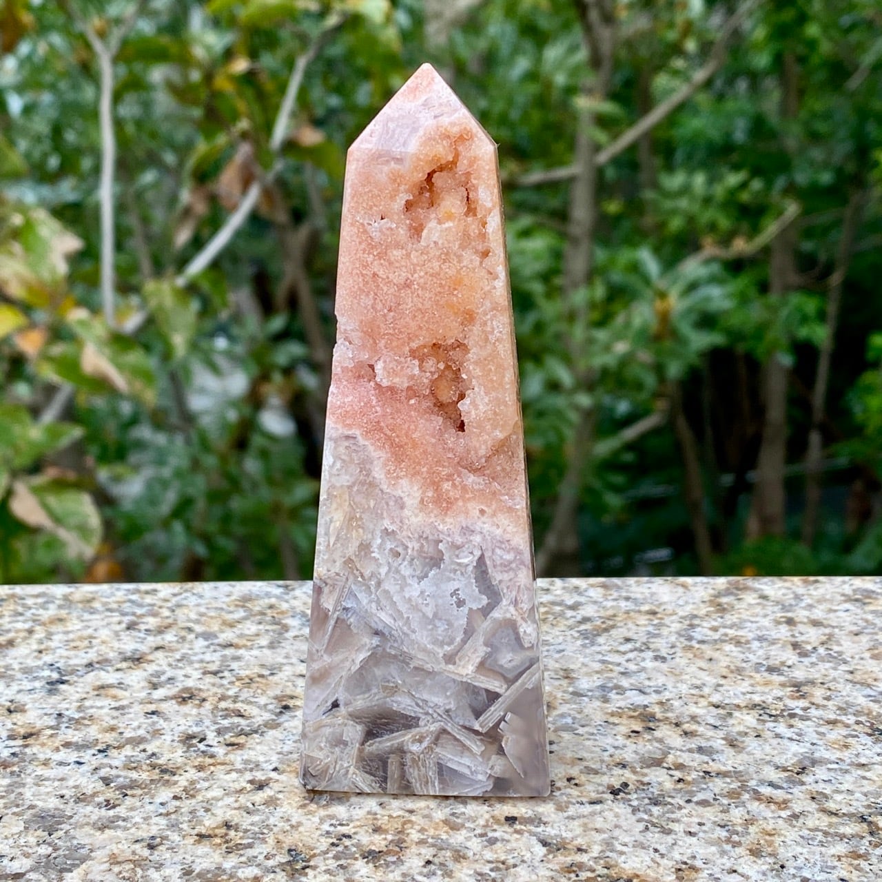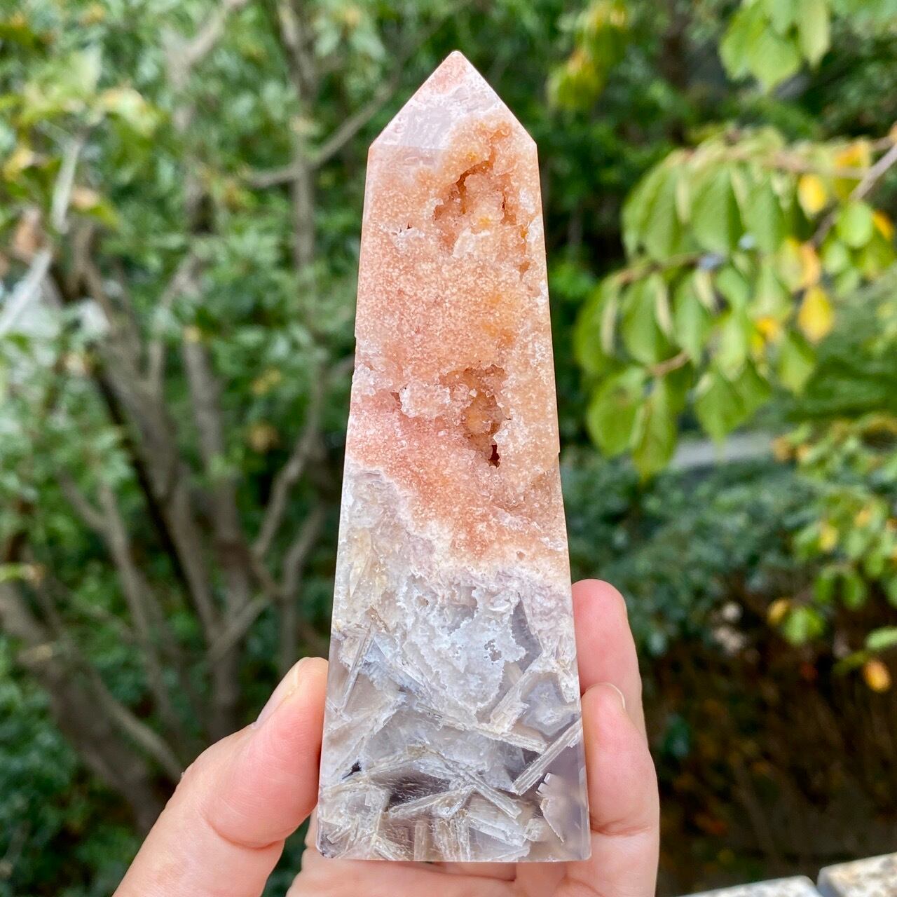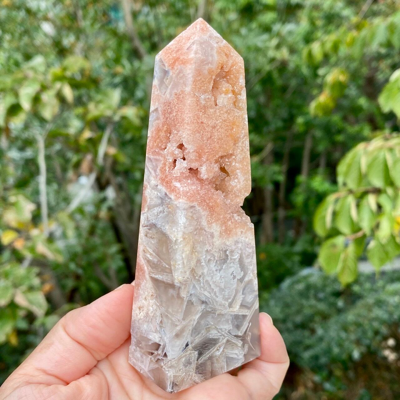アメシストやピンクアメシストの産地であるリオグランデ・ド・スールのアメシストの名が付いた鉱山から採掘されたピンクアメシストのタワーになります。