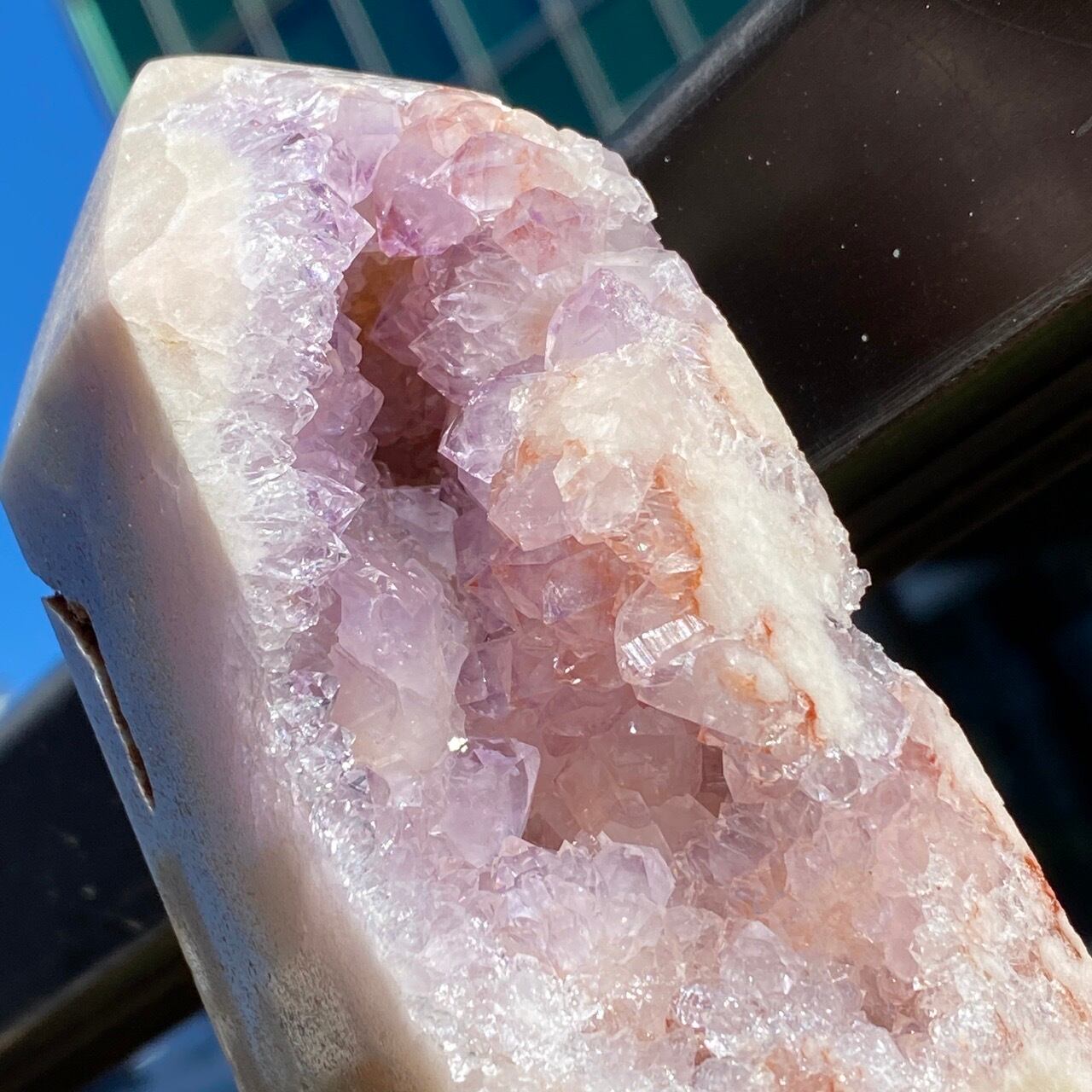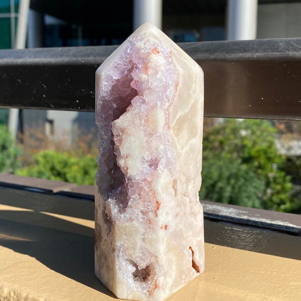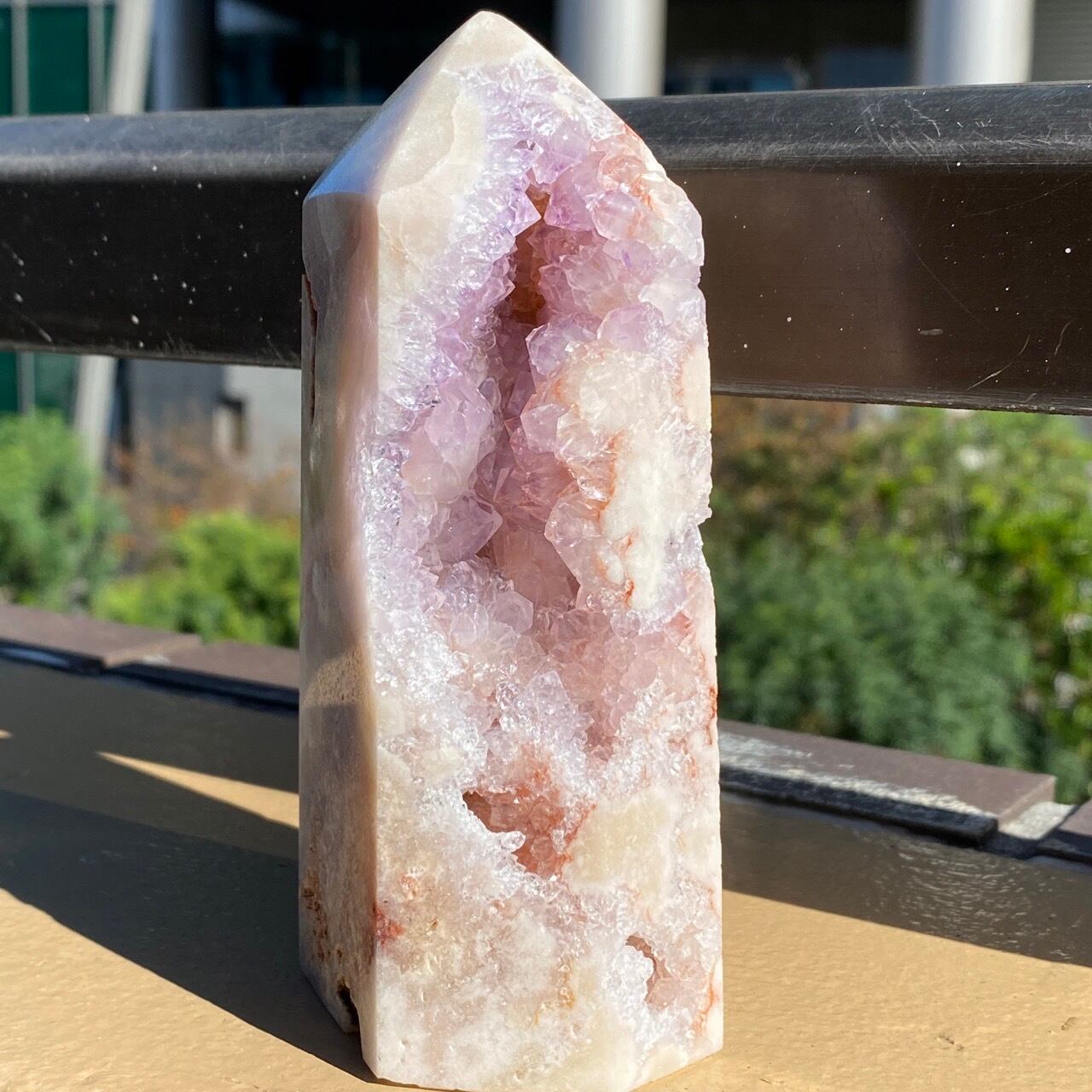 アメシストやピンクアメシストの産地であるリオグランデ・ド・スールのアメシストの名が付いた鉱山から採掘されたピンクアメシストのタワーになります。