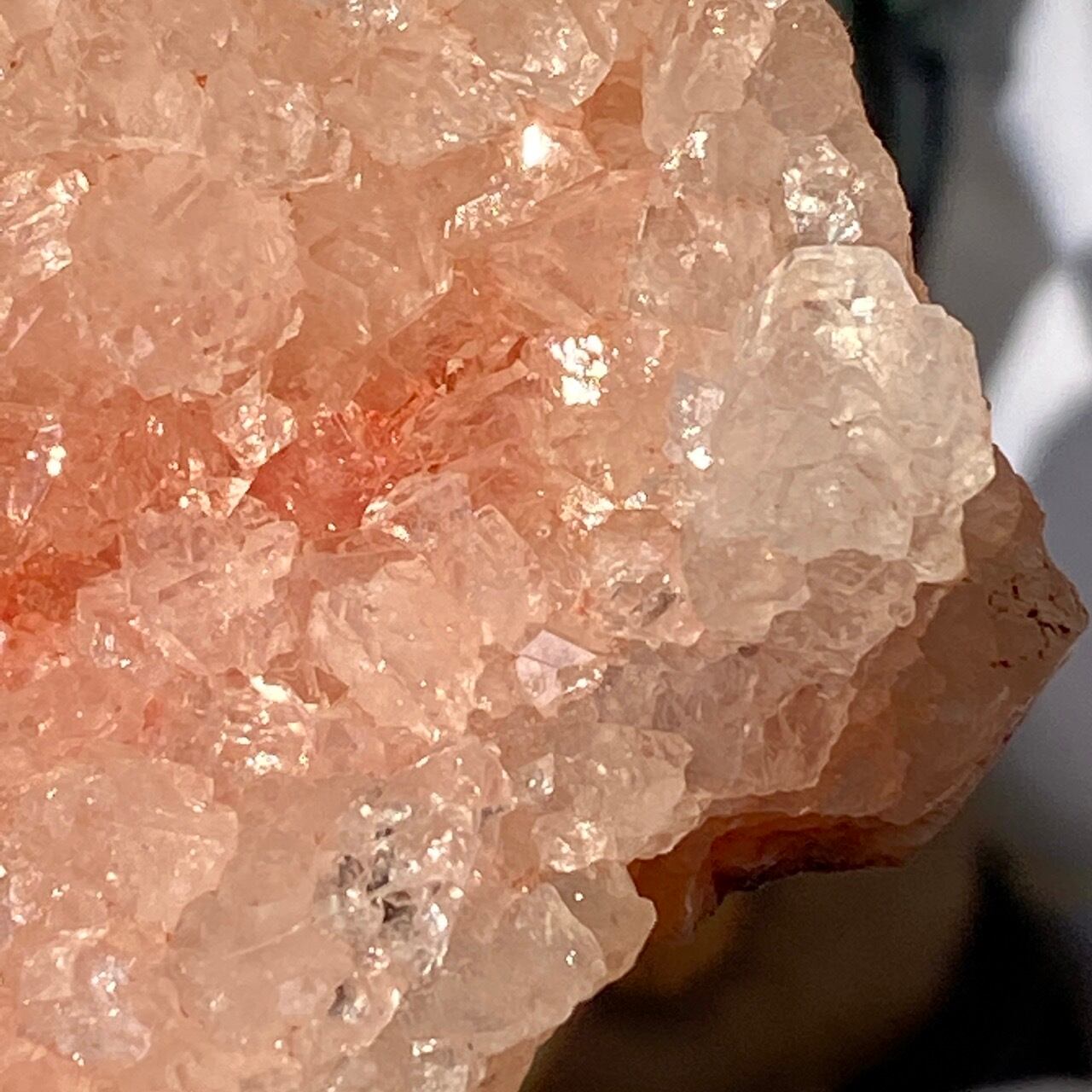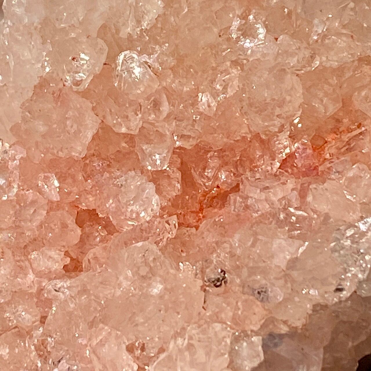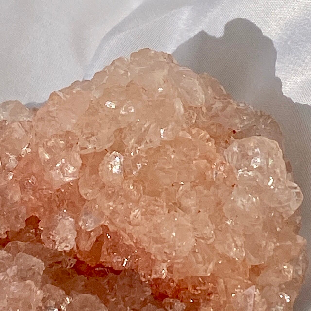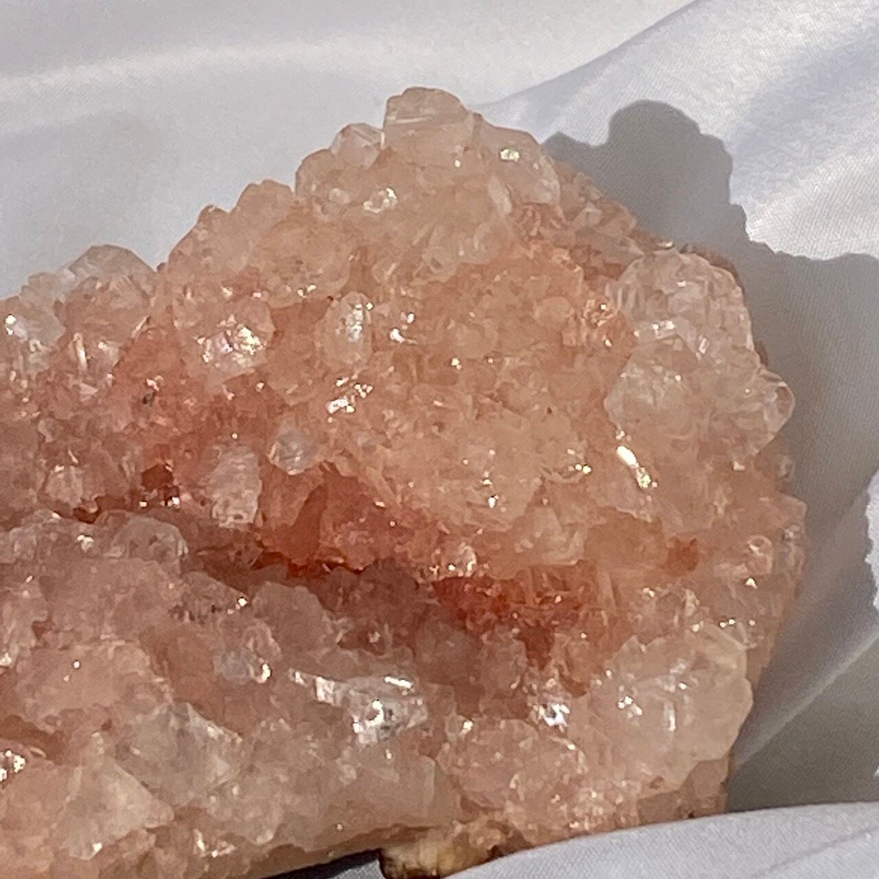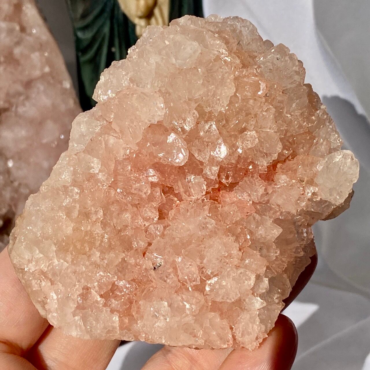 アポフィライトの中でも産出量が少ないため希少性が高い、インド産のピンクアポフィライトのクラスターです。希少なグリーンアポフィライトよりも流通量が極めて少なく、見つける事ができたとしても、色やクオリティにばらつきがあります。