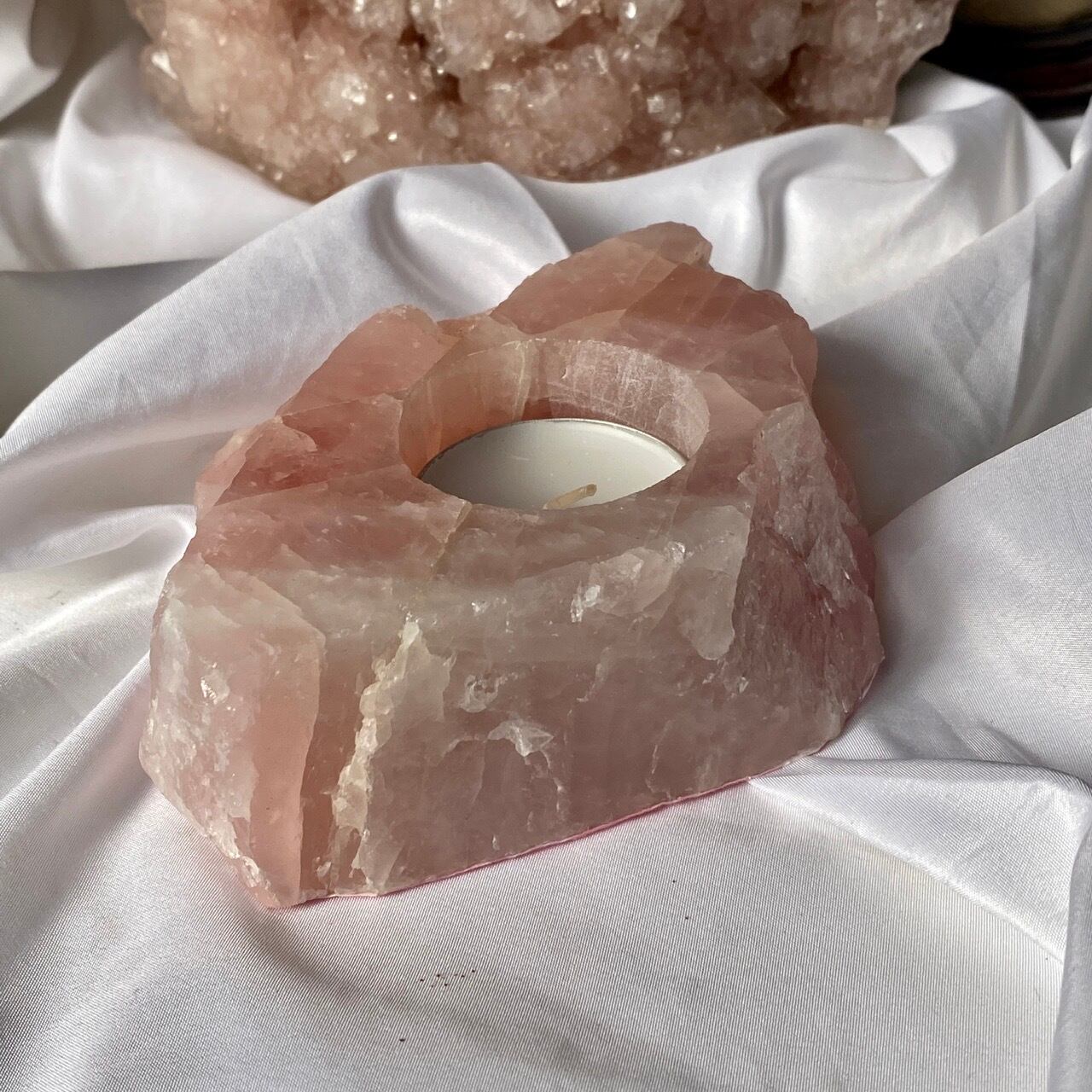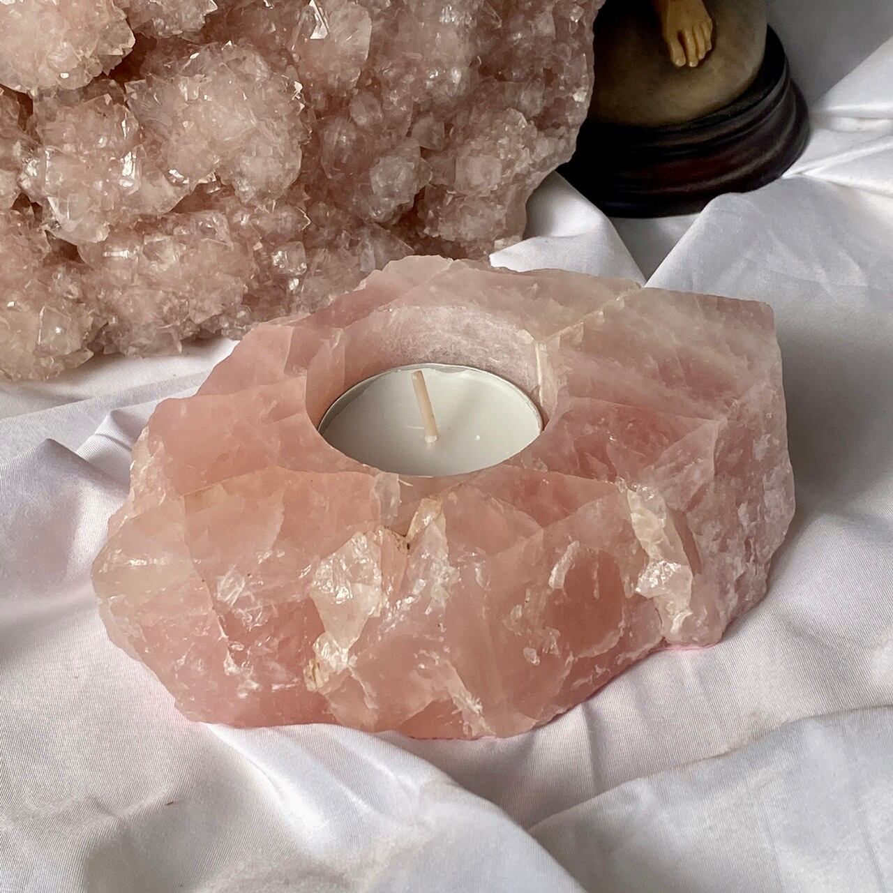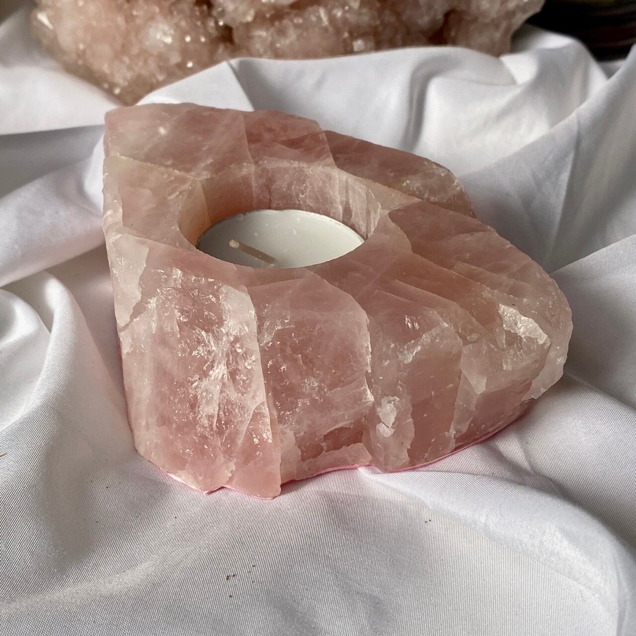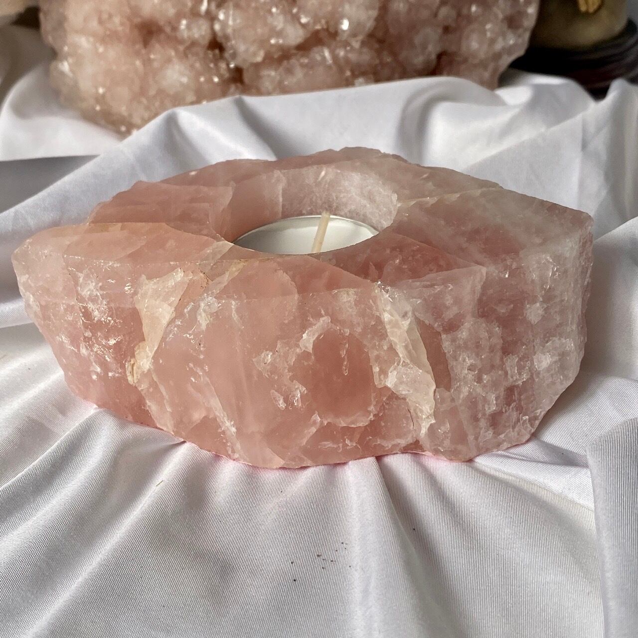 ブラジル産ローズクォーツ原石のキャンドルホルダーです。