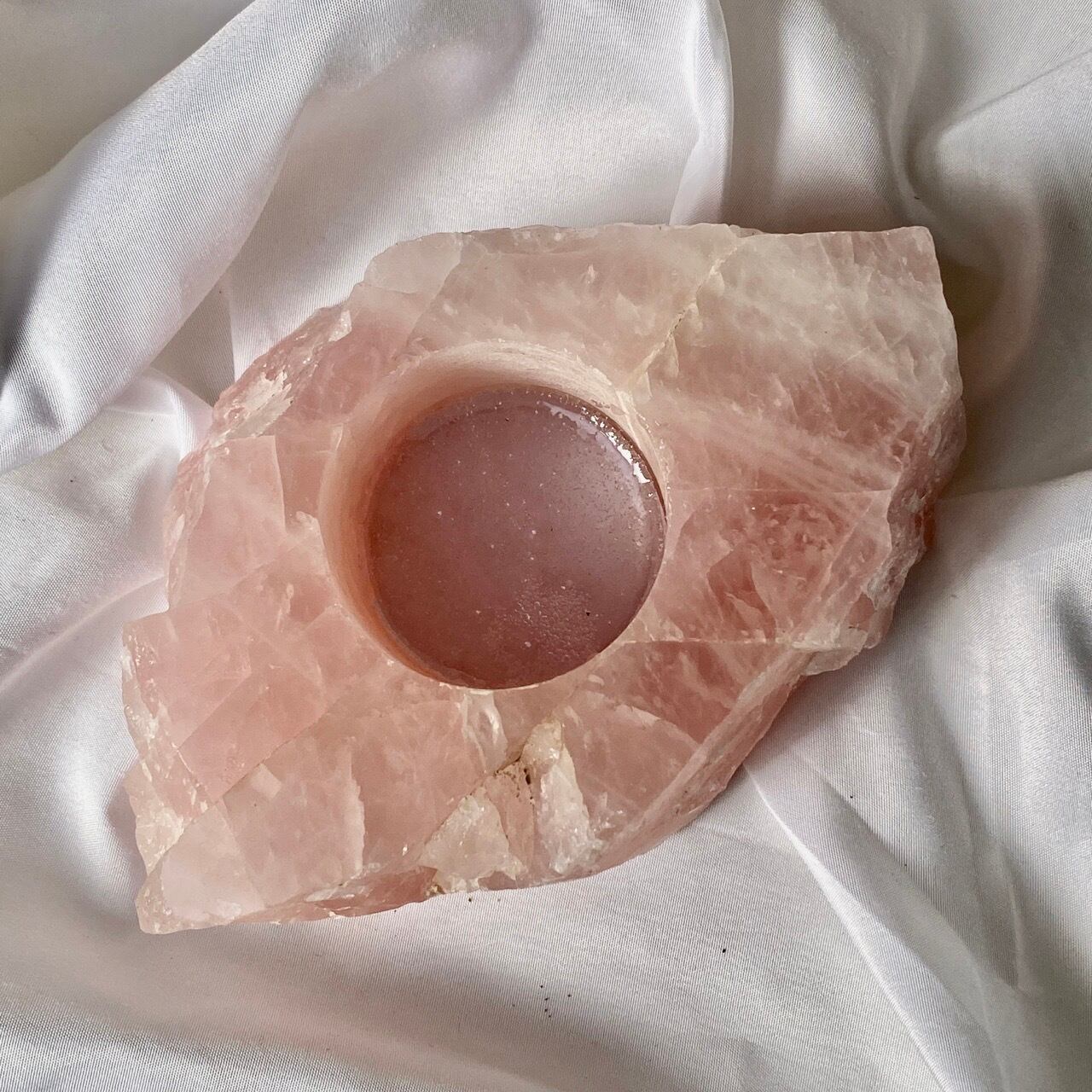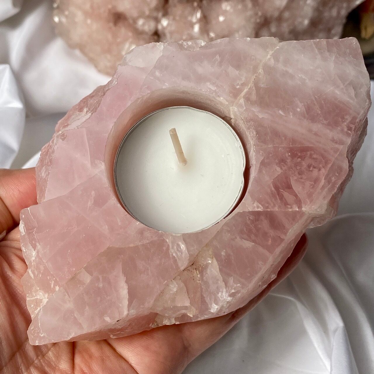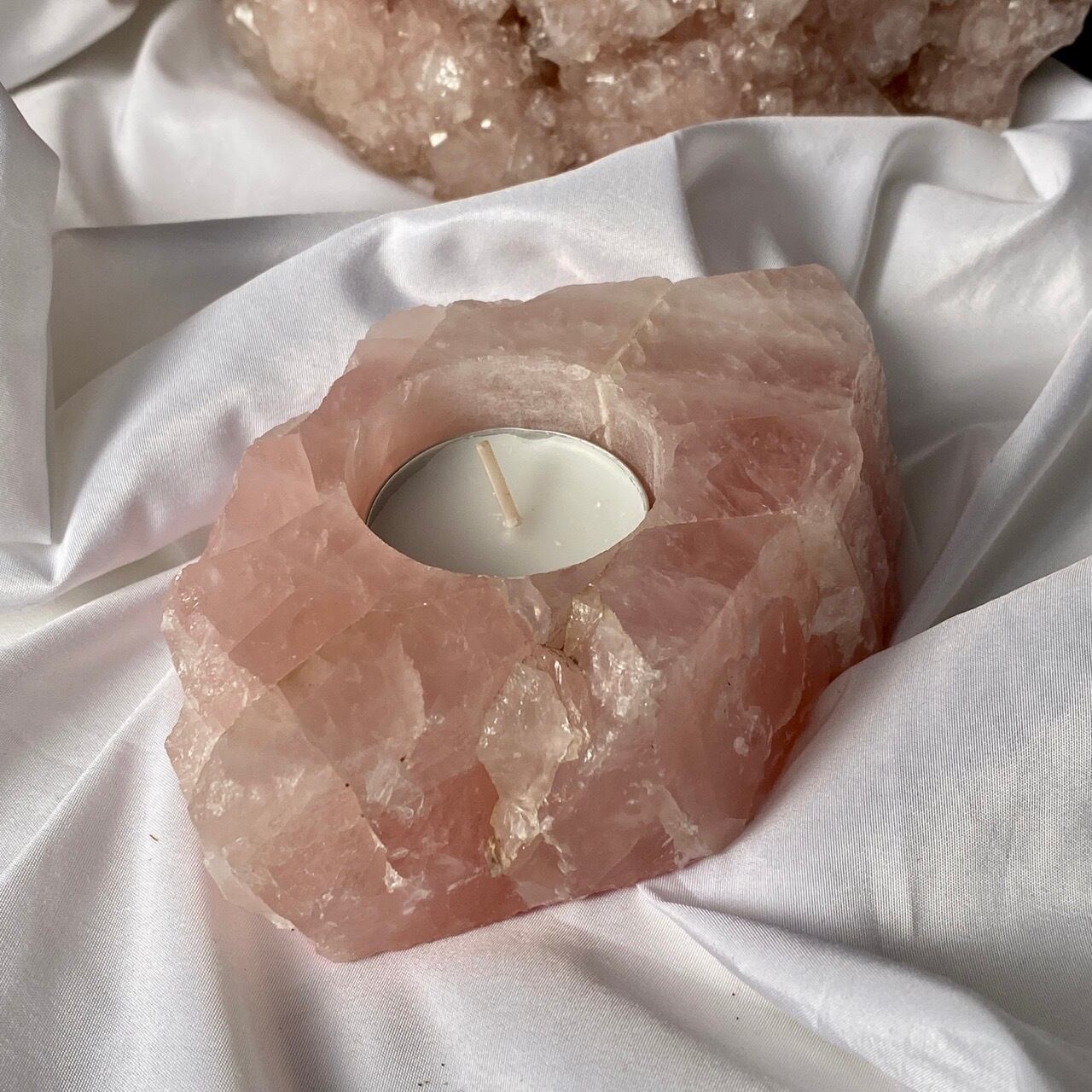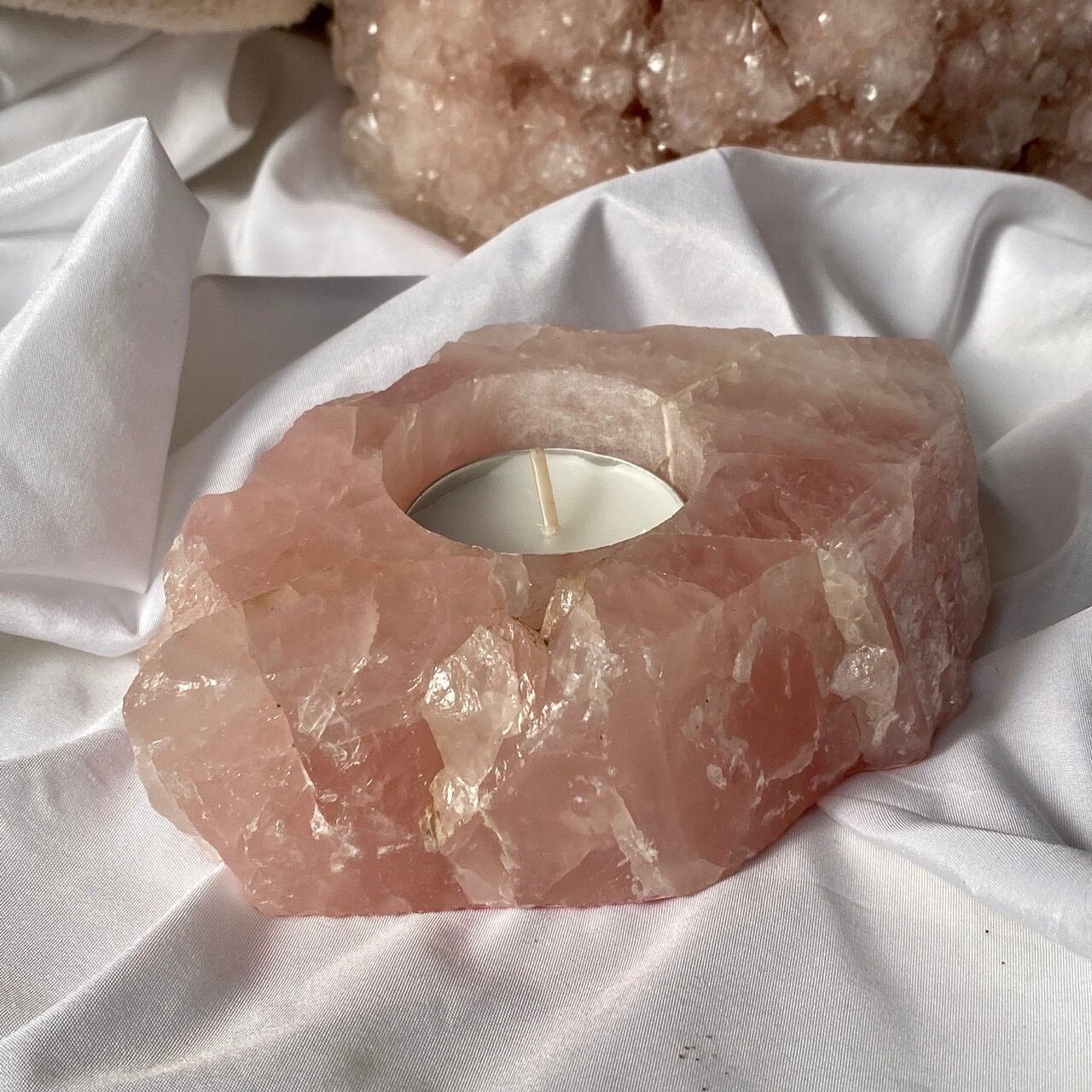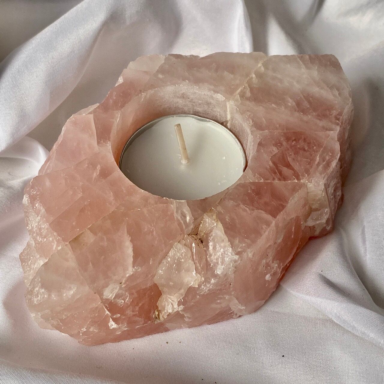 ブラジル産ローズクォーツ原石のキャンドルホルダーです。
