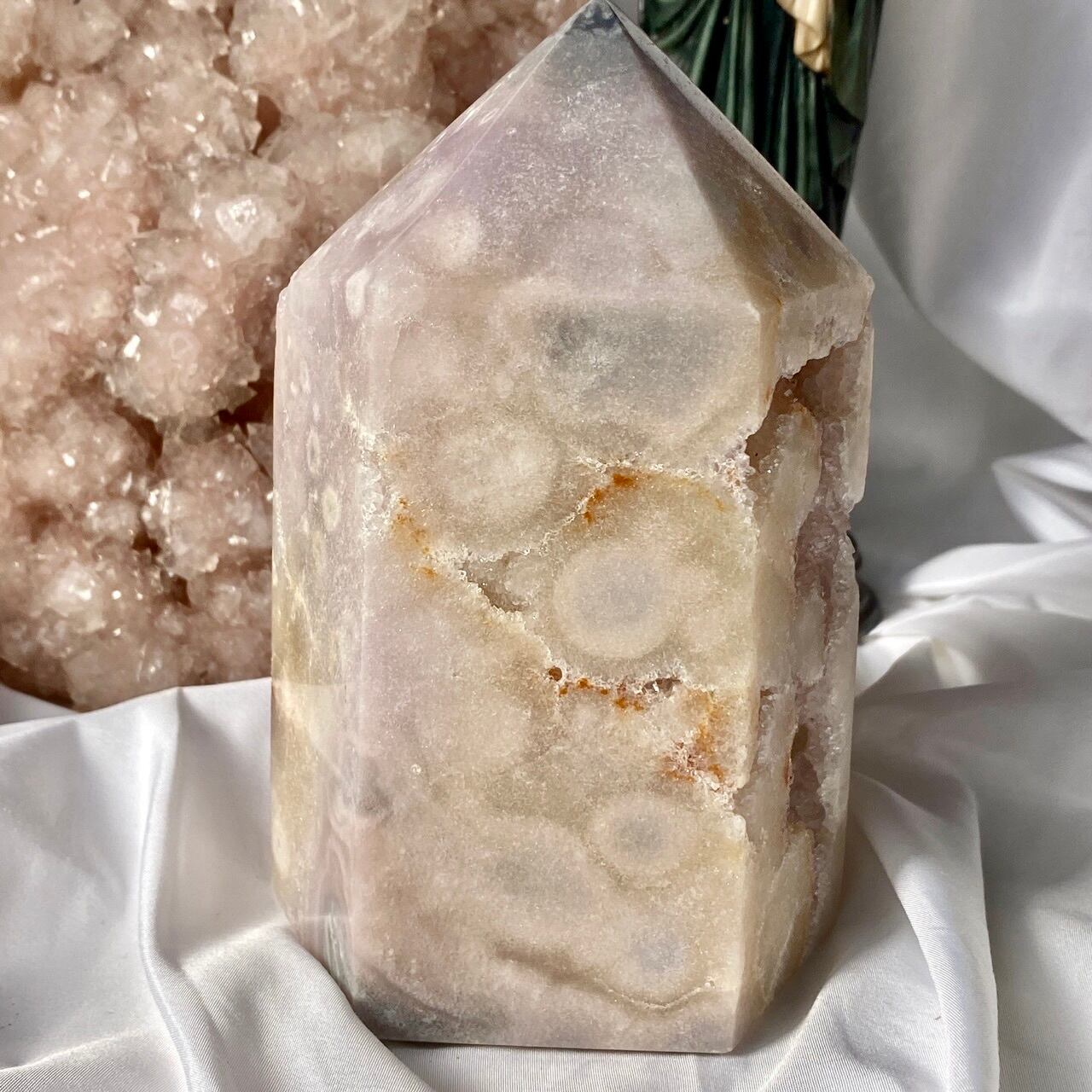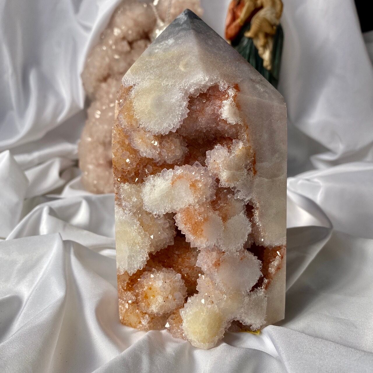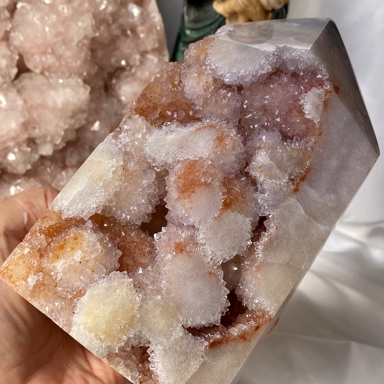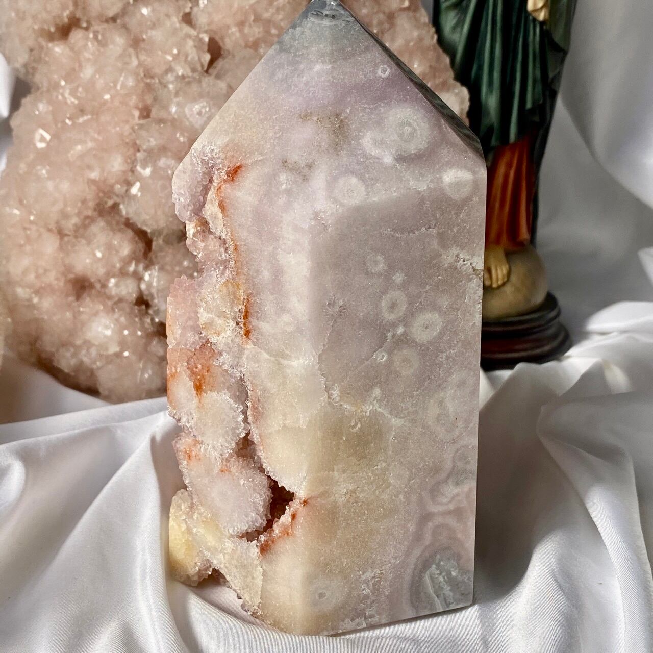 ベースは乳白色からアイボリー(エクリュ)系の色味が混ざっていて、まるで海月の様なオーブも表面に浮き出ていて幻想的です。ドゥルージーは部分的にサーモンピンクがかった色味をしています。このドゥルージーの城的なタワーの存在感!インテリアを素敵に演出してくれる事と思います。