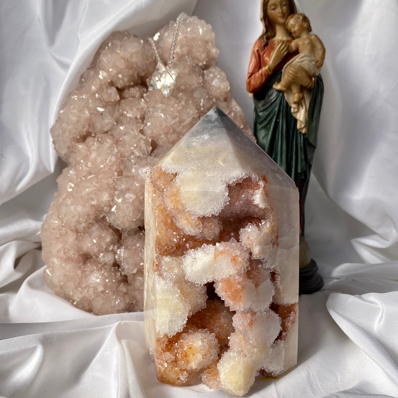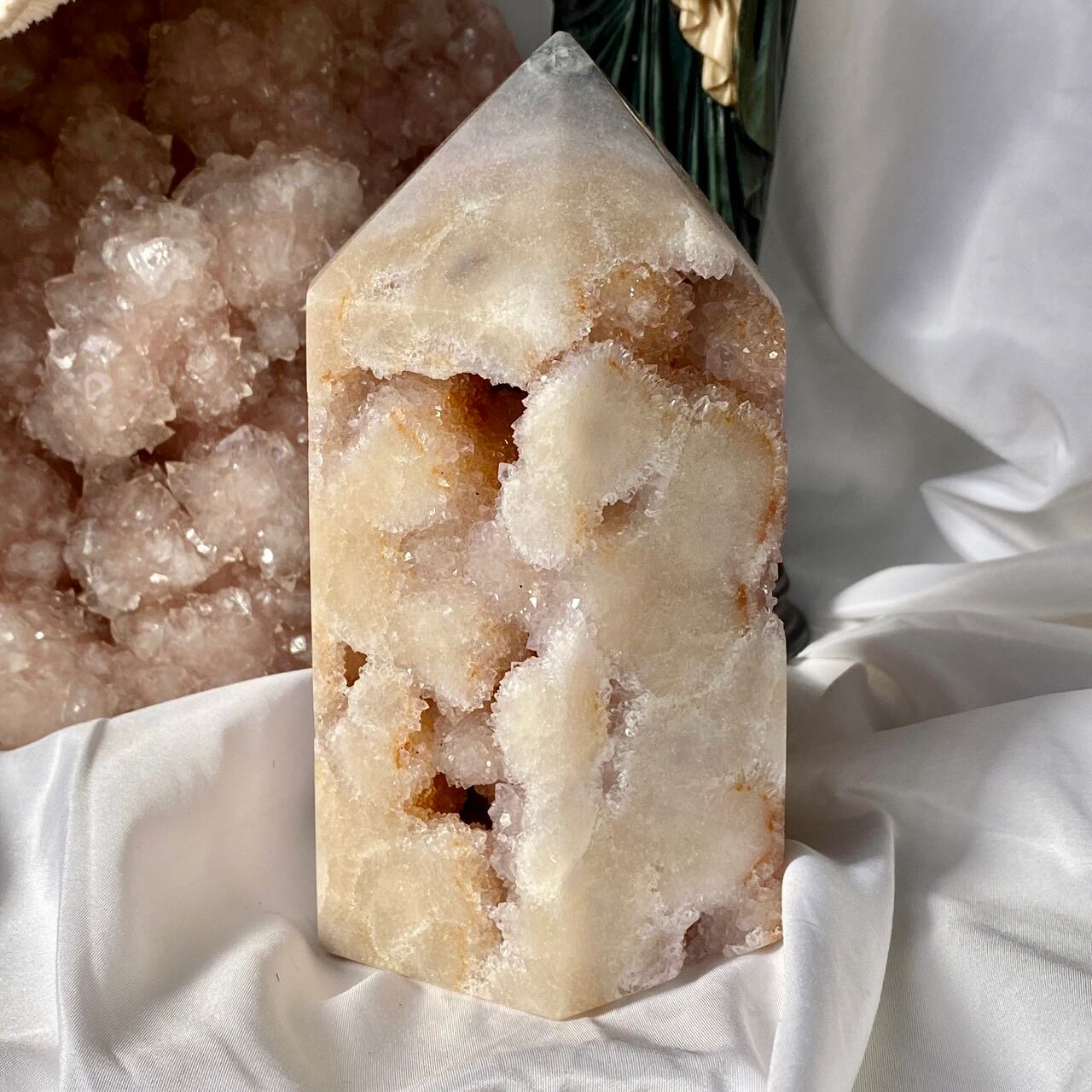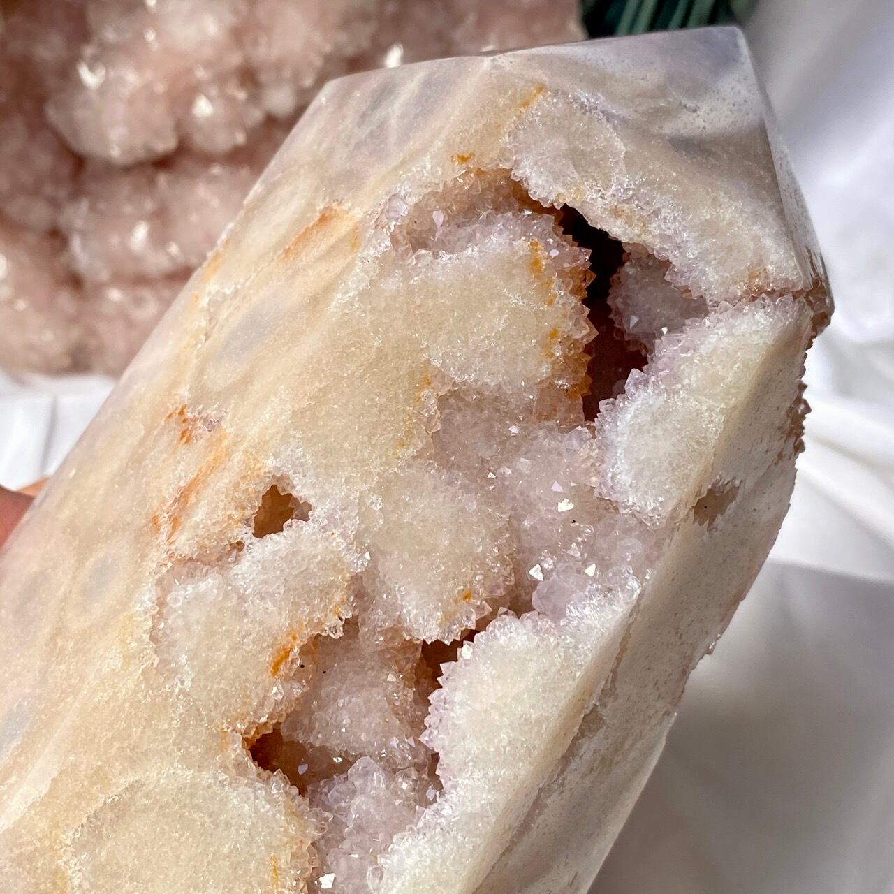 アメシストやピンクアメシストの産地であるリオグランデ・ド・スールのアメシストの名が付いた鉱山から採掘されたピンクアメシストのタワーになります。