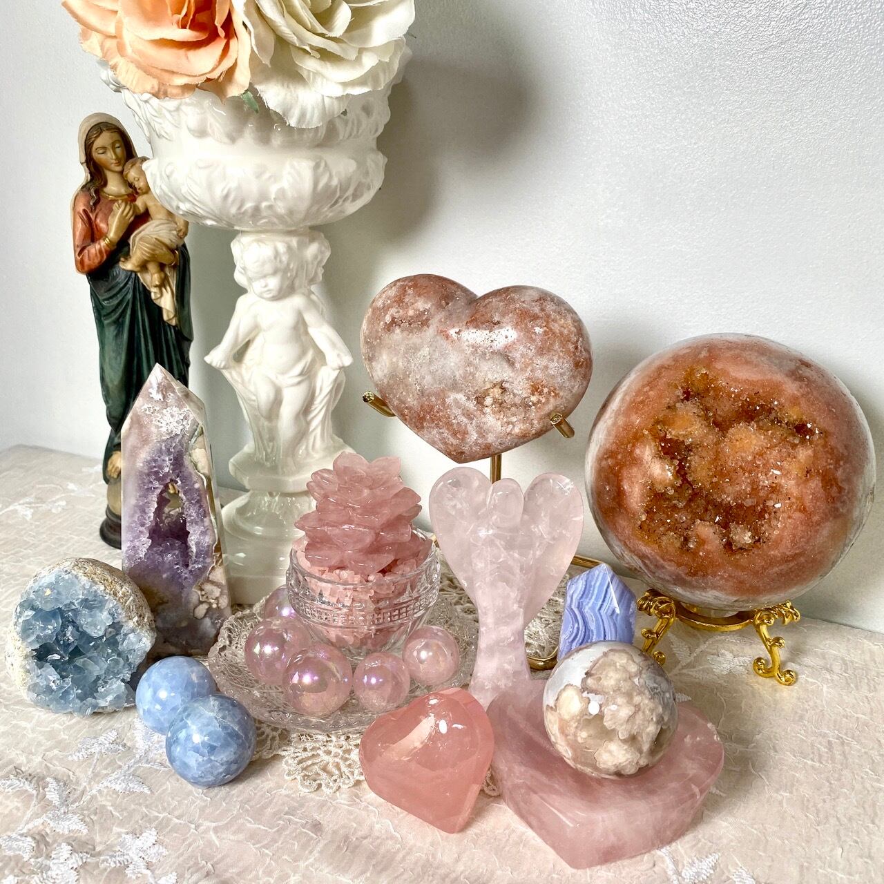 ピンクアメシストは、感情面のトラウマを和らげ、ストレスの多い場面で穏やかな気持ちをもたらしたり、悲しみを癒す等と海外では言われています。また、直感力を高め、心の明晰さを高めるとされています。ハートチャクラ対応