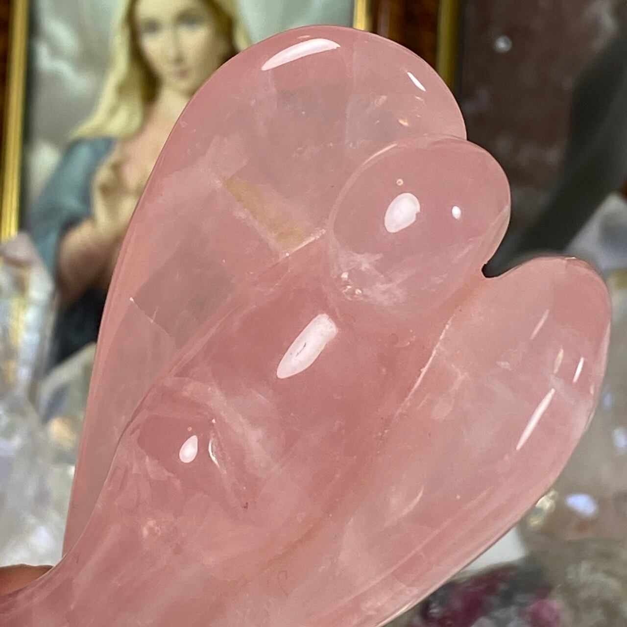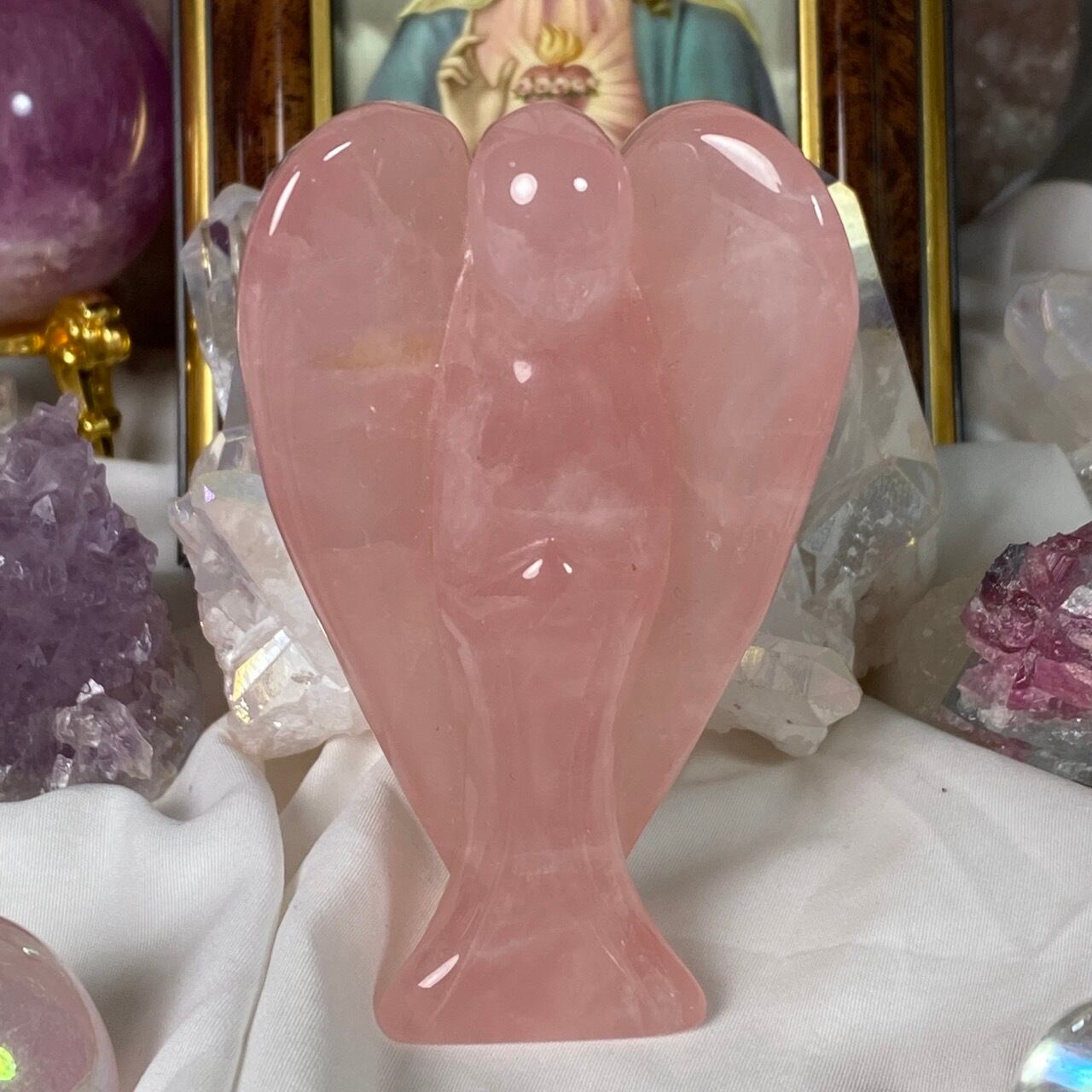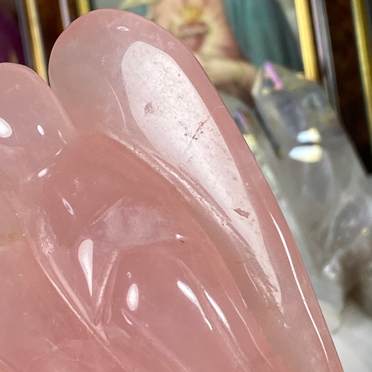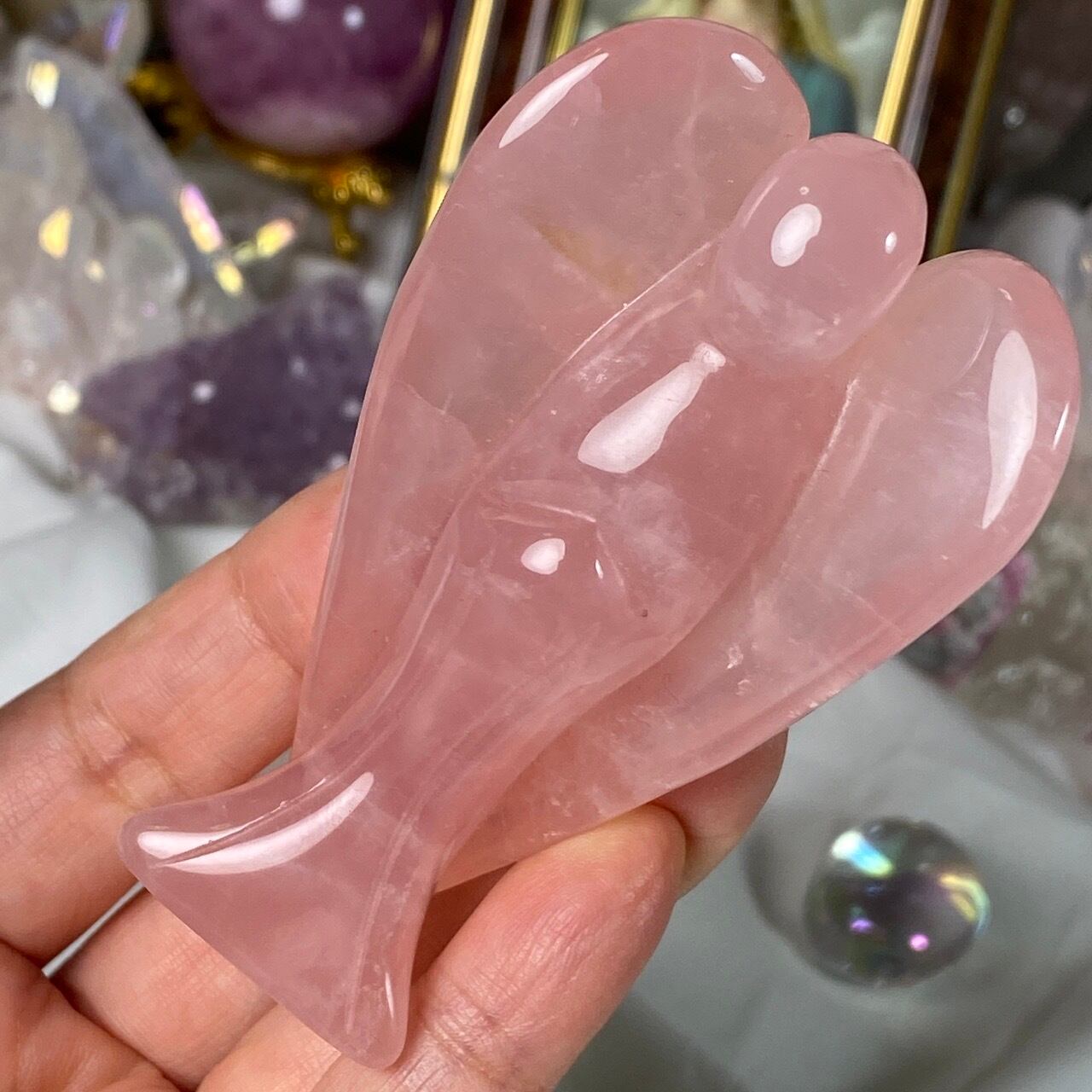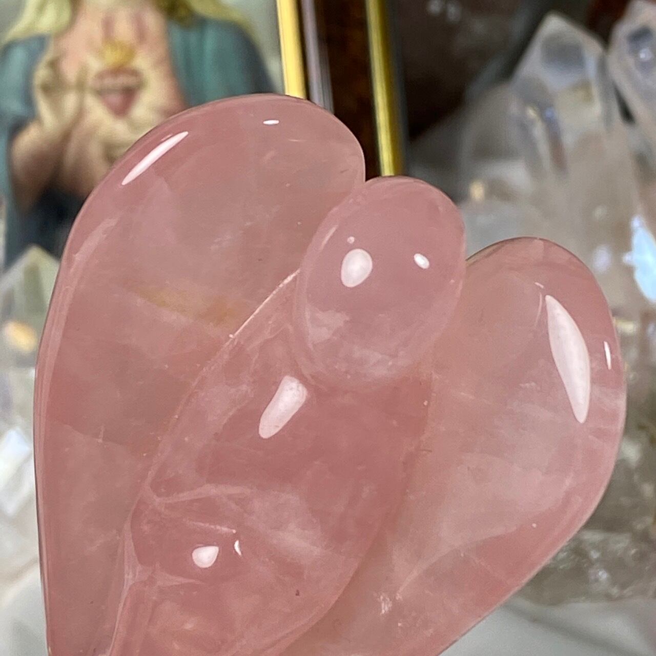 ローズクォーツの天使を眺めていると心が愛に満たされ、愛を放つような感覚になるのは店主だけでしょうか?