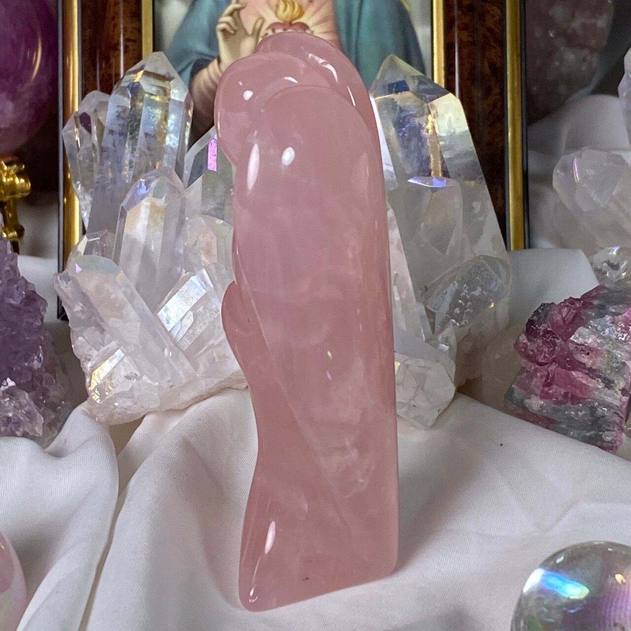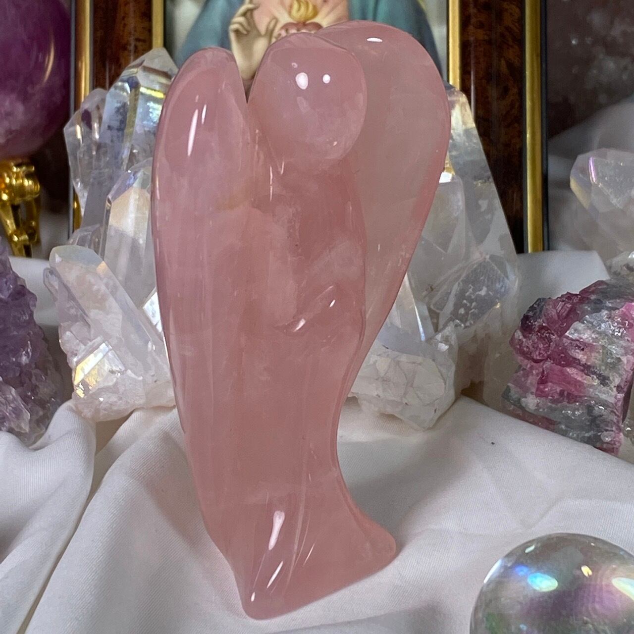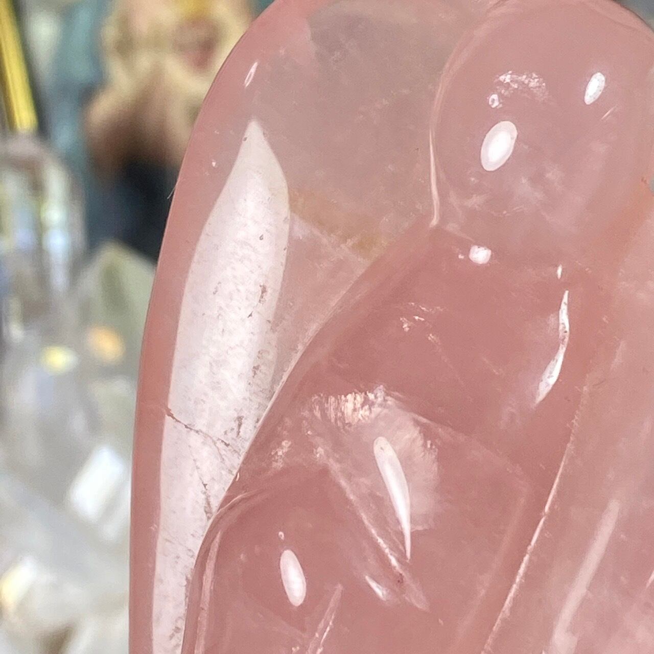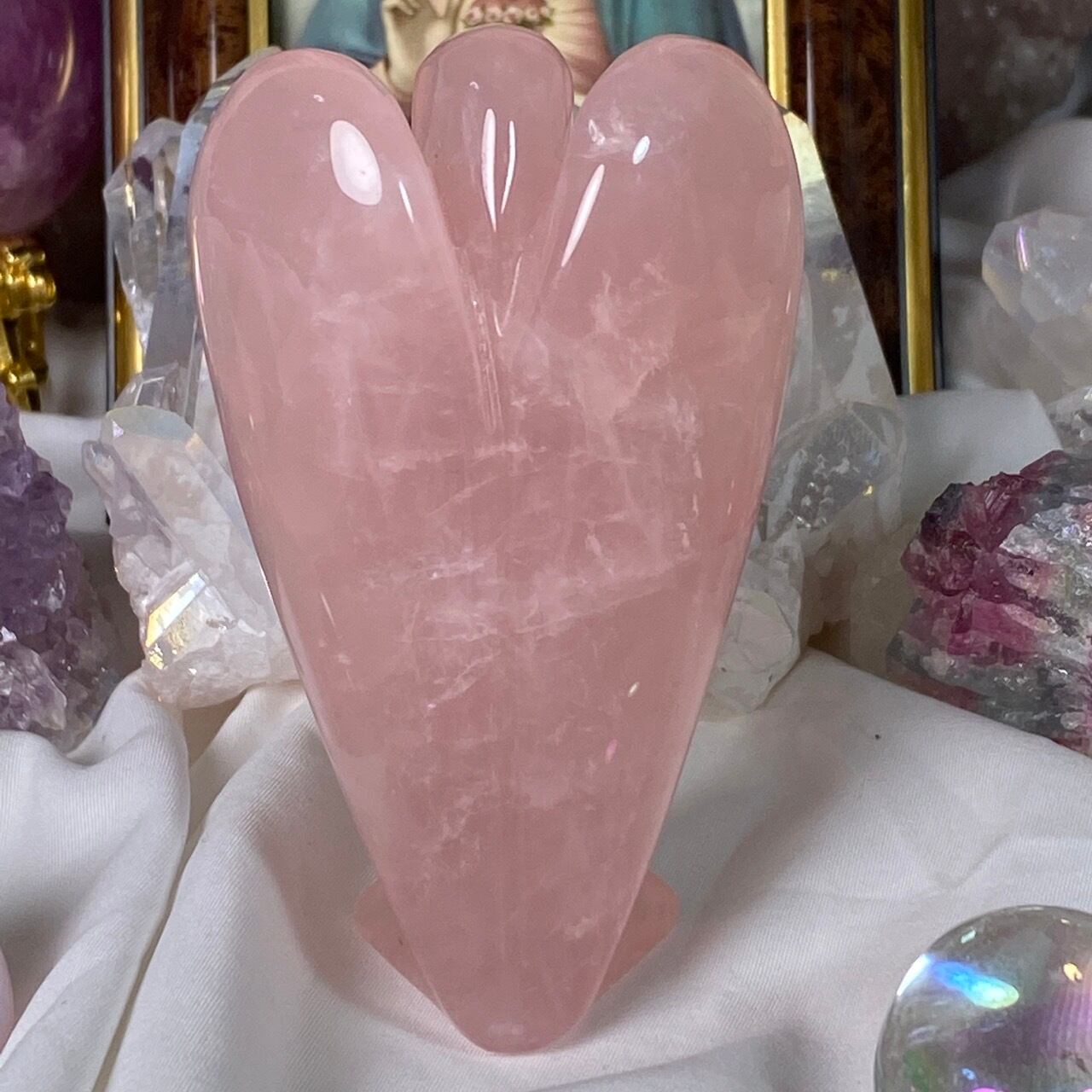 ローズクォーツの天使を眺めていると心が愛に満たされ、愛を放つような感覚になるのは店主だけでしょうか?