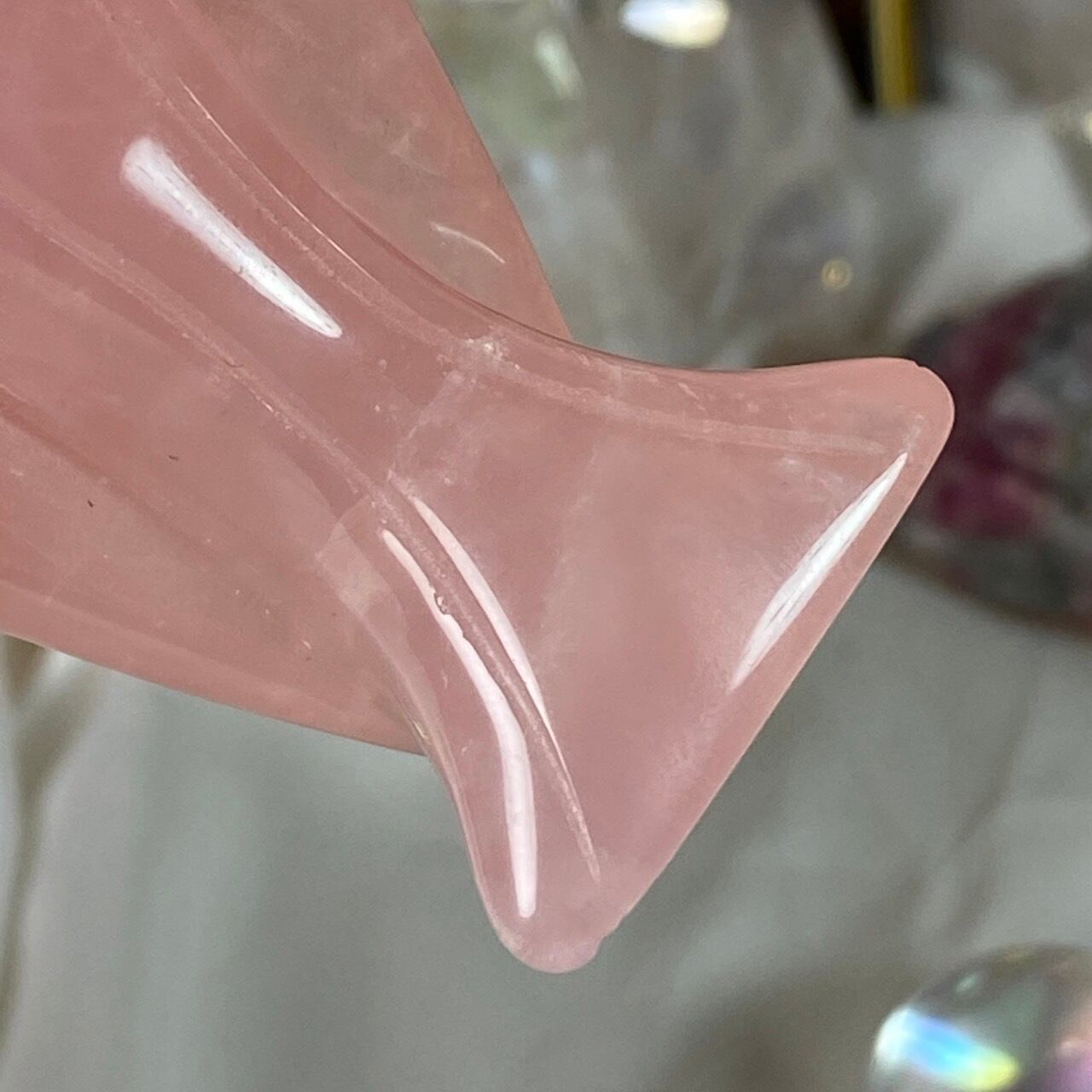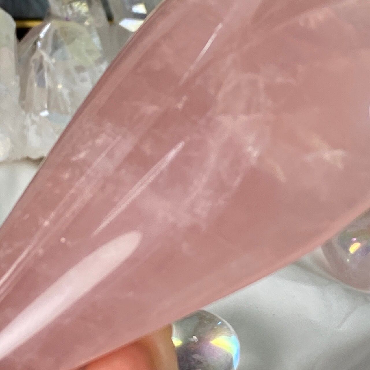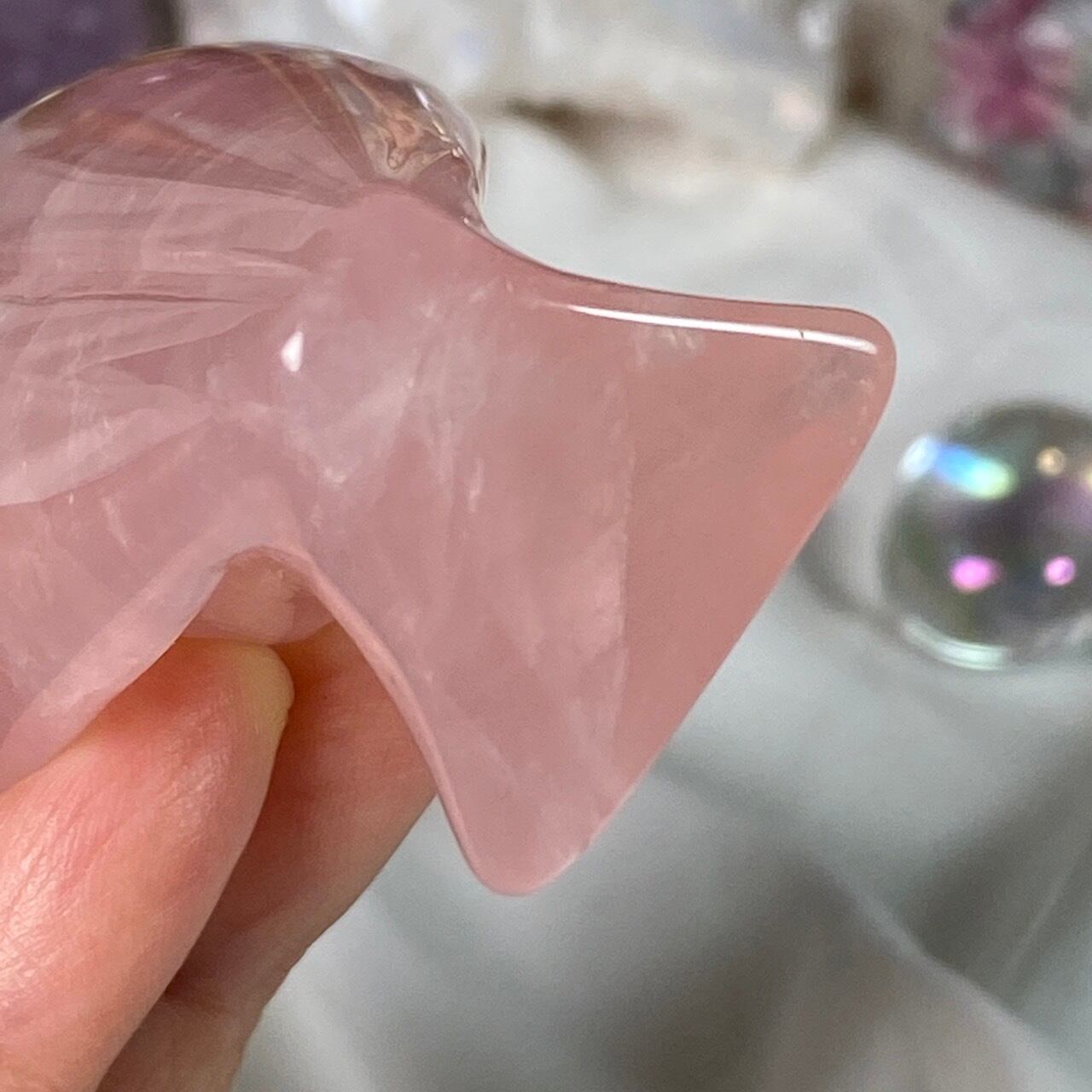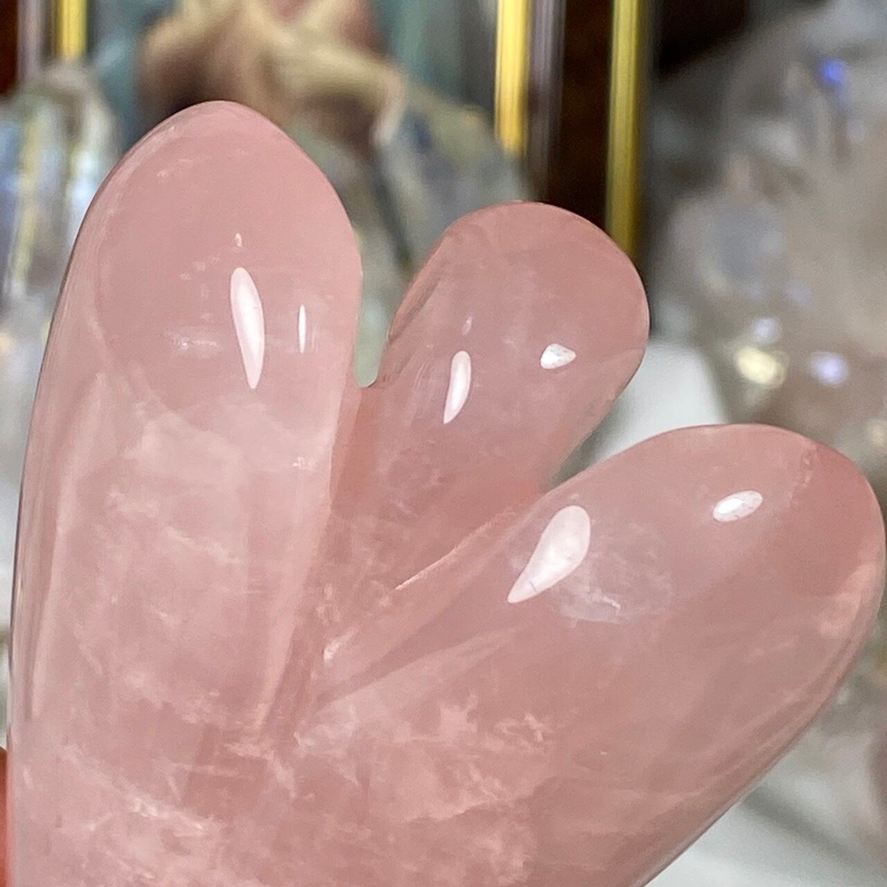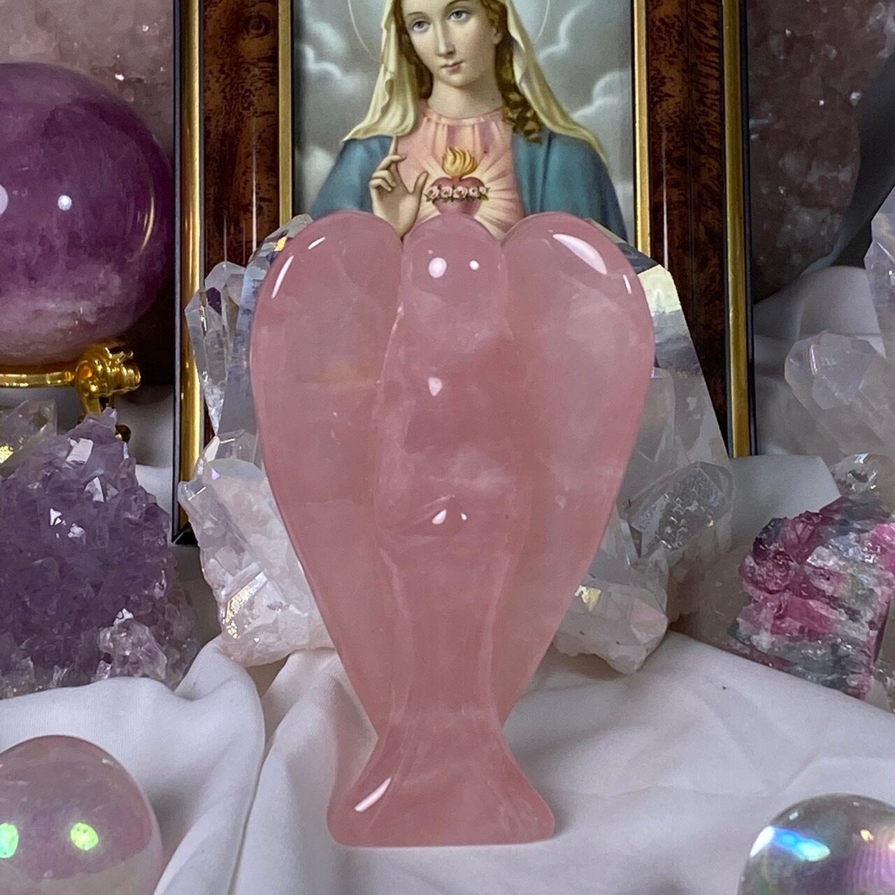 ローズクォーツの天使を眺めていると心が愛に満たされ、愛を放つような感覚になるのは店主だけでしょうか?