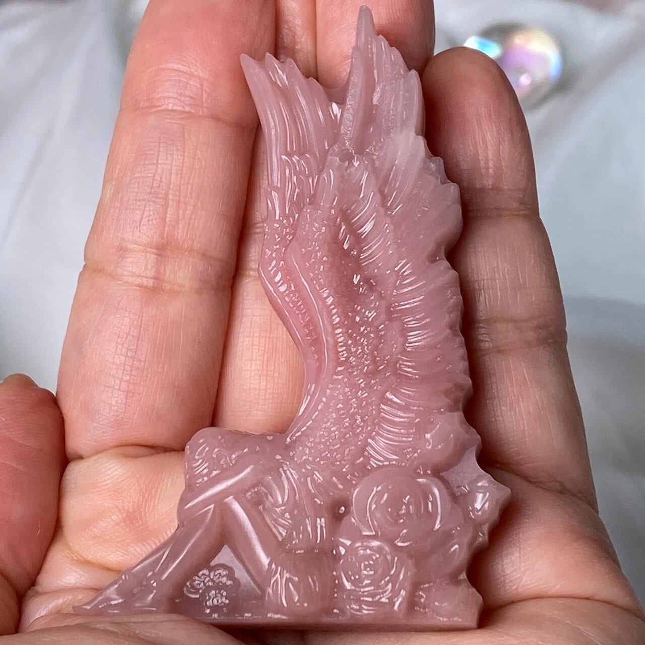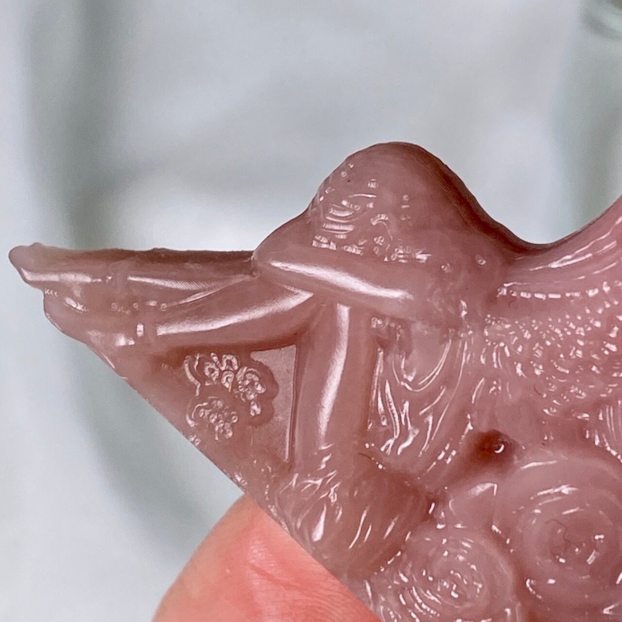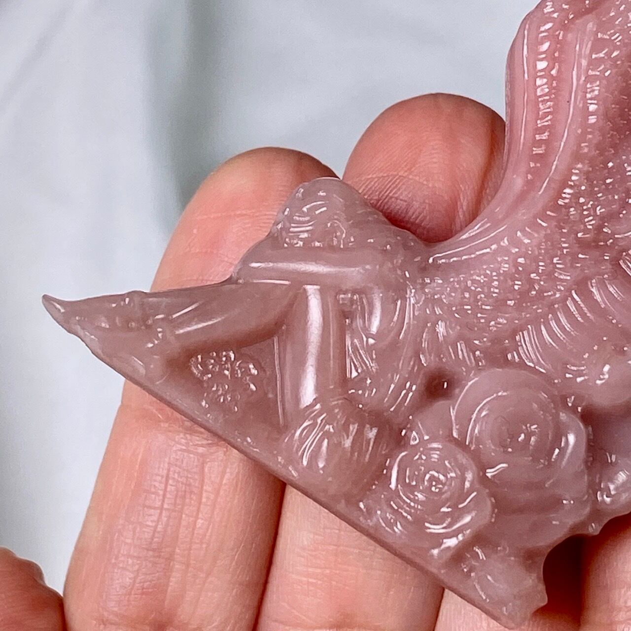 ピンクオパールのフェアリーで前面のみカービングが施されています。
