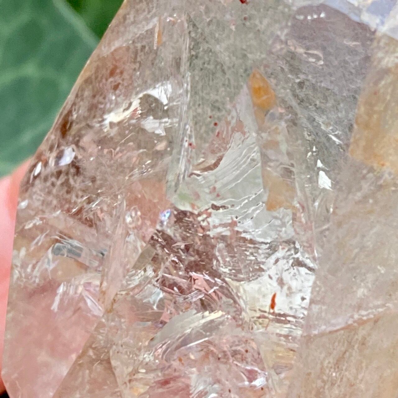 ※水晶のため、特性としてクラックやチップ、キズや凹み、内包物、そして剥離痕等がございます。特に外側のコーティング部分は、コア部分との剥離痕、そしてクラック(研磨に耐え得る様接着剤が使用されていて、接着剤が露出している箇所有り)やチップ、内包物が表面に出ている事によるラフな質感の箇所等がある場合ございます。これら全て理解して受け入れて下さる方にご購入をお願い致します。