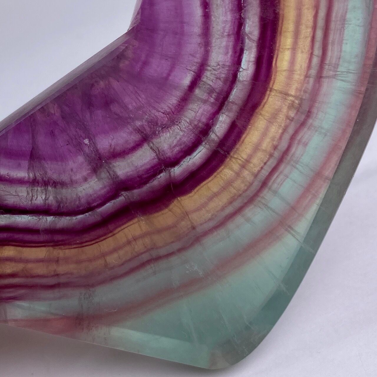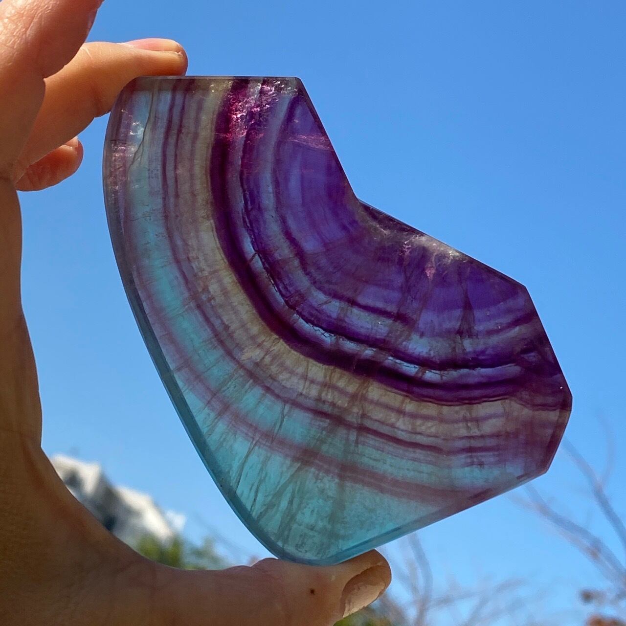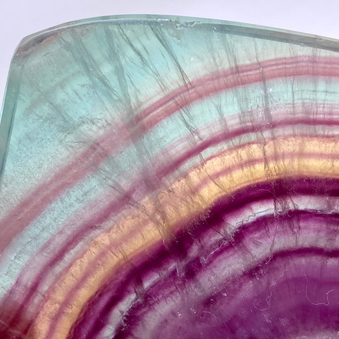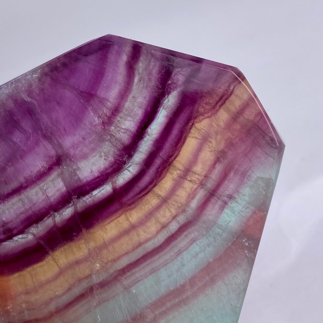 フローライトは太陽光や浴水による浄化には適していません。紫外線に弱いため、取り扱いや保管にご注意下さい。
