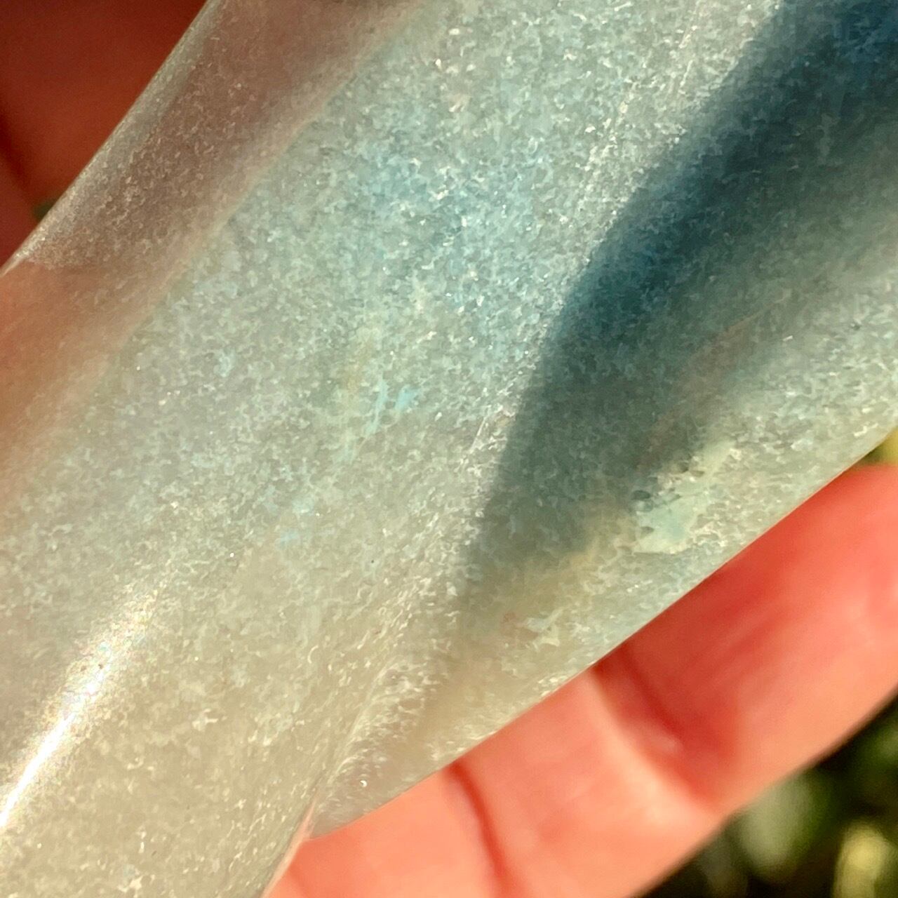 トロレアイト イン クォーツ(トロール石)は主にクォーツとブルーの濃淡であるラズライトとスコルザライトから成る石です。その波動の高さゆえ海外ではascention stoneと呼ばれ、高次との繋がりを促すと言われています。ヒーラーやライトワーカーに最適と瞑想のお供等にも使用されます。