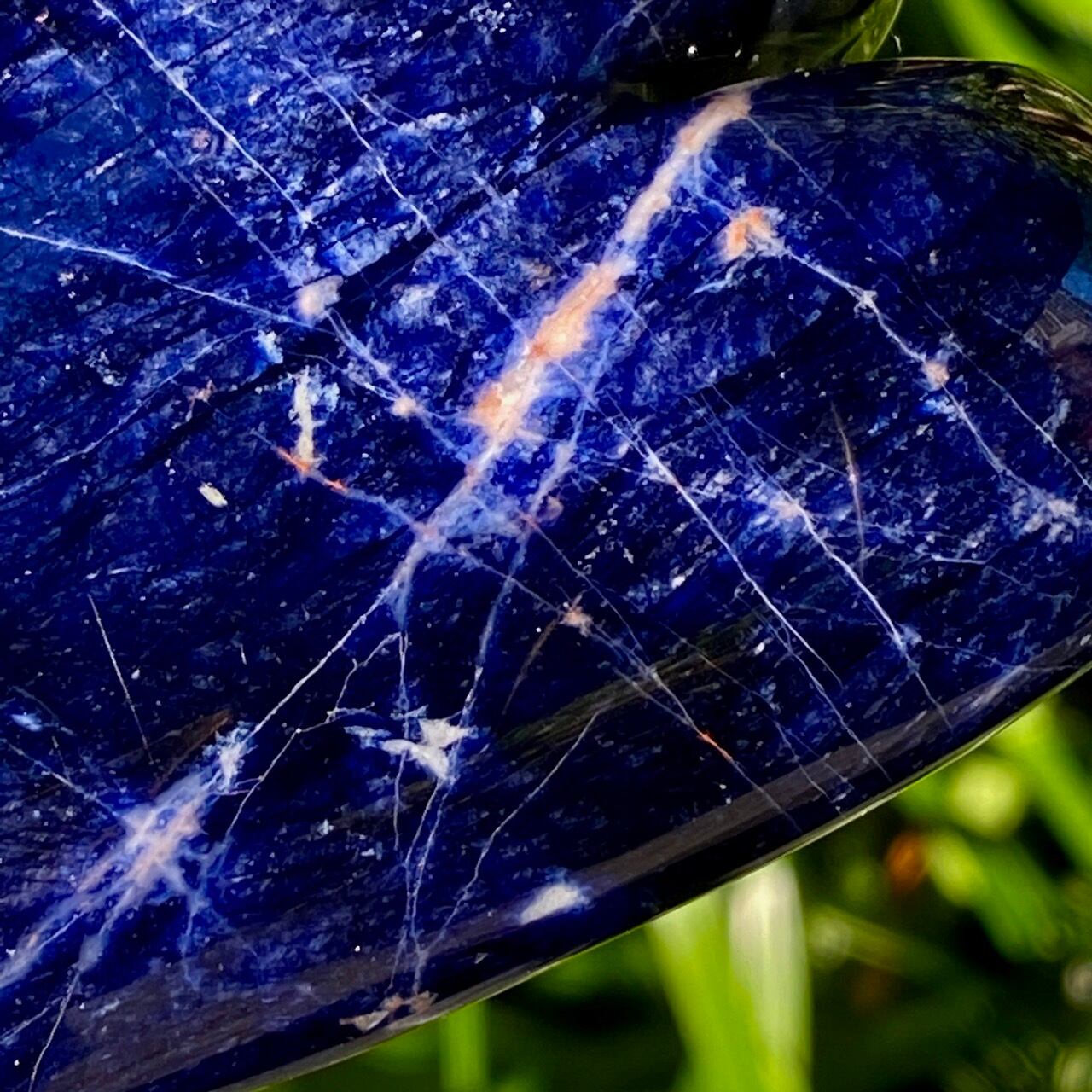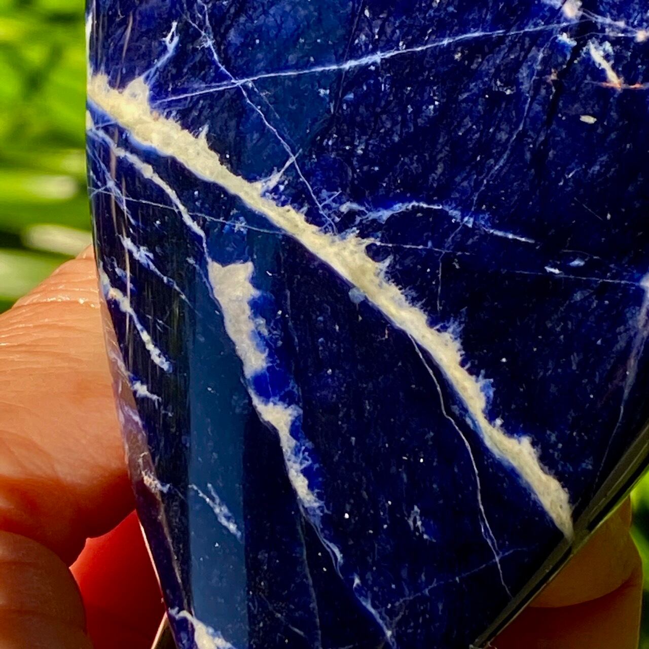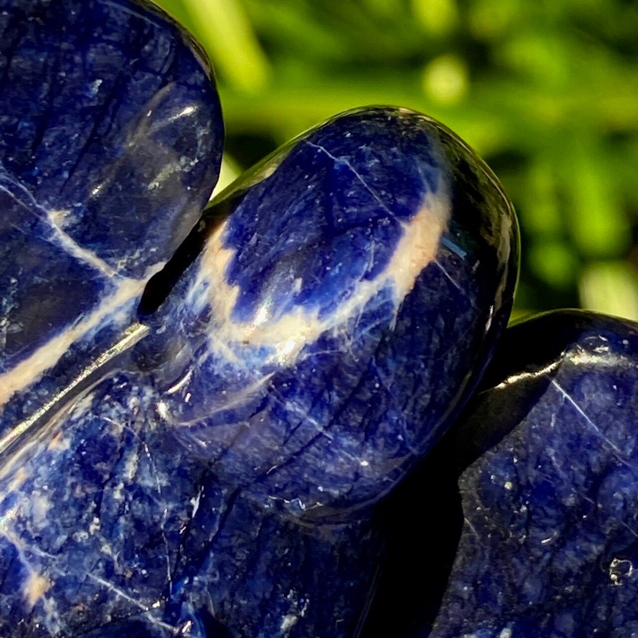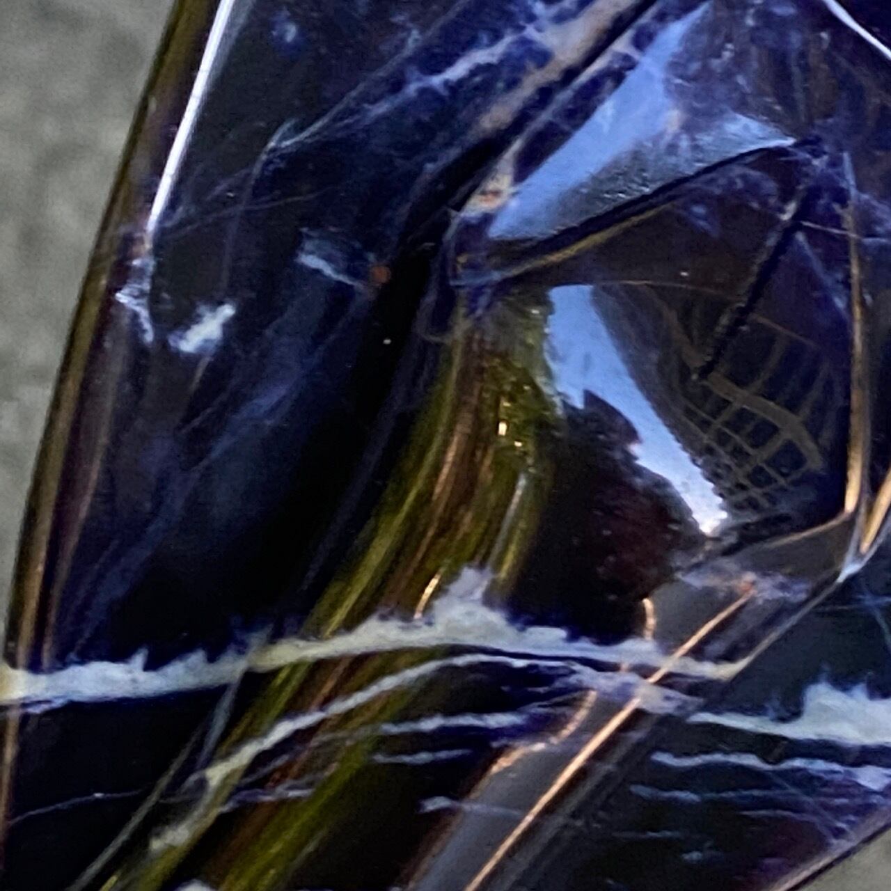 ソーダライトお馴染みの白い線が前面と後面両方を斜めに横切っていて、この深みのある紺をいっそう引き立てています。コズミックなイメージをインテリアに添えてくれる子をご自分のご褒美にいかがでしょうか?