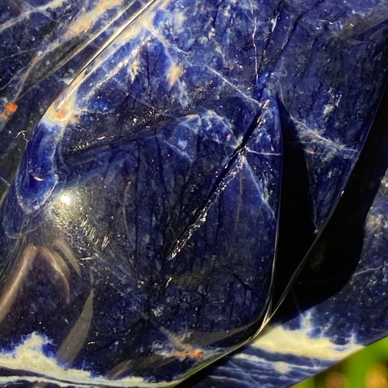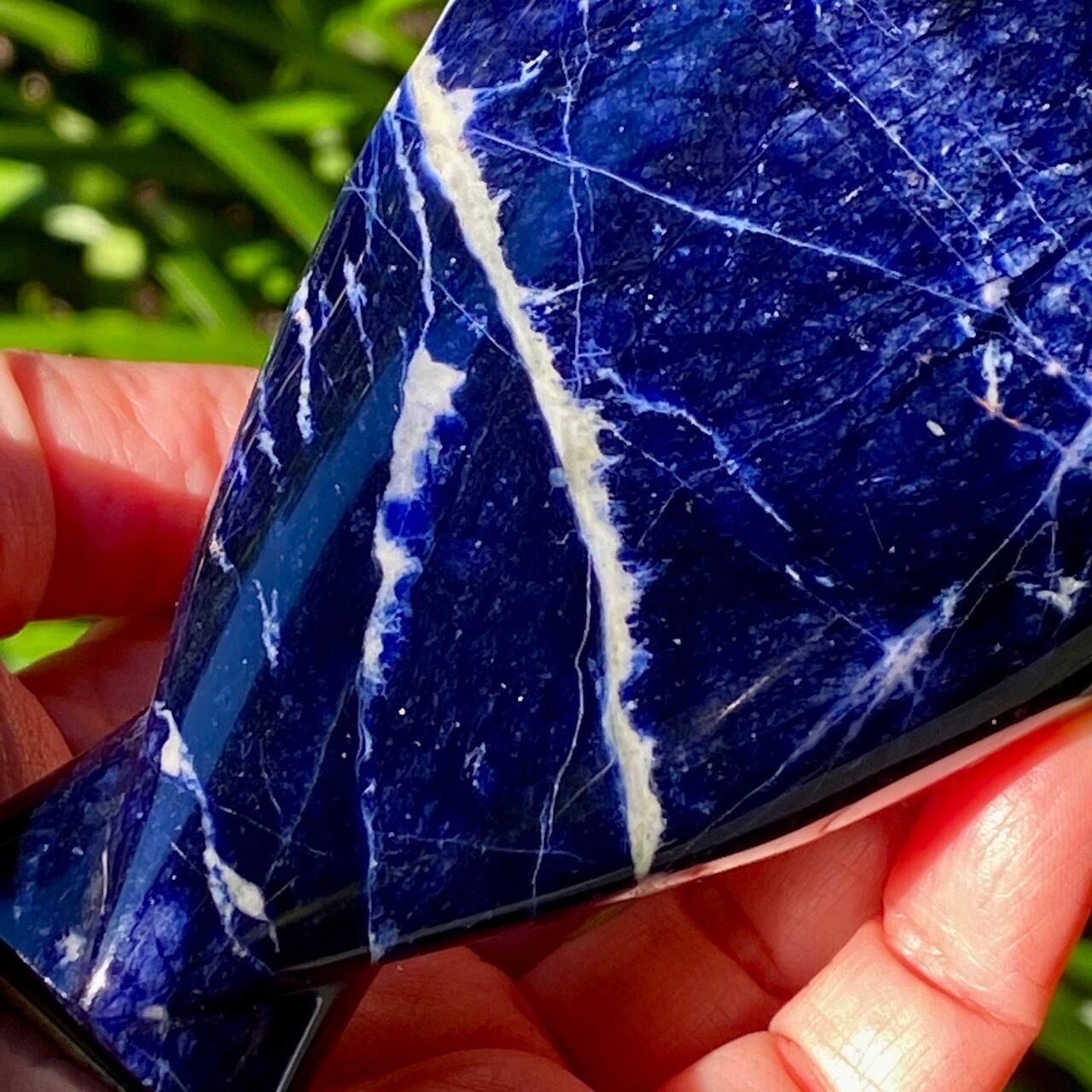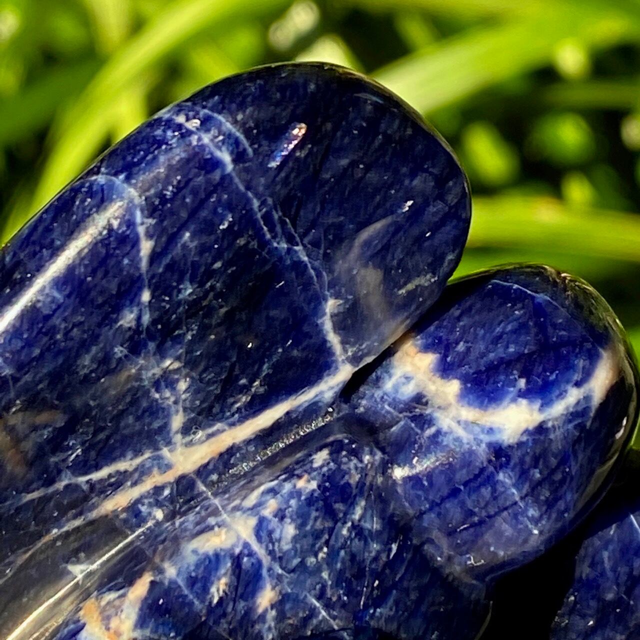 ソーダライトお馴染みの白い線が前面と後面両方を斜めに横切っていて、この深みのある紺をいっそう引き立てています。コズミックなイメージをインテリアに添えてくれる子をご自分のご褒美にいかがでしょうか?