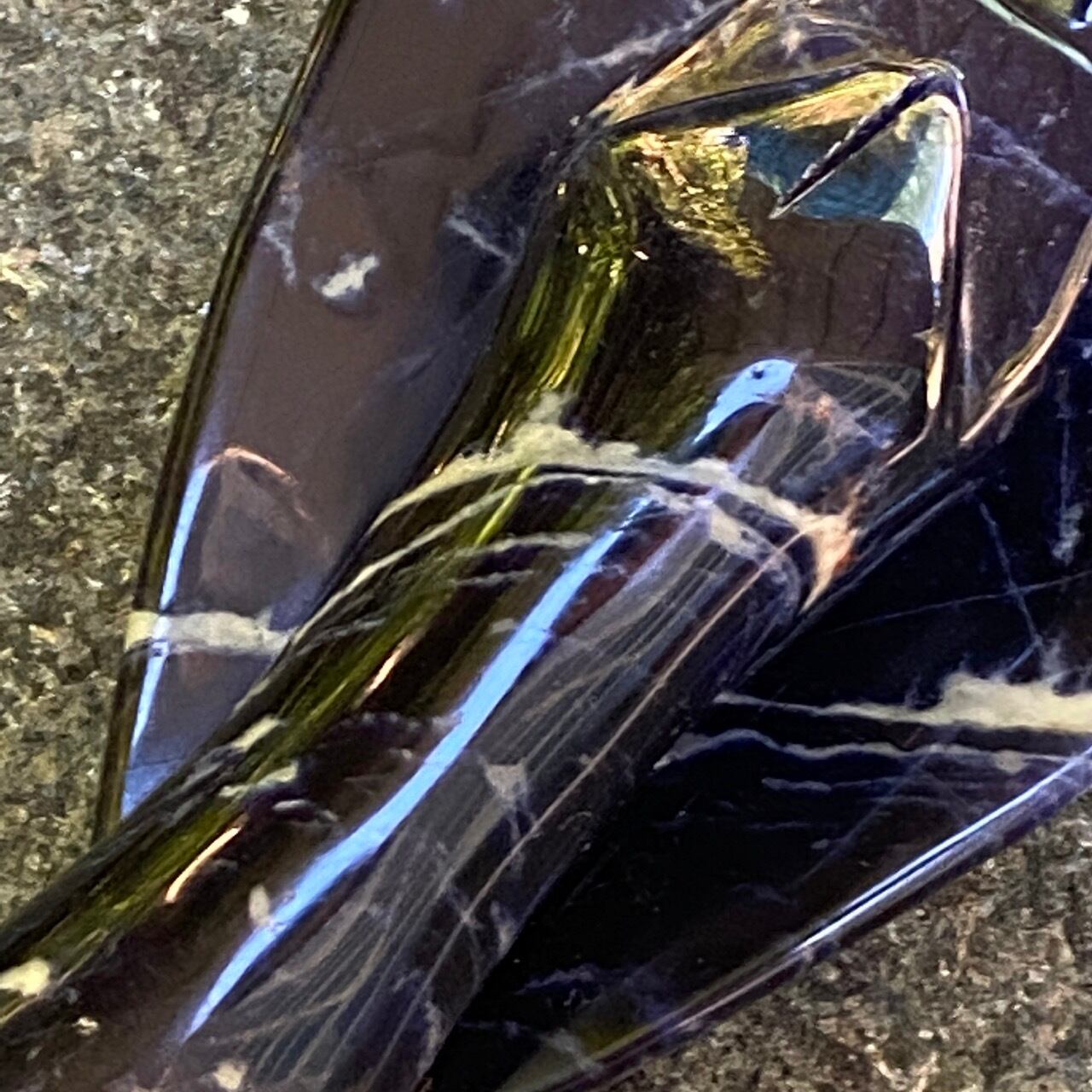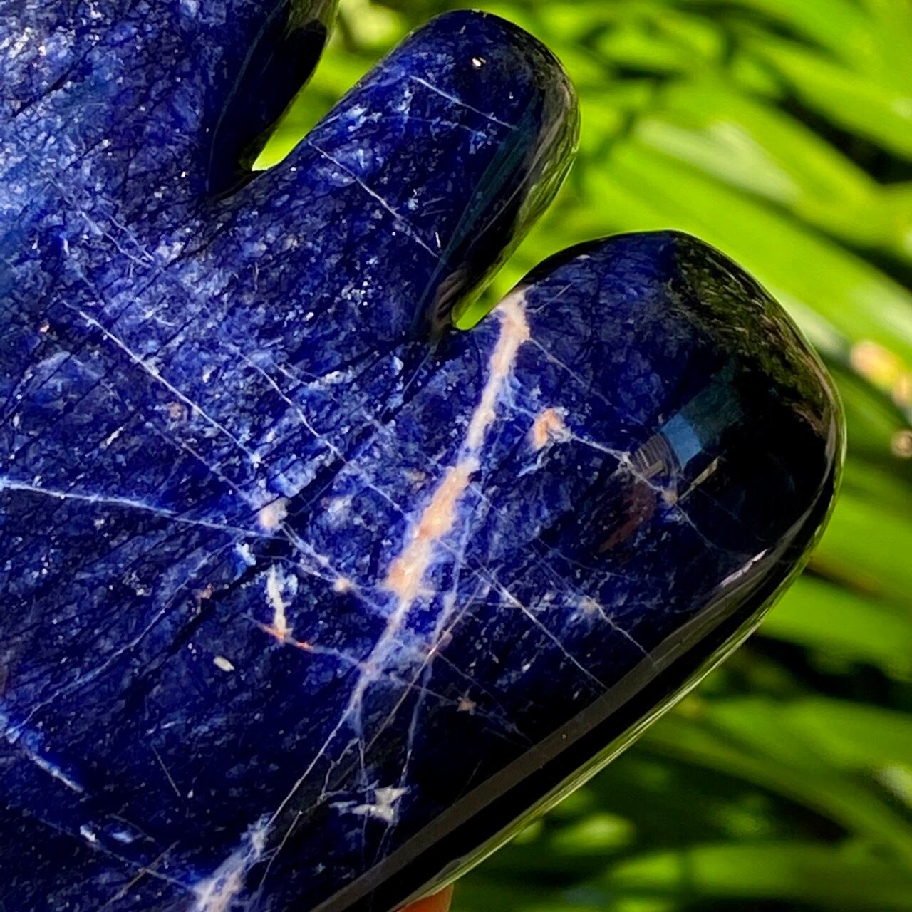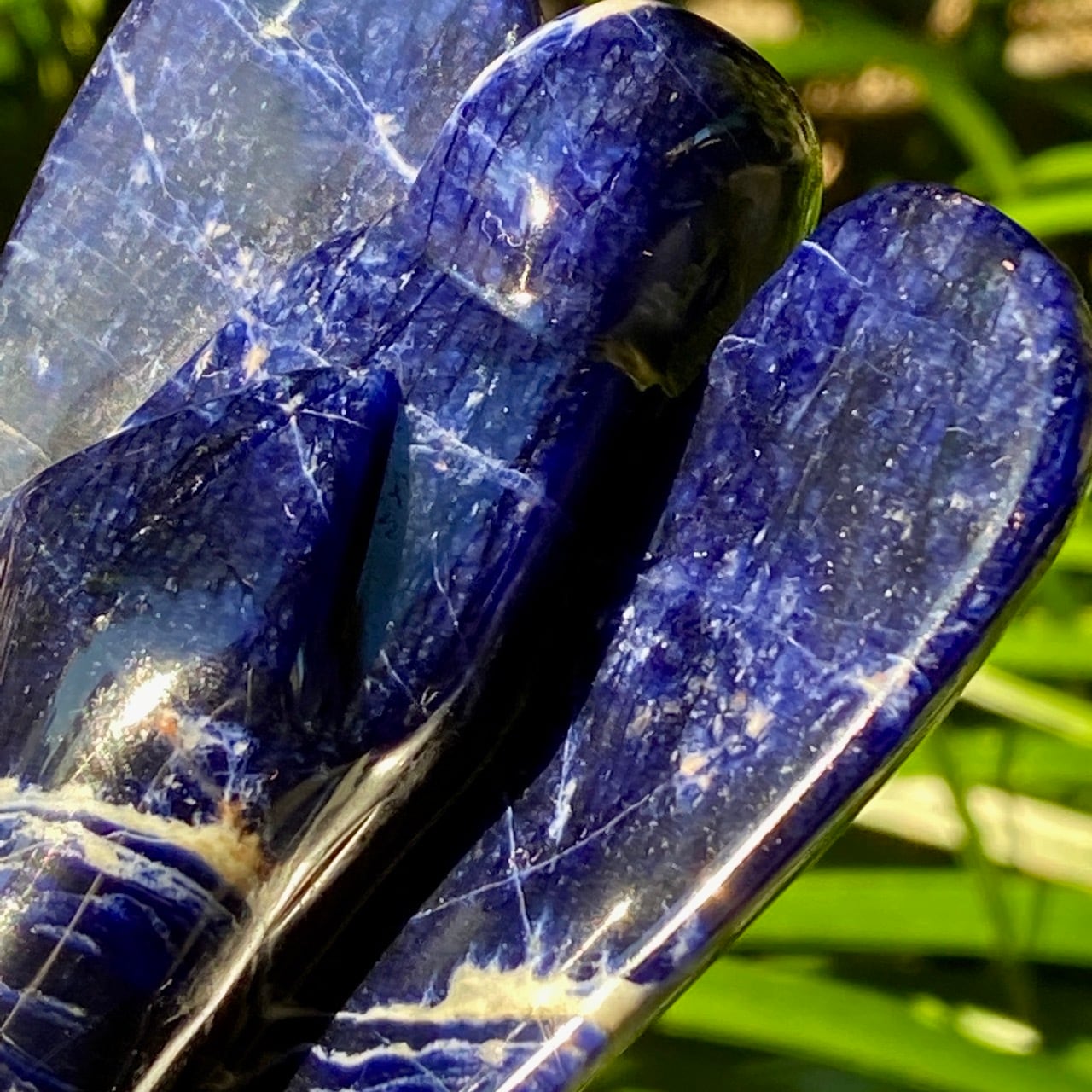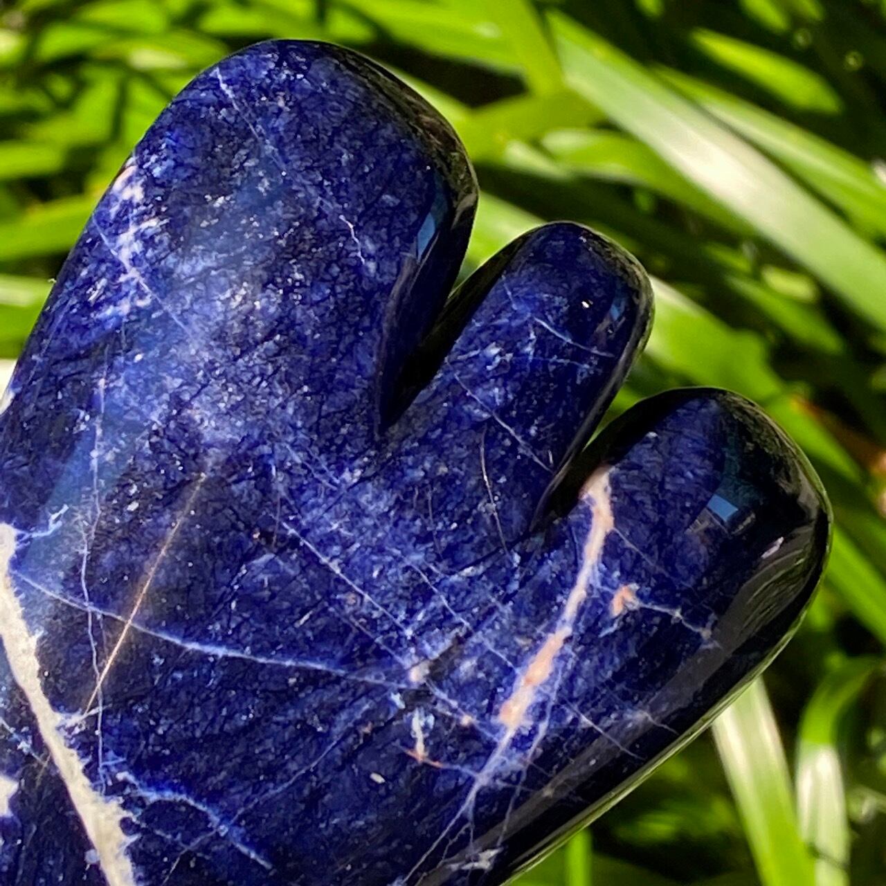ソーダライトお馴染みの白い線が前面と後面両方を斜めに横切っていて、この深みのある紺をいっそう引き立てています。コズミックなイメージをインテリアに添えてくれる子をご自分のご褒美にいかがでしょうか?