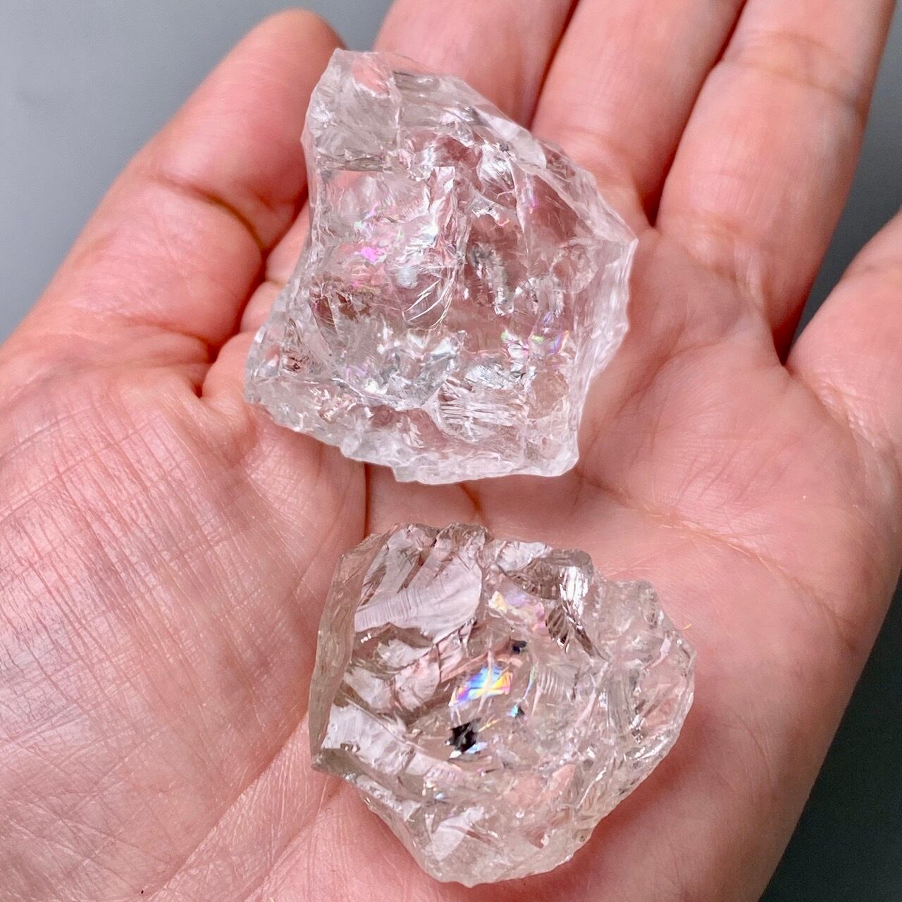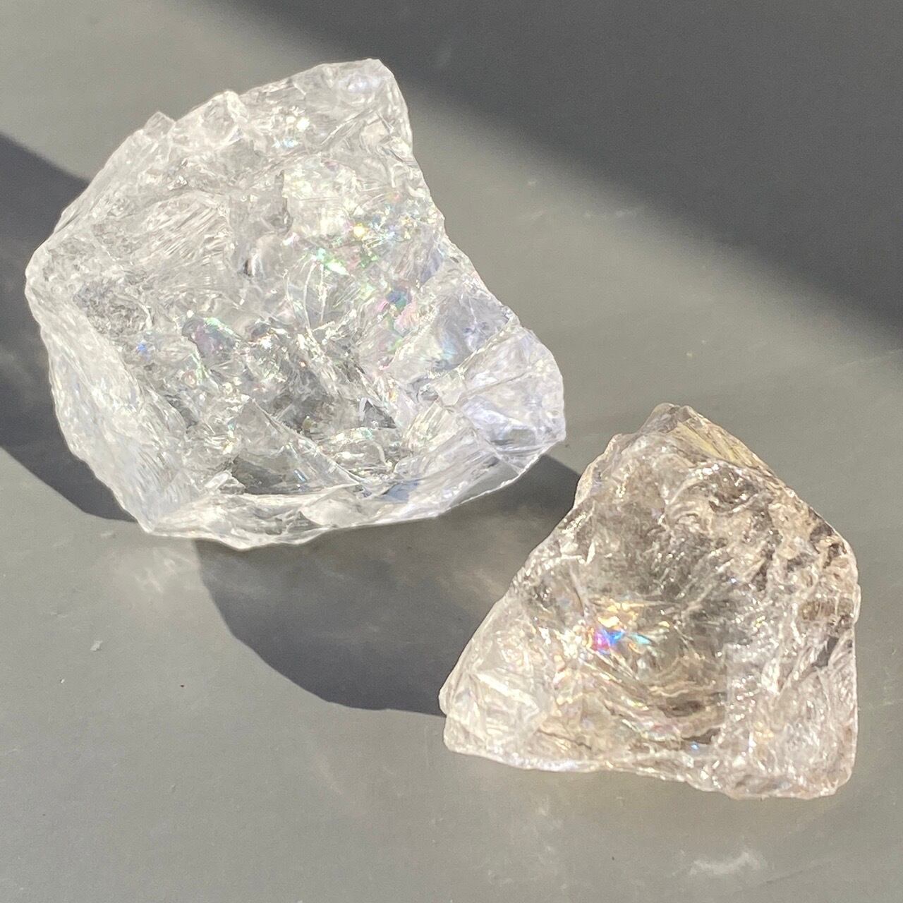 ※研磨している水晶とは違い、共にかち割り水晶のため、切断面のエッジが鋭くなっていますので、取り扱いの際はご注意下さい。
