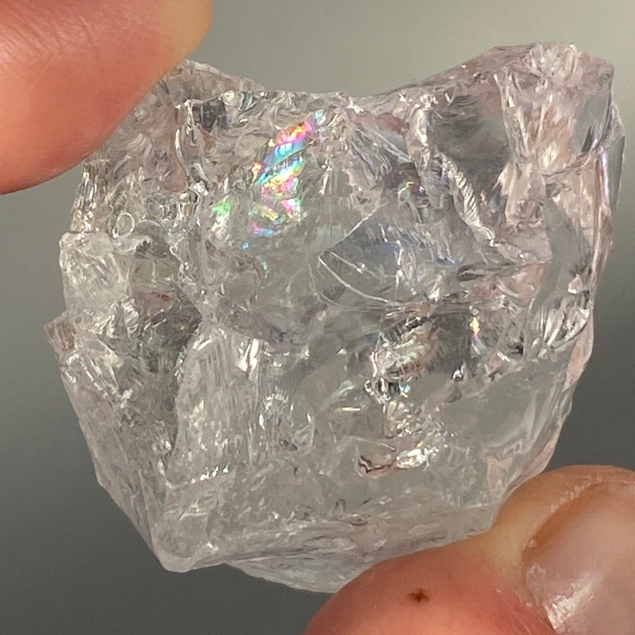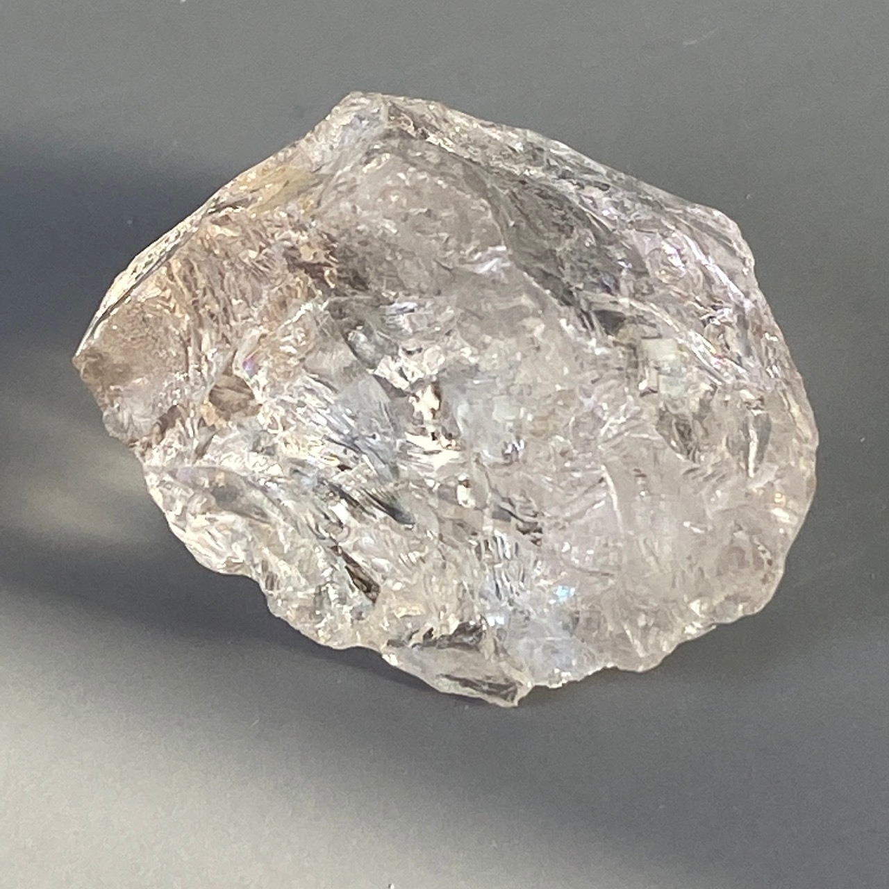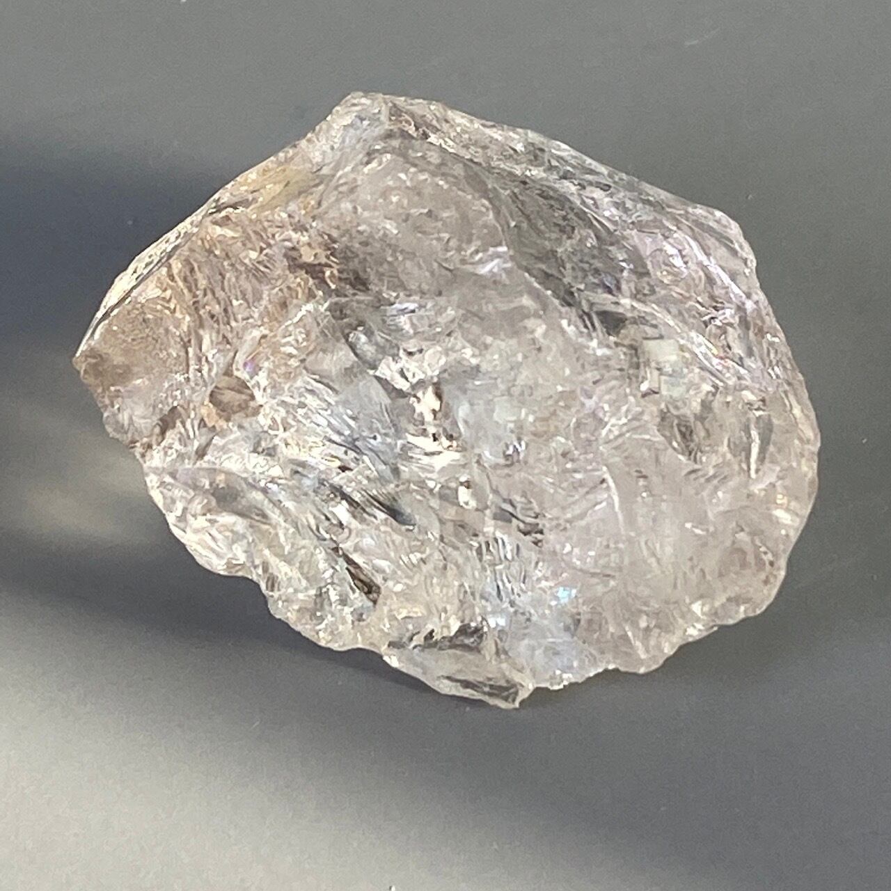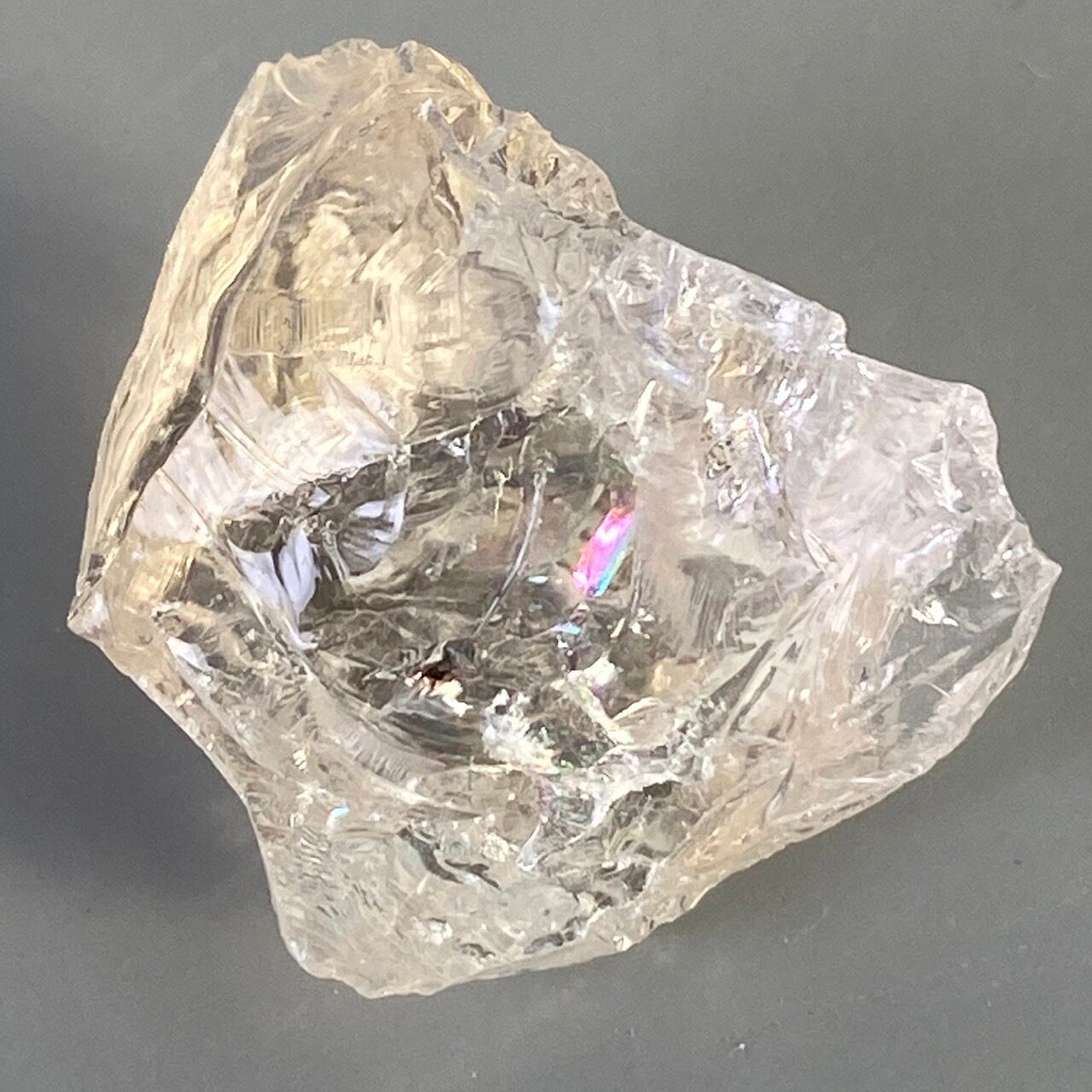 一方、煙水晶は非常に薄らとしたウィスキーやシャンパンの色味(天然色)で照りがあって素敵です。煙水晶の方にも大きな虹が確認できます。