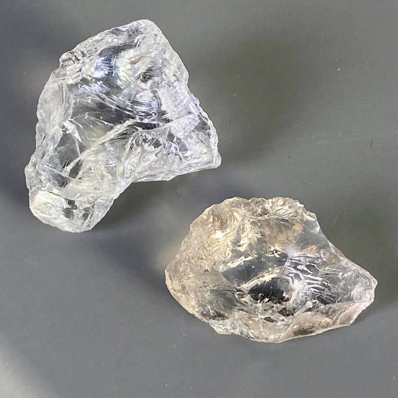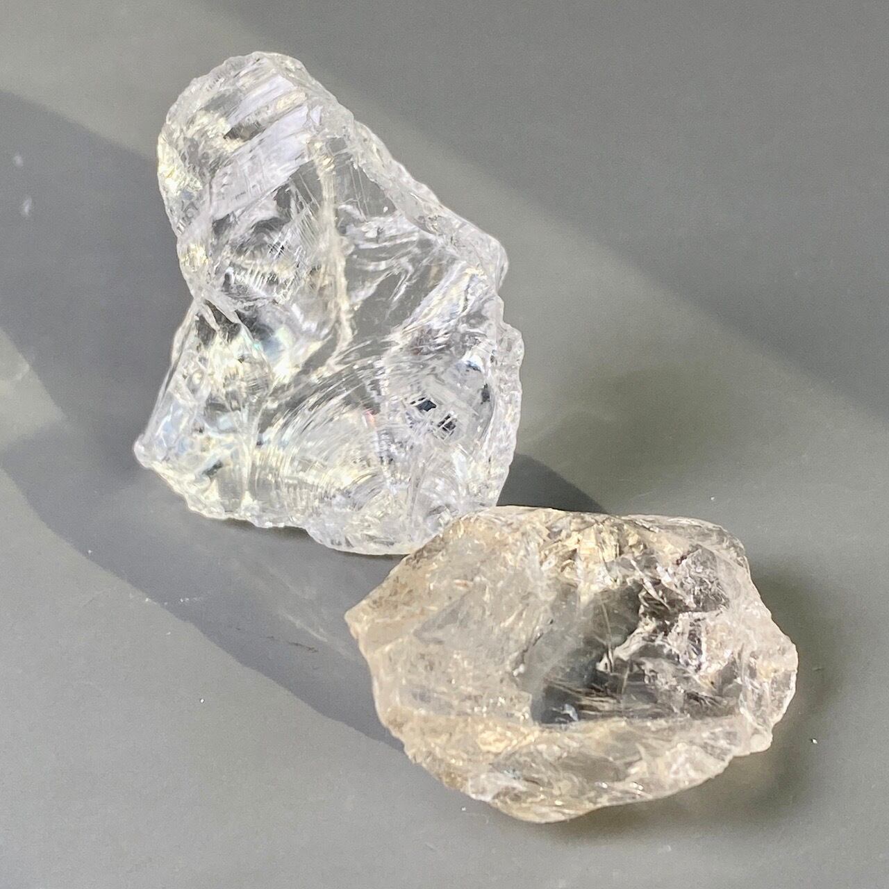 ※研磨している水晶とは違い、共にかち割り水晶のため、切断面のエッジが鋭くなっていますので、取り扱いの際はご注意下さい。
