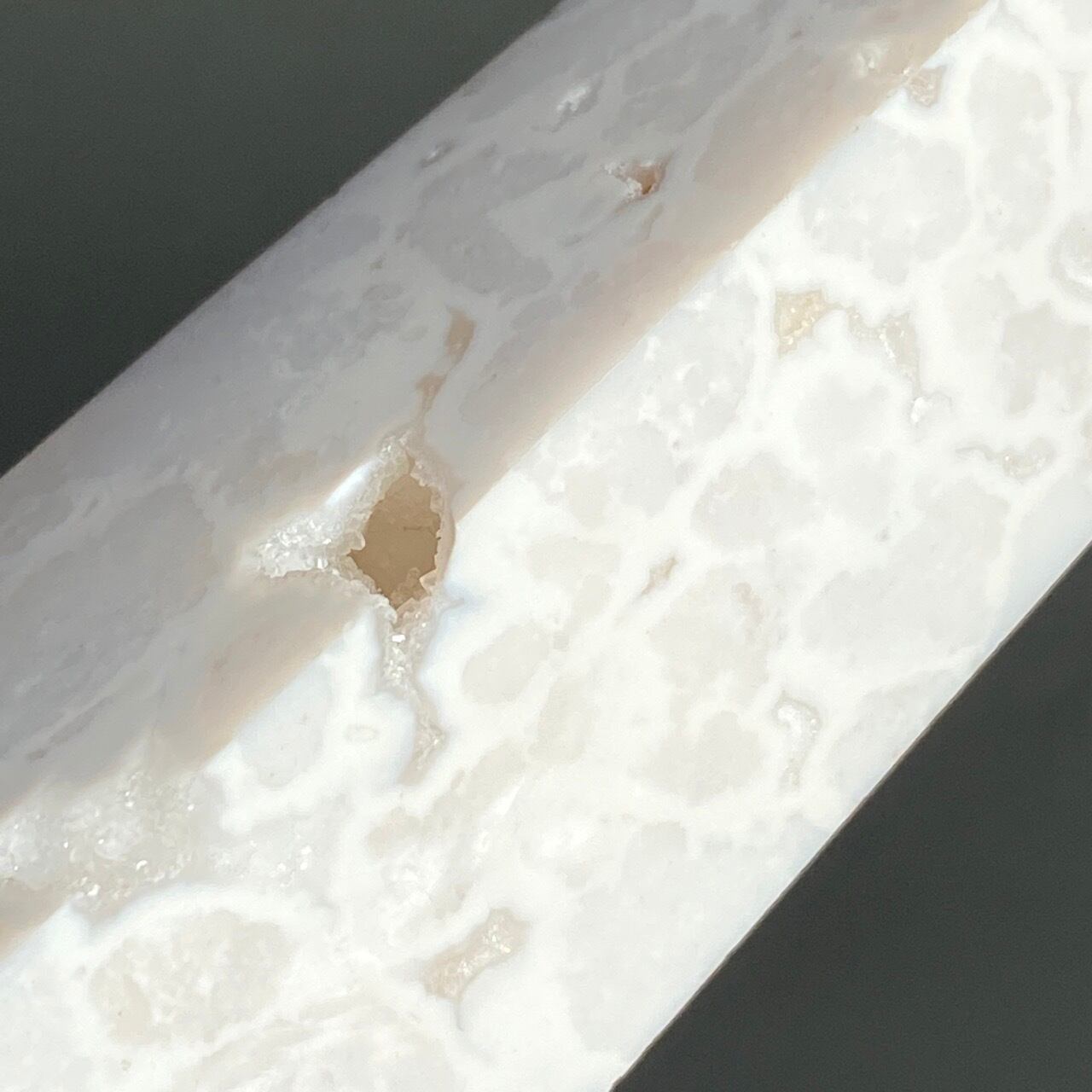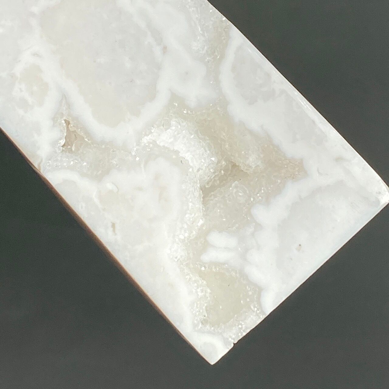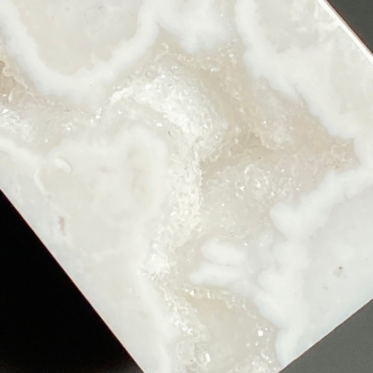 このドゥルージーを取り囲むバンディング(帯状の模様)までもが白で、石の白、バンディングの白、そしてドゥルージーの白で目に眩しい子です。