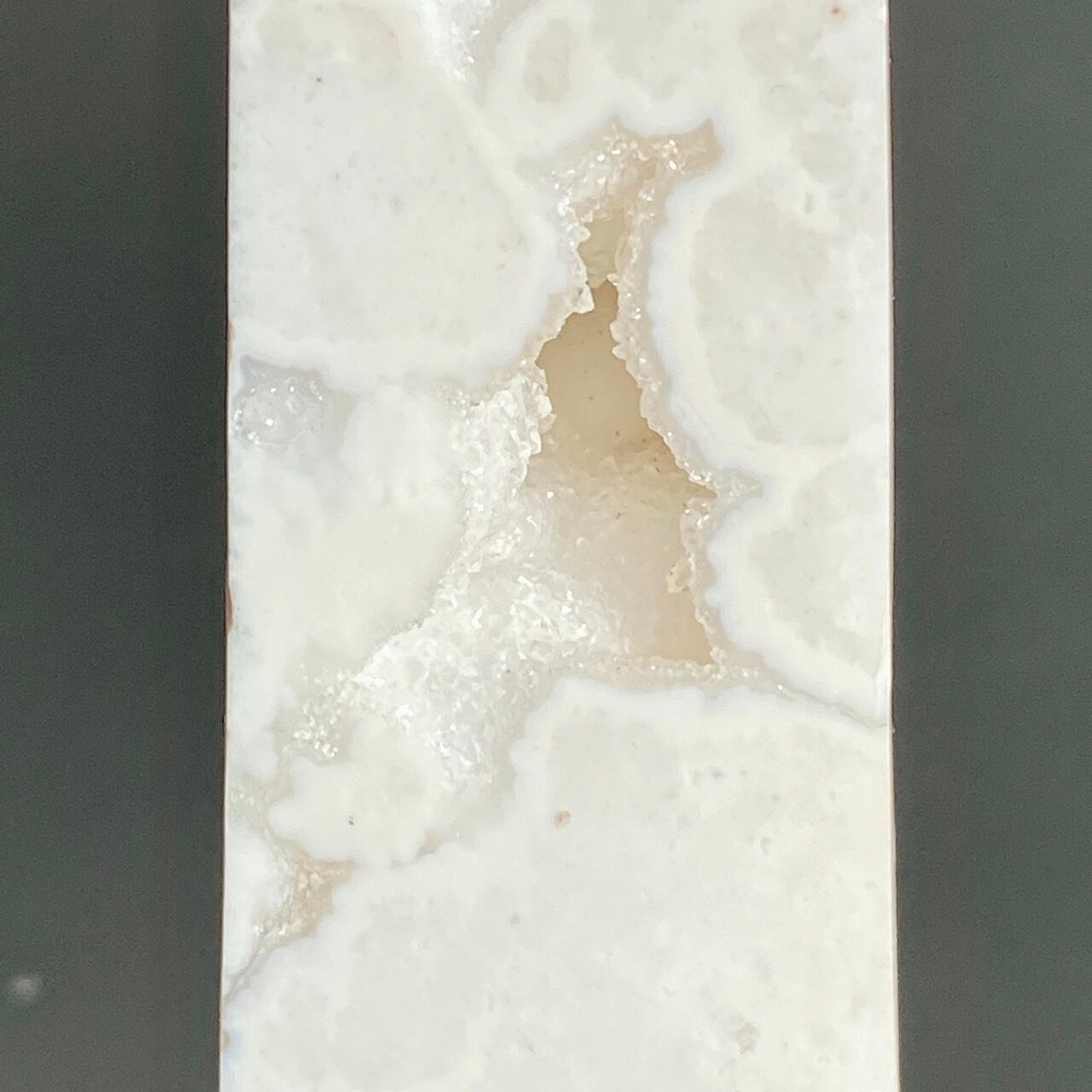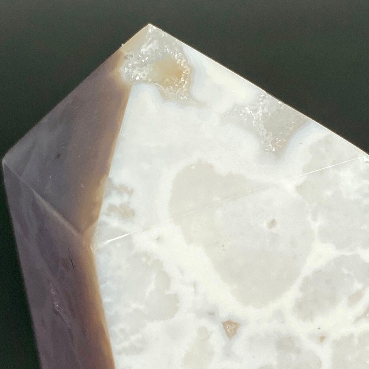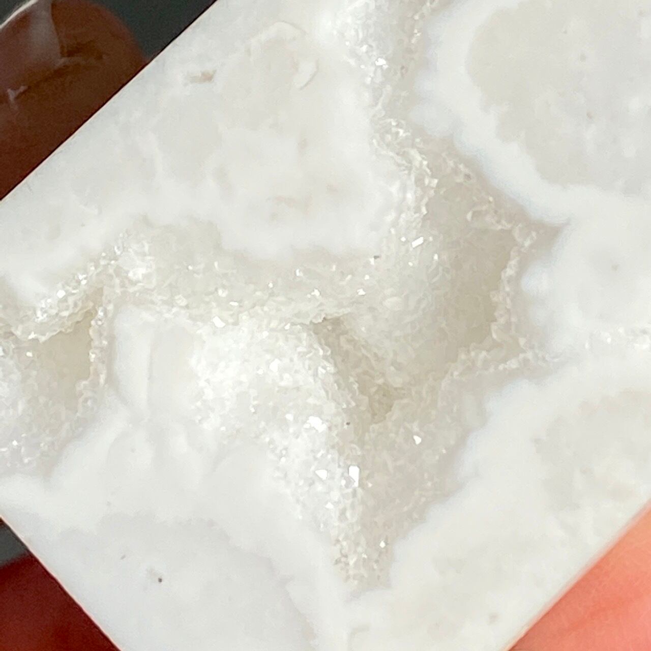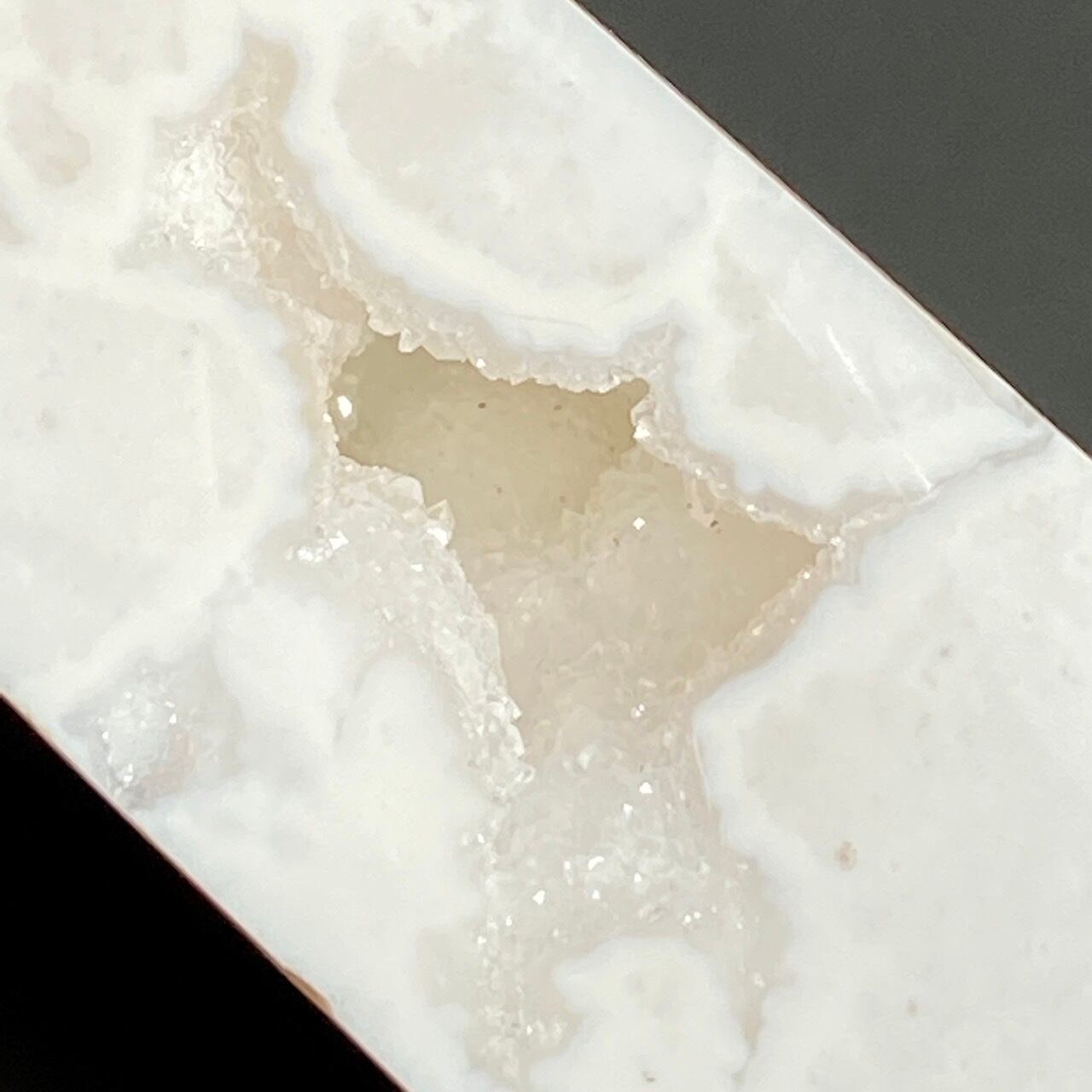 このドゥルージーを取り囲むバンディング(帯状の模様)までもが白で、石の白、バンディングの白、そしてドゥルージーの白で目に眩しい子です。