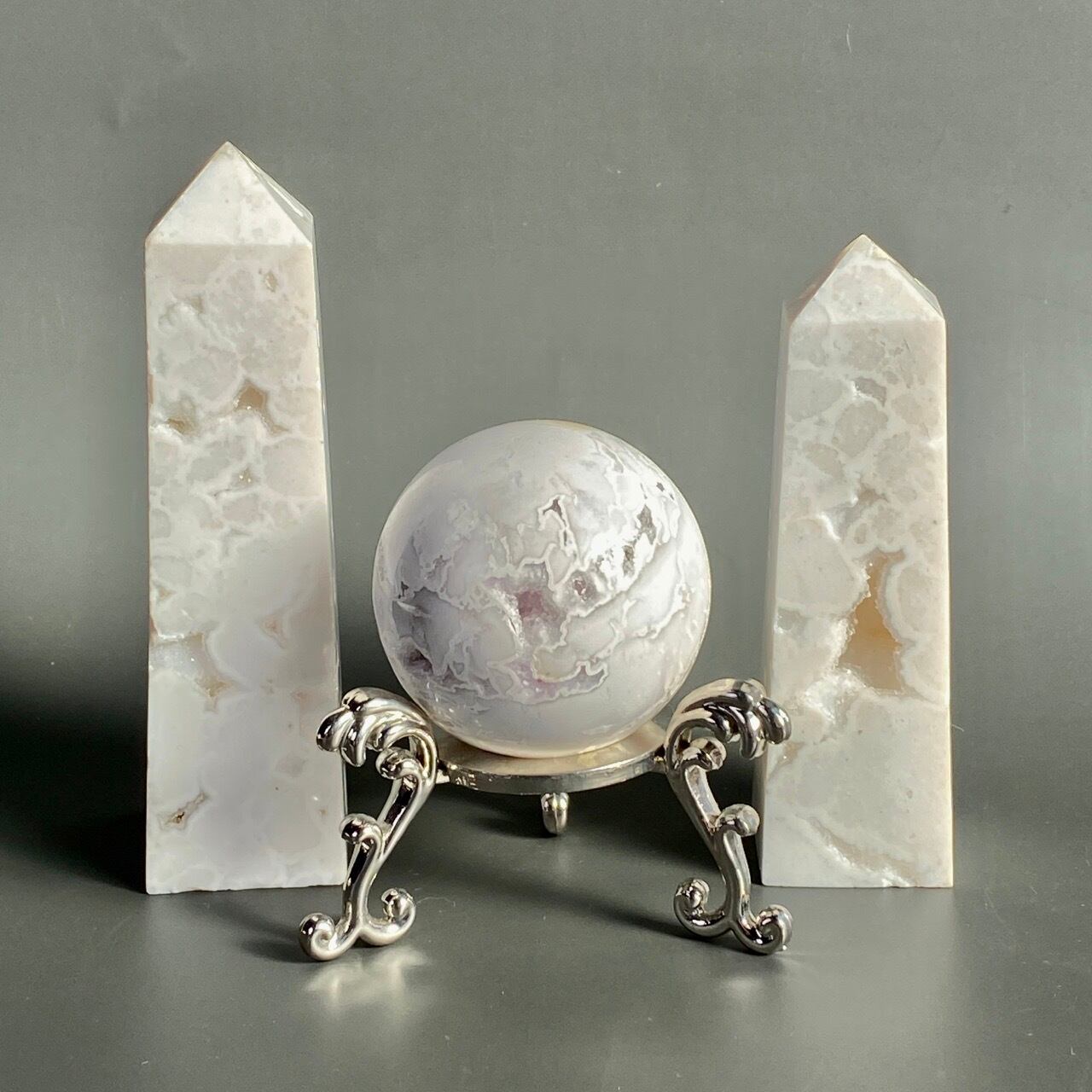 ドゥルージー入りホワイトアゲートのタワー Druzy White Agate Tower TW1155