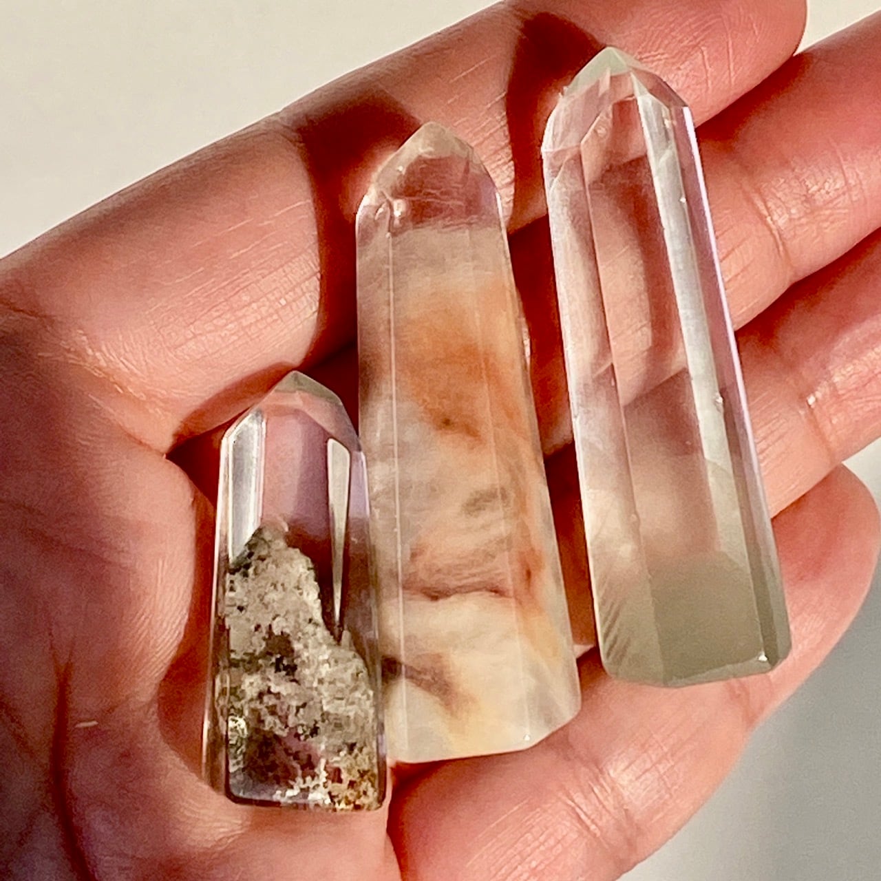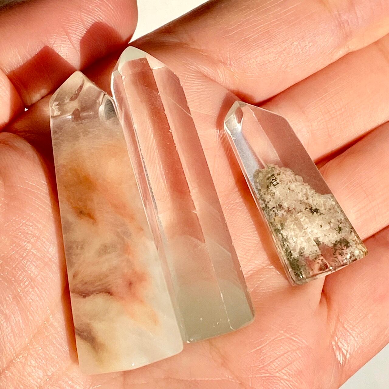 インクルージョン入りミニ水晶ポイントのセット(3個入) Set of 3 Mini Quartz Points with Inclusions TW1357/53/48