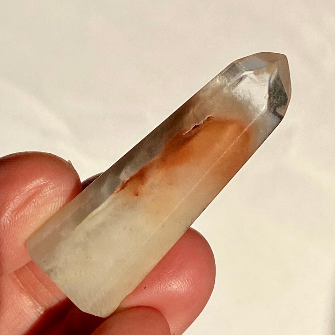 クローライト(緑泥石)やヘマタイト(鉄分)など、水晶に入り込んだ他の鉱物はそれぞれ異なります。ものによっては、ガーデンクォーツ(水晶に内包物が入って庭園のように見えるもの)と呼ぶのが相応しいです。手に収まるミニのサイズ感が可愛く、コレクションに添えて頂ける子たちです。