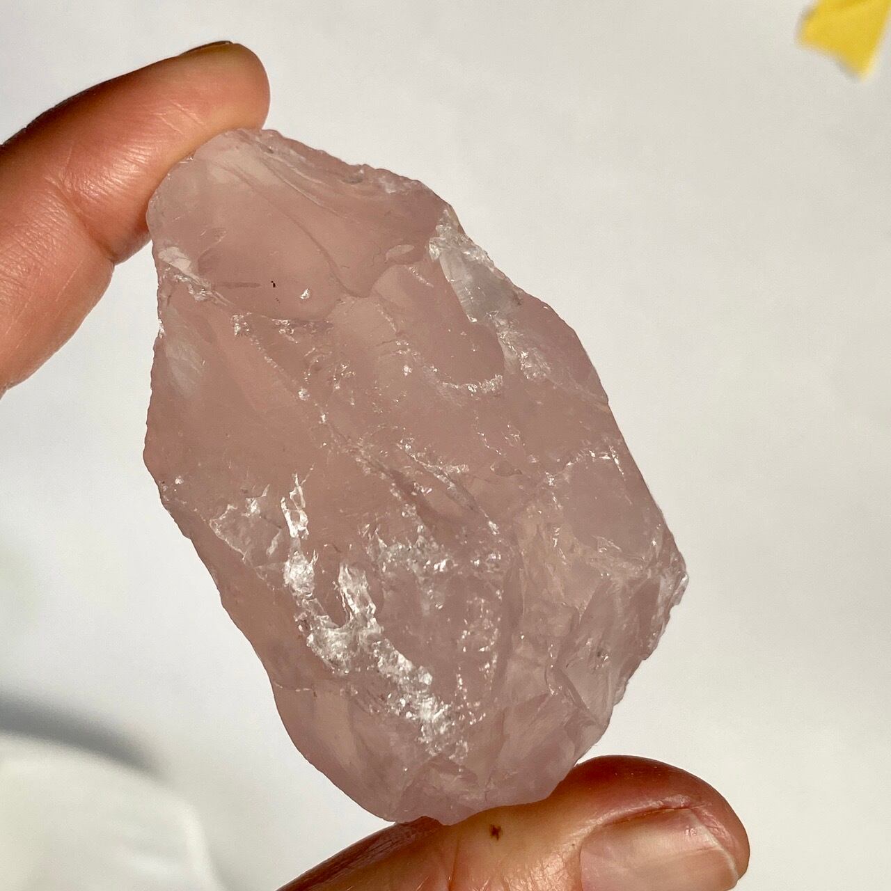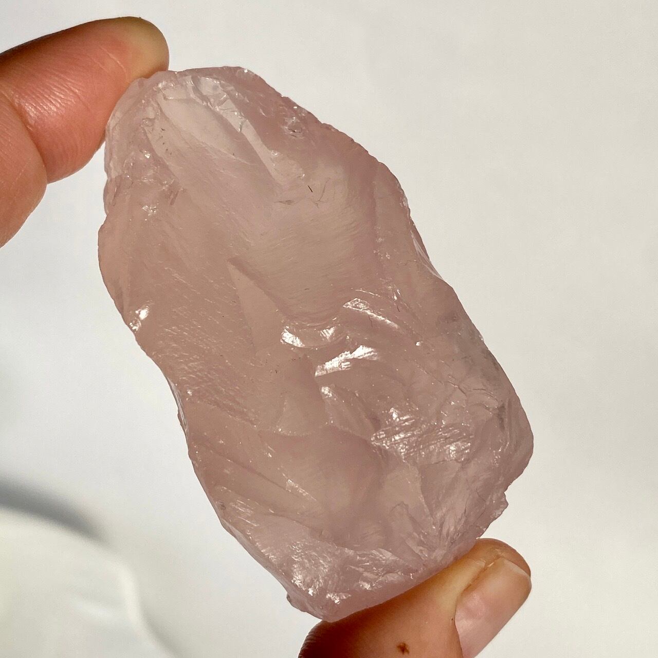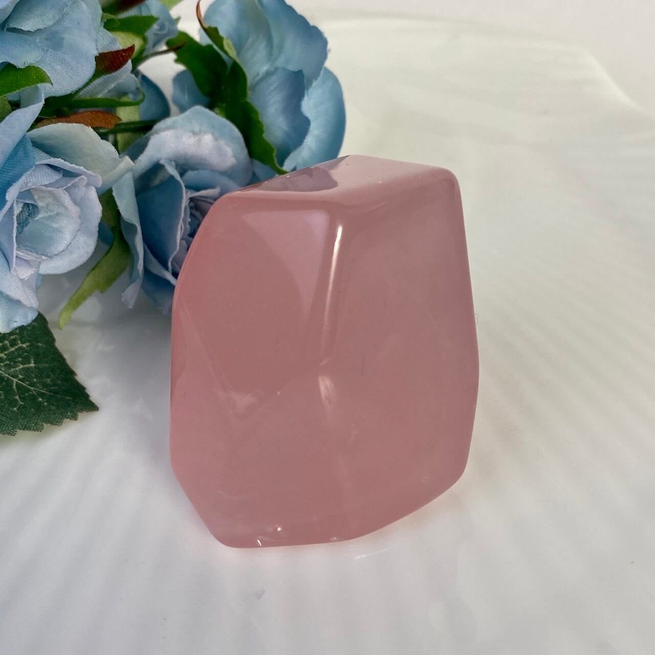 マダガスカル産のローズクォーツのフリーフォーム1個とモザンビーク産ラフカット(かち割り)1個のセットになります。フリーカットはハイクオリティのローズ色の濃い可憐な子で、一方ラフカットの方はミルキーな癒し系の子になります。