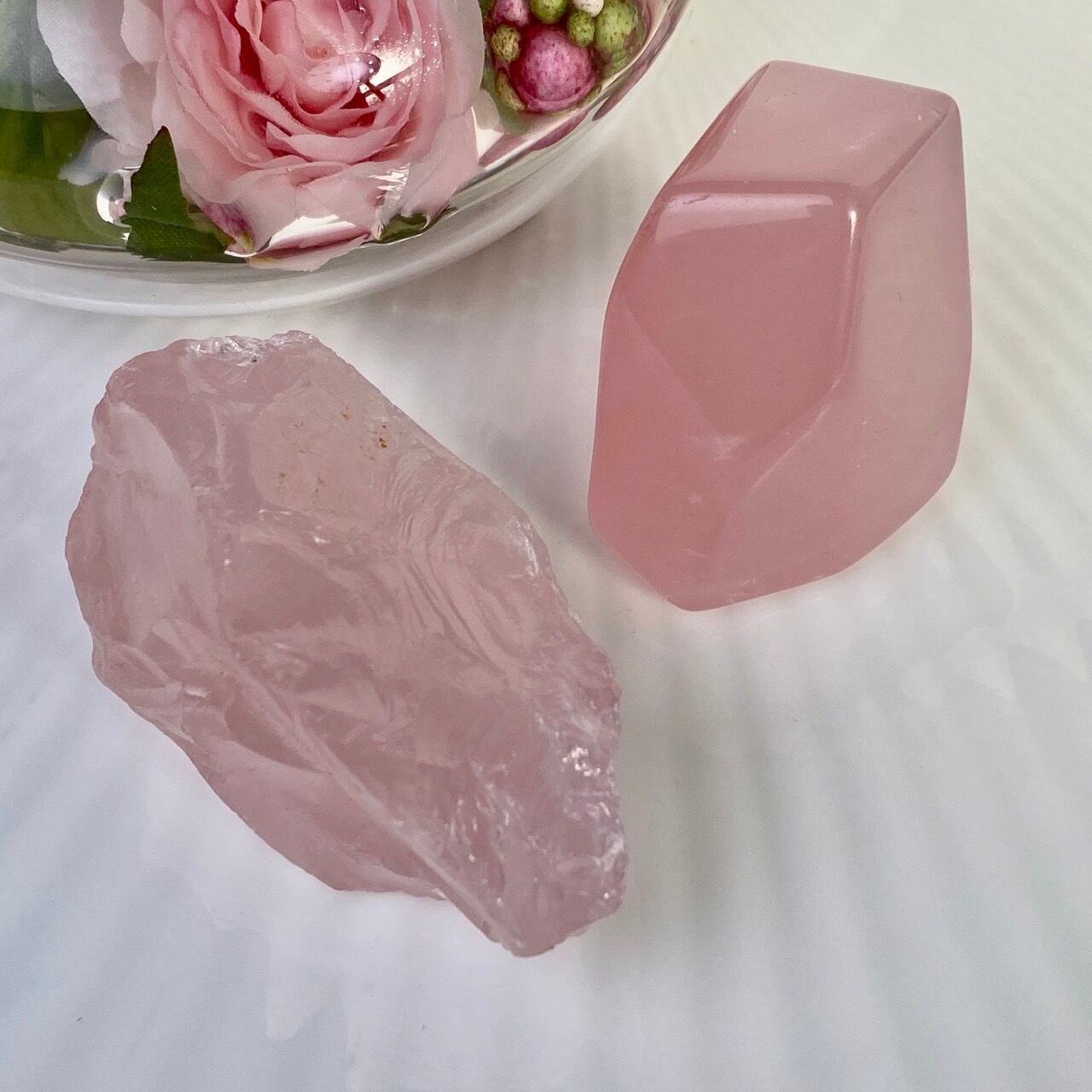 ローズクォーツのフリーフォームとラフカットのセット Rose Quartz Freeform and Rough Cut Set FF4036/ RW6190