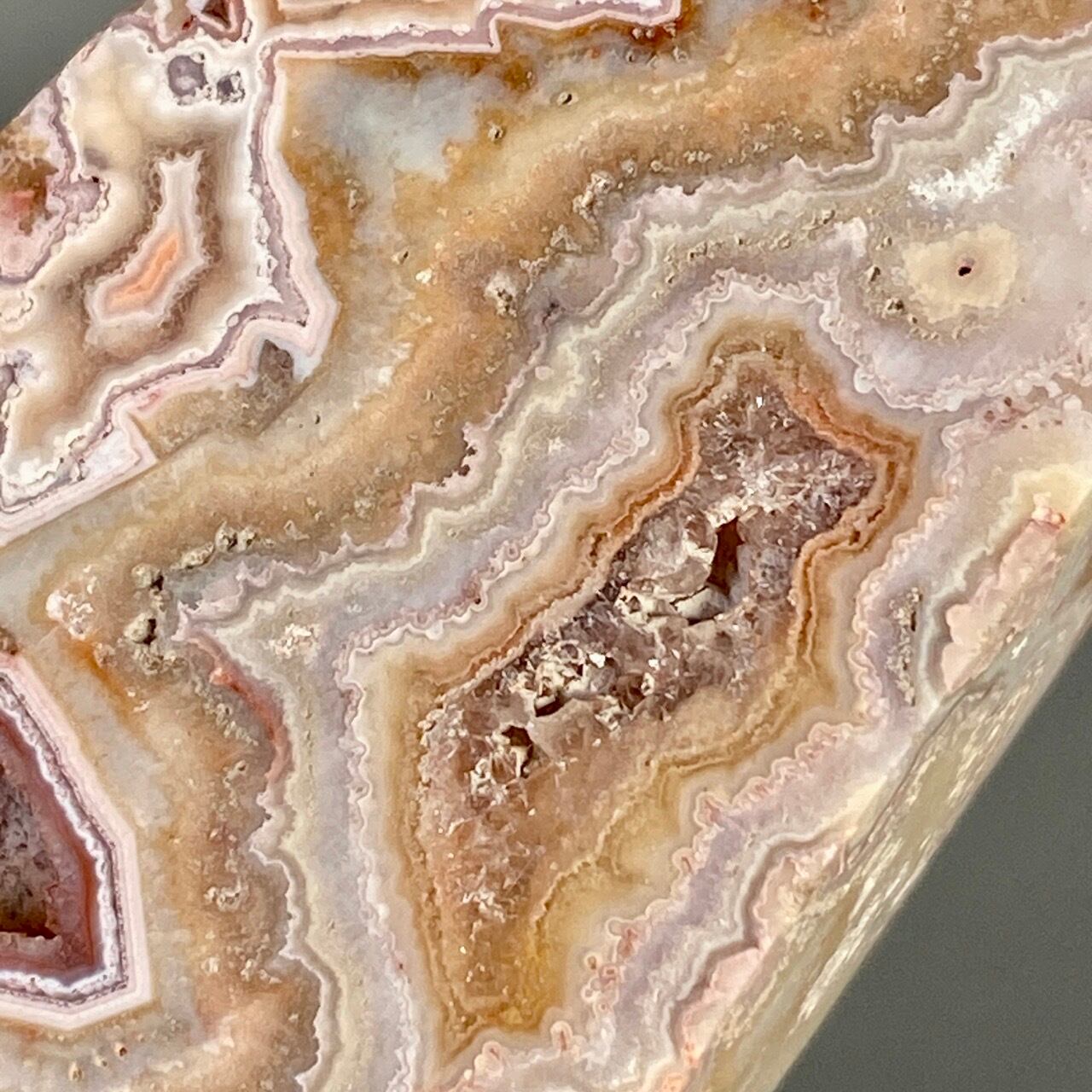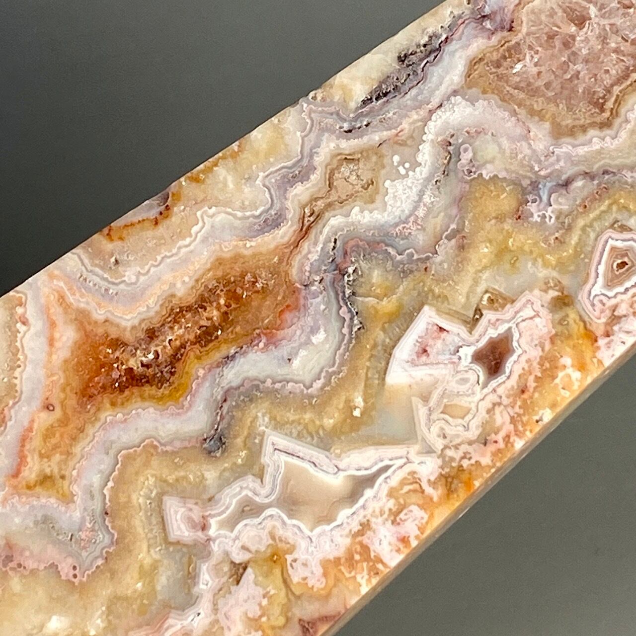 クレージーレースアゲートは、アゲート(瑪瑙)に属する石で、複雑に入り組んだ縞目模様が神秘的で人気が高く、その神秘的なビジュアルから古来より危険を回避する石として先住民族たちのお守りや儀式の道具として大切に崇められてきた神聖な石だと言われています。
