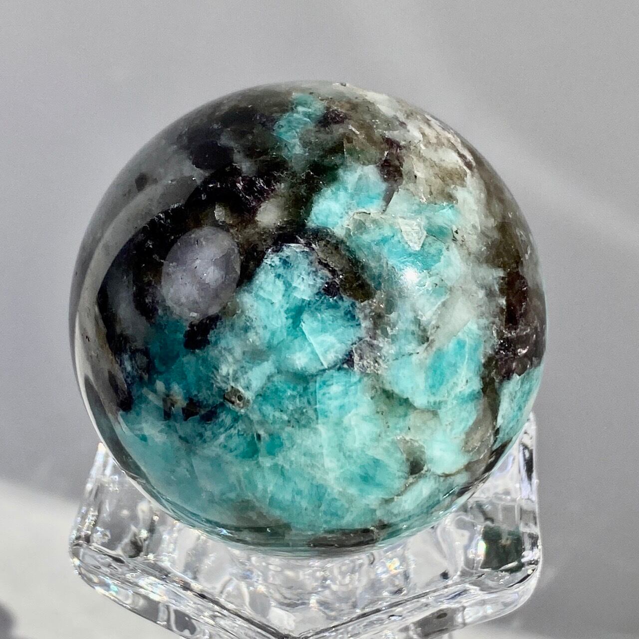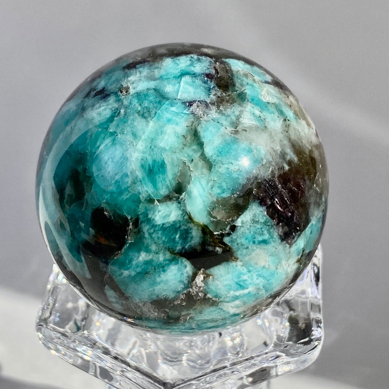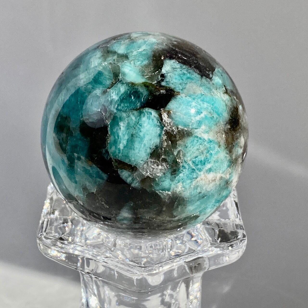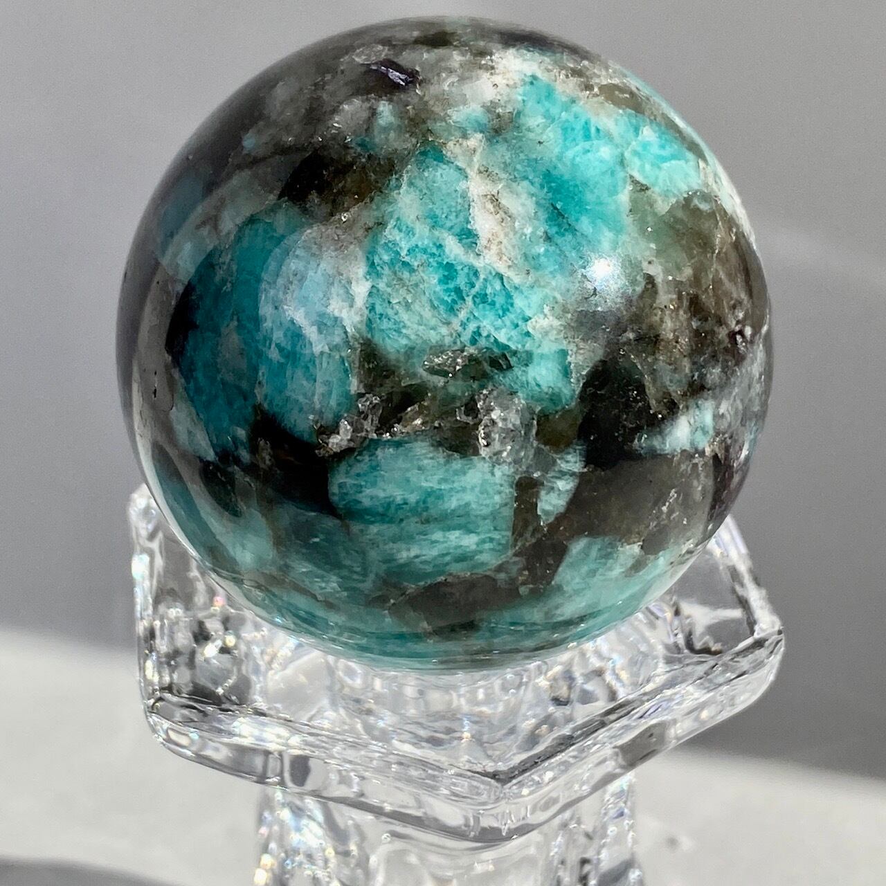マイカ共生アマゾナイト x スモーキークォーツのスフィア Amazonite x Smoky Quartz Sphere SP2071