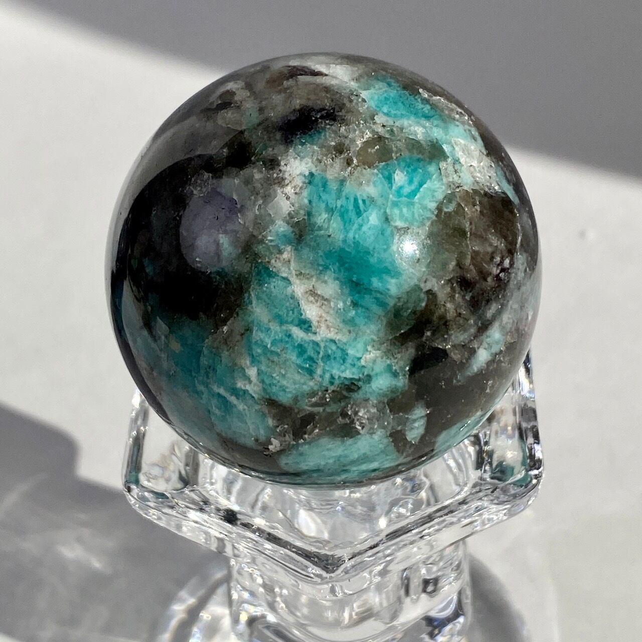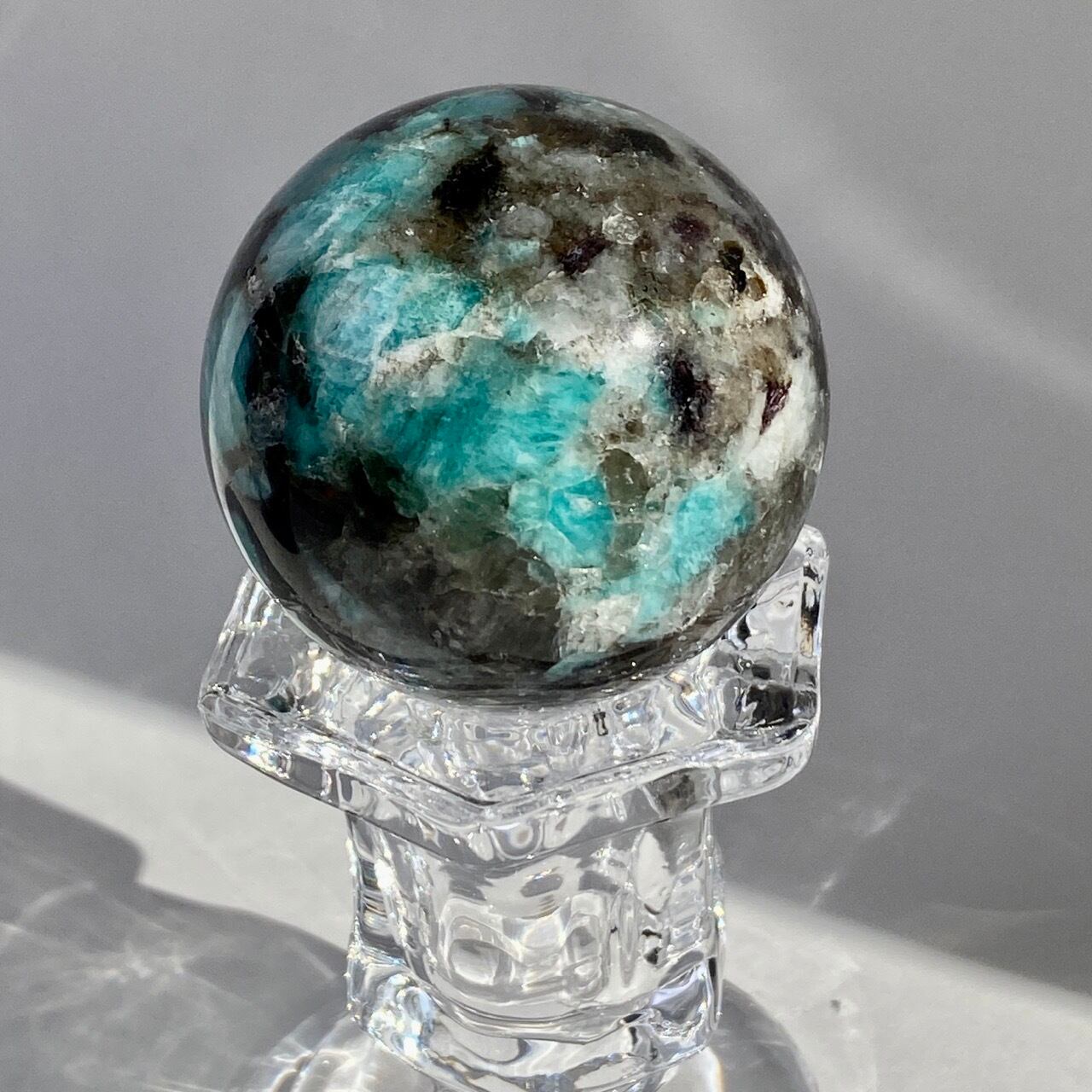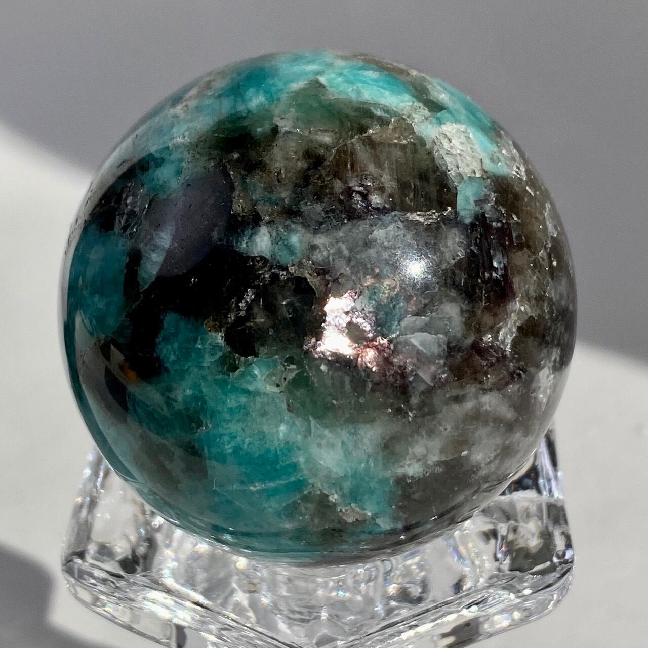 マイカ共生アマゾナイト x スモーキークォーツのスフィア Amazonite x Smoky Quartz Sphere SP2071