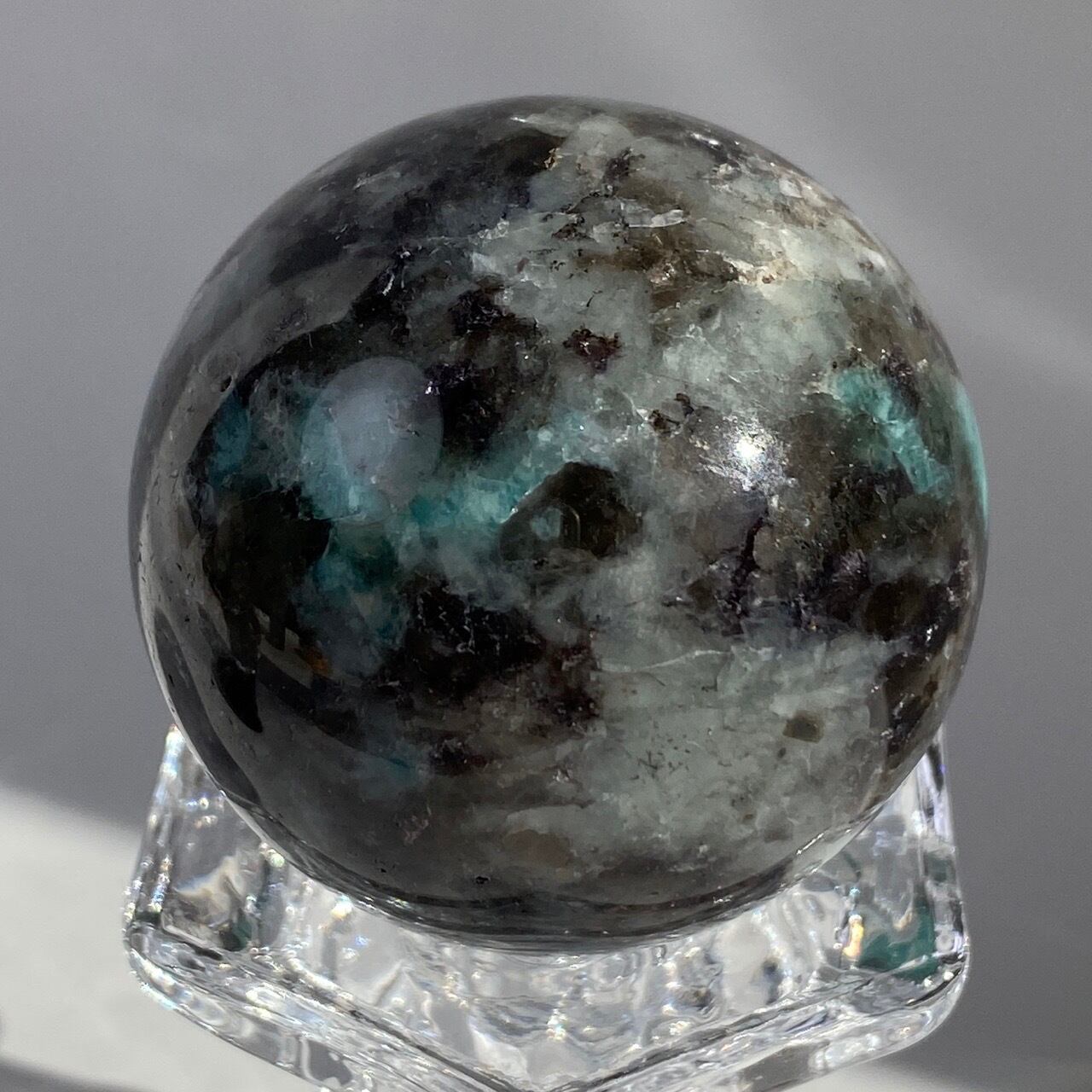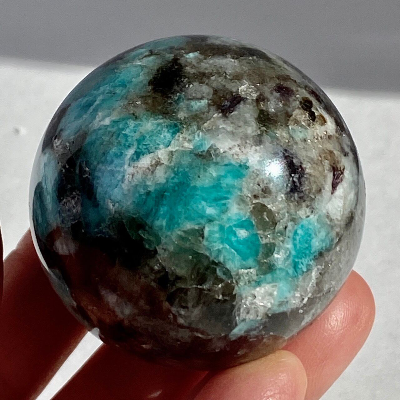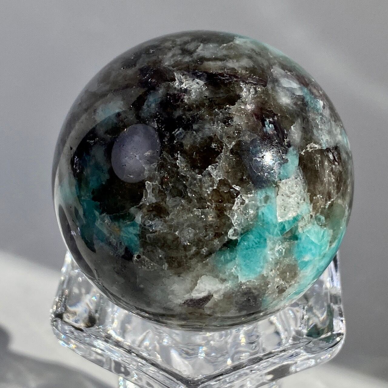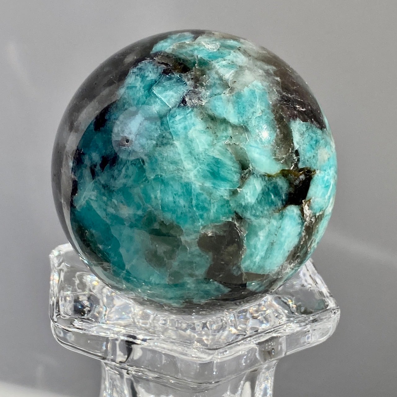マイカ共生アマゾナイト x スモーキークォーツのスフィア Amazonite x Smoky Quartz Sphere SP2071