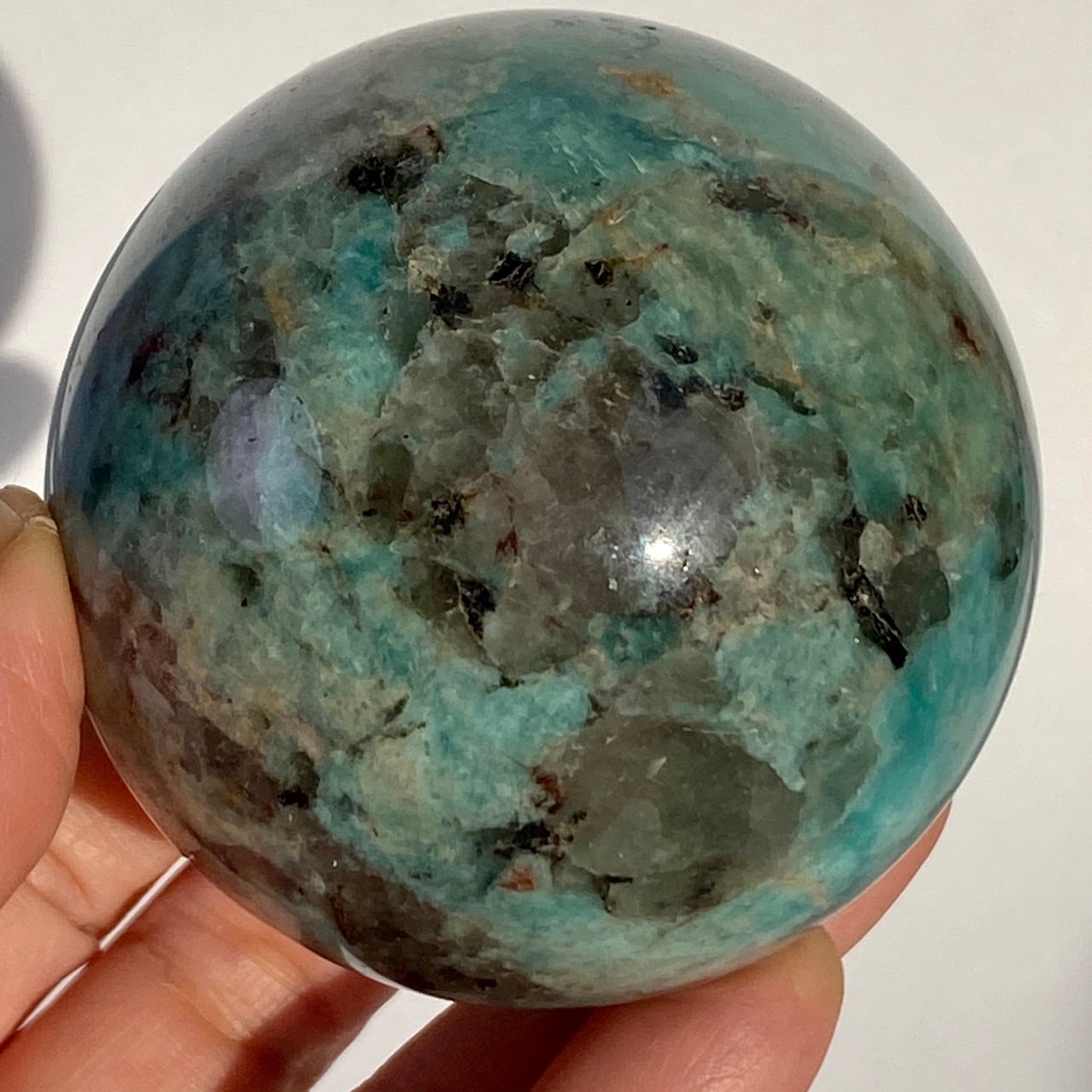 スモーキー入りアマゾナイトスフィア Amazonite Sphere with Smoky SP2072