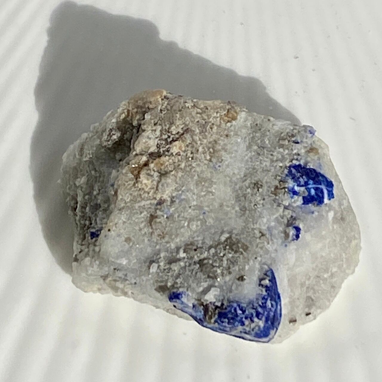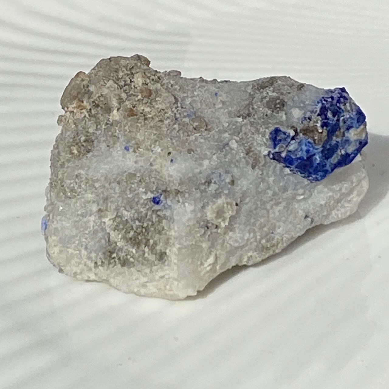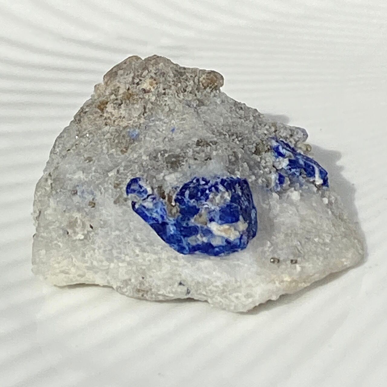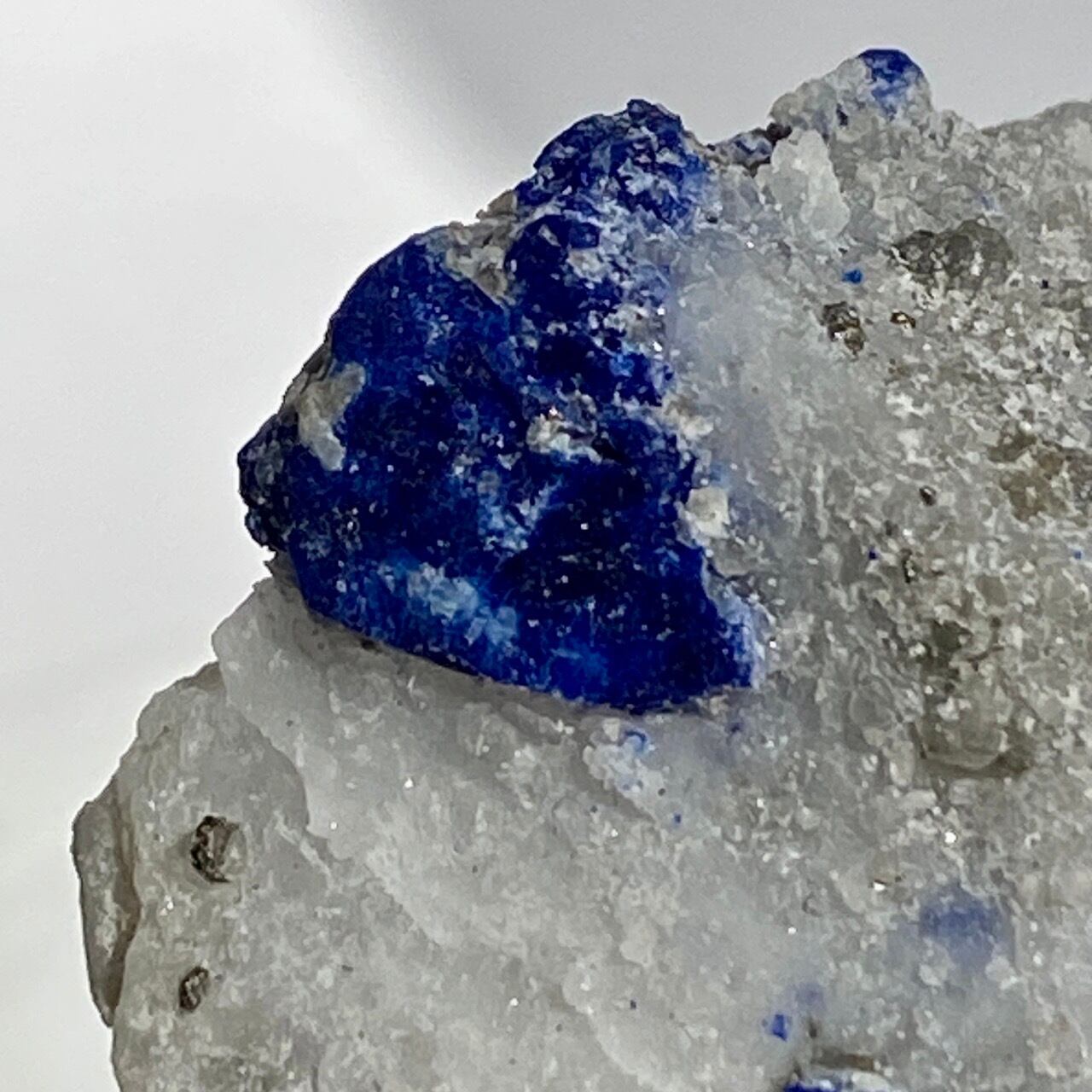 ラピスラズリの主成分でお馴染みのラズライト(LAZURITE 青金石)のスペシメンになります。このシリーズの石は、ものによってはカルサイトを含みます。母岩に配された発色の良い瑠璃色のラズライトと、ほんのわずかですが極小のパイライトが付着しています。尚、インスタグラムでこのシリーズの動画を確認頂けます。