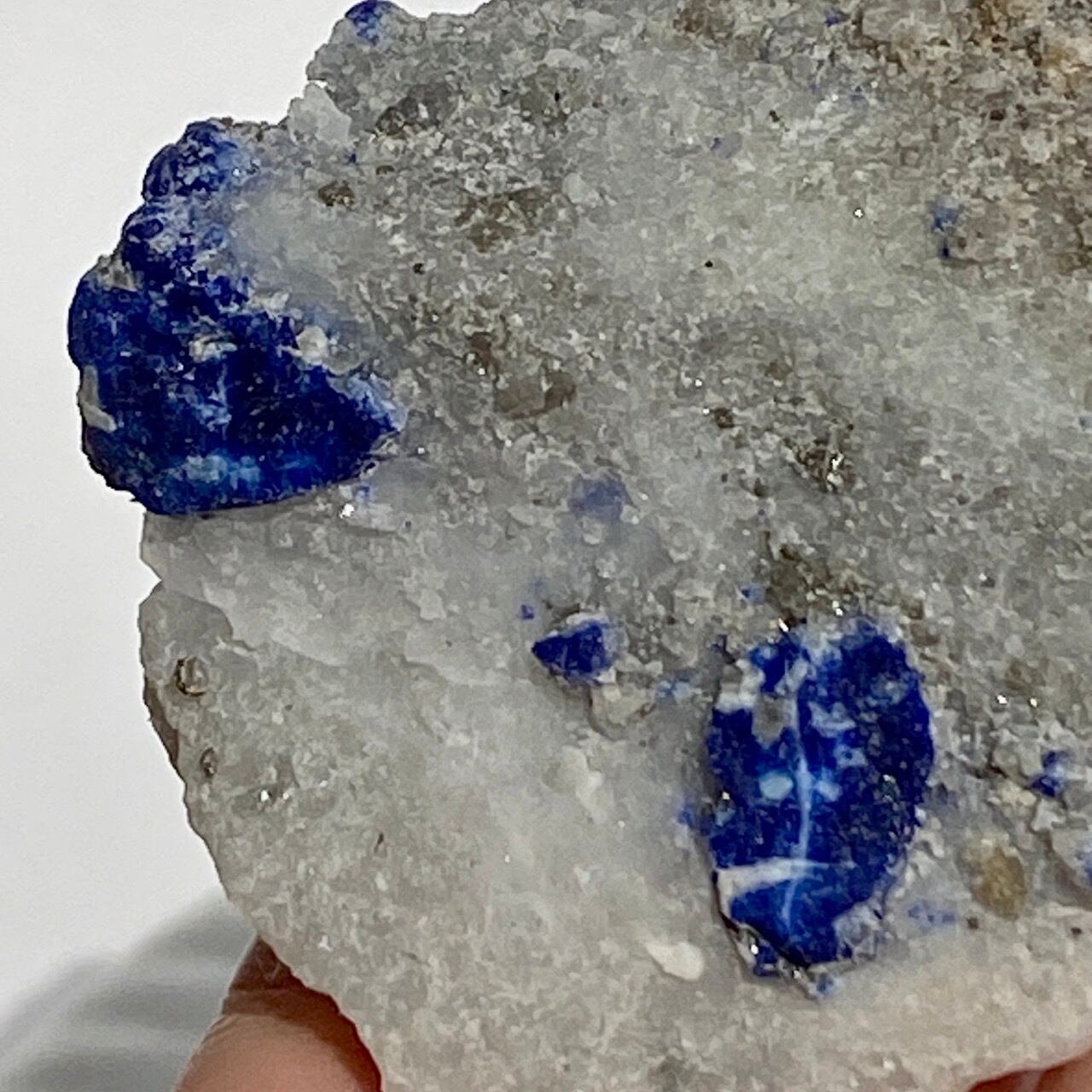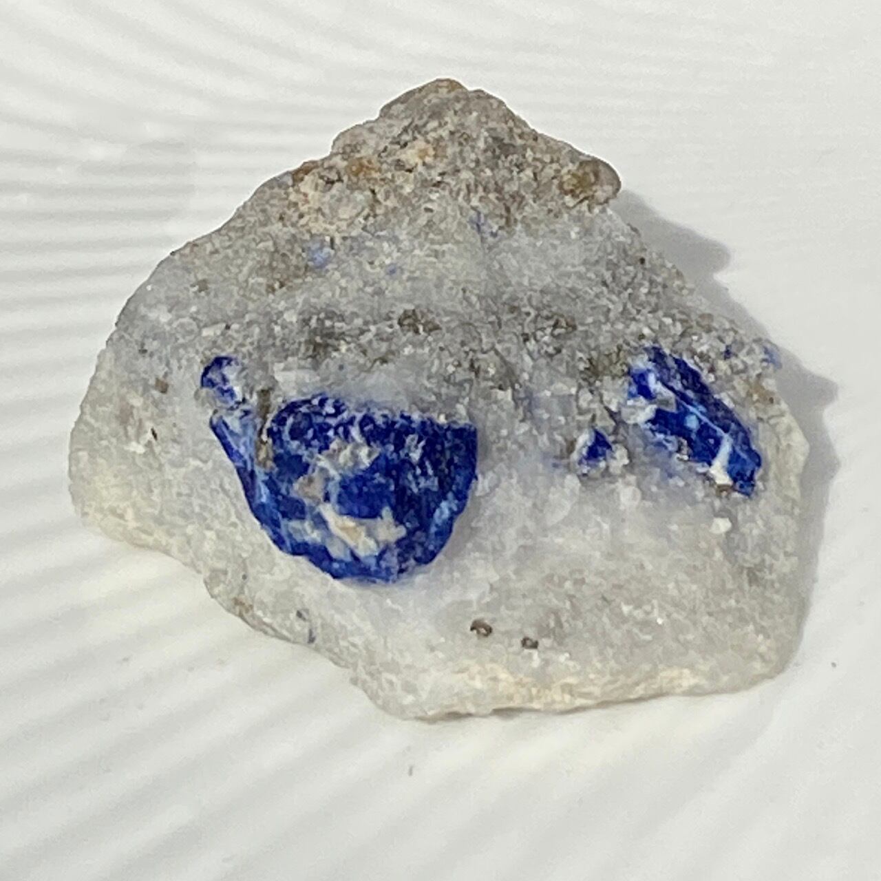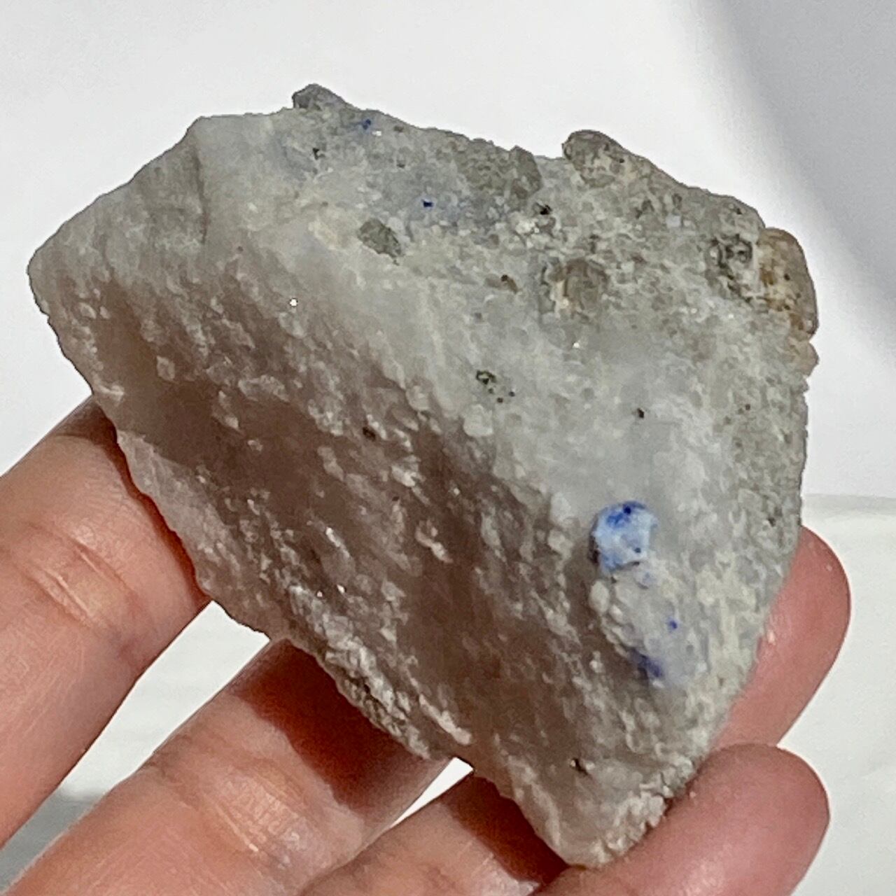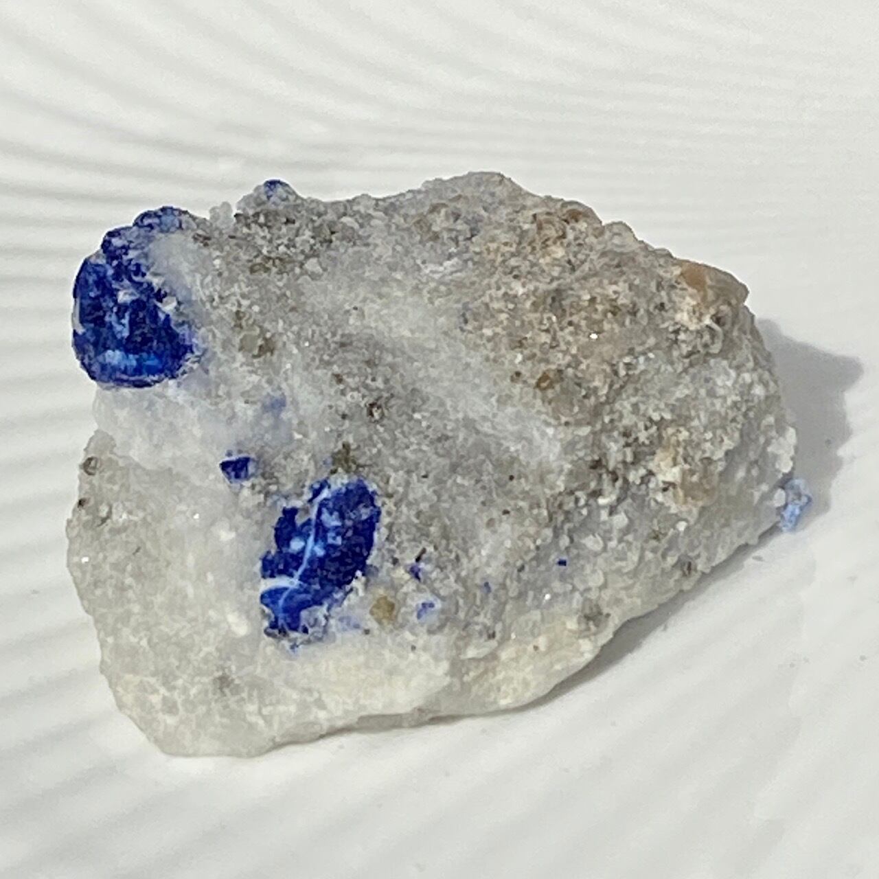 ラピスラズリの主成分でお馴染みのラズライト(LAZURITE 青金石)のスペシメンになります。このシリーズの石は、ものによってはカルサイトを含みます。母岩に配された発色の良い瑠璃色のラズライトと、ほんのわずかですが極小のパイライトが付着しています。尚、インスタグラムでこのシリーズの動画を確認頂けます。