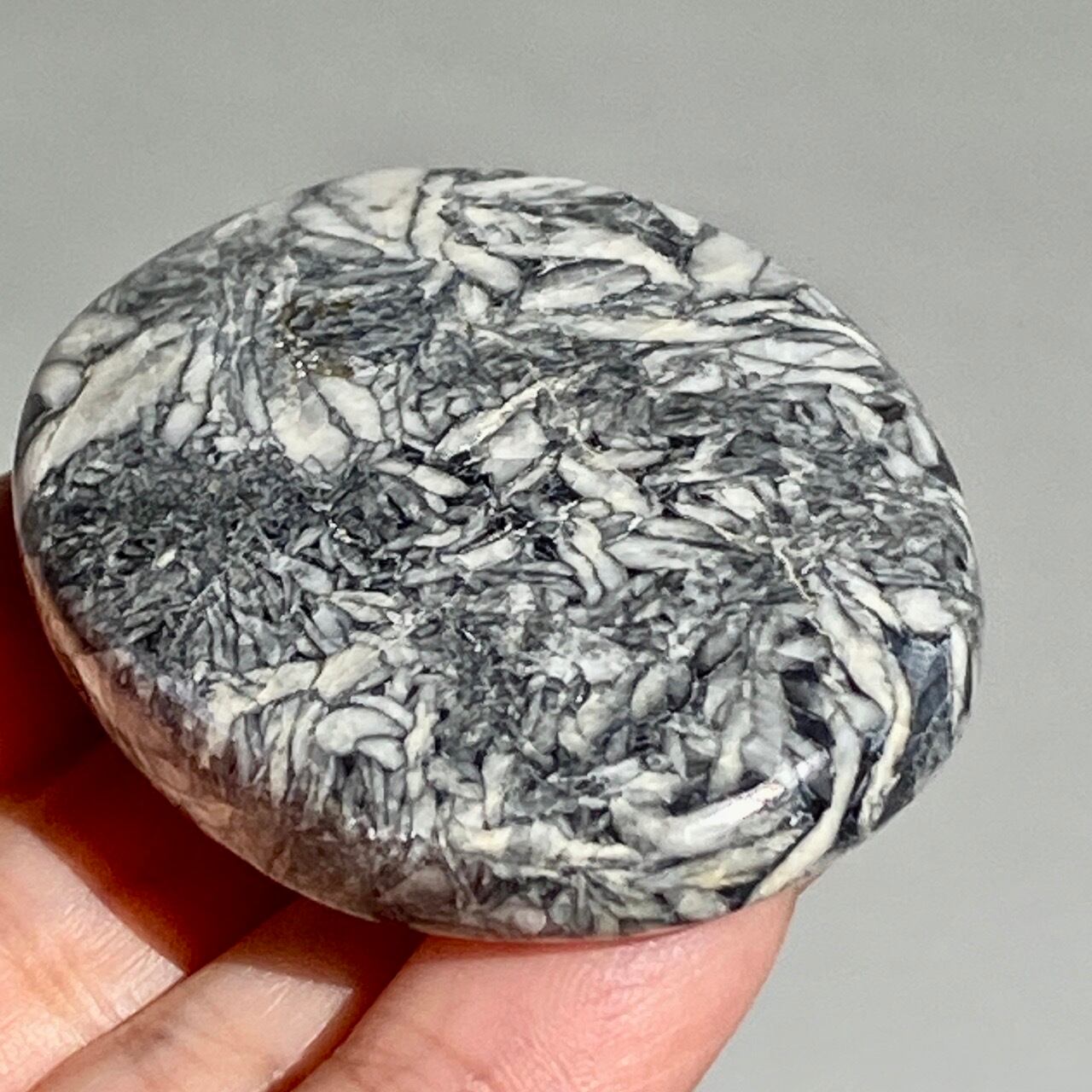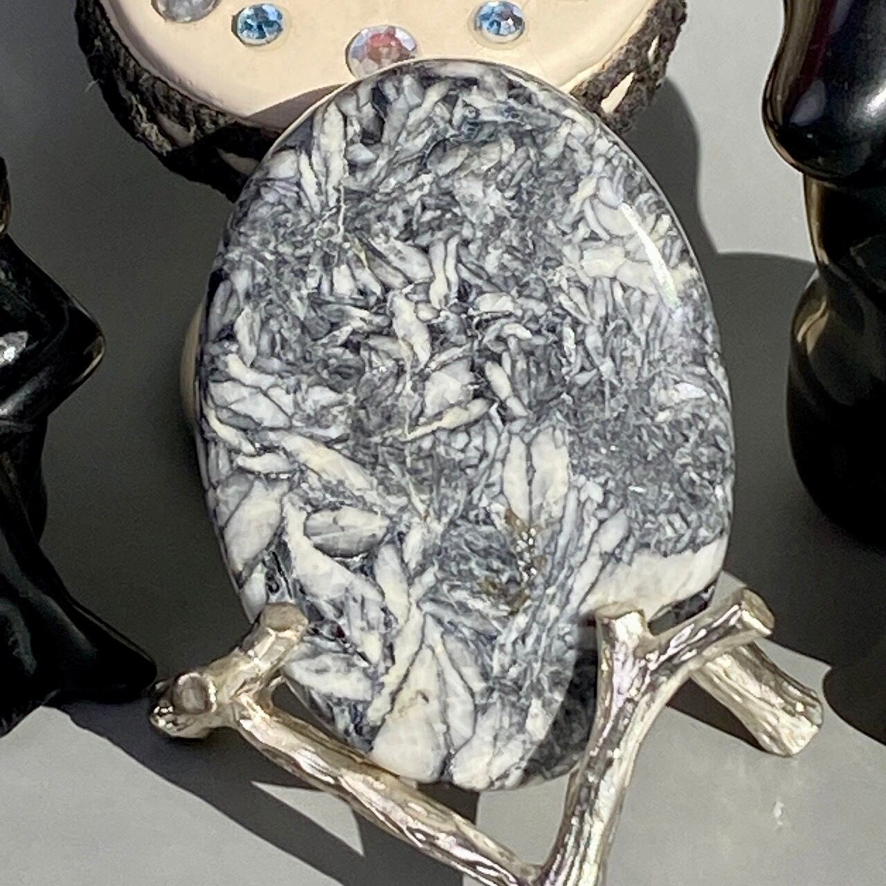 オーストリアの限られた鉱山でしか採掘されないため、非常に流通量が少ないピノリス(ピノライト)のパームストーンなります
