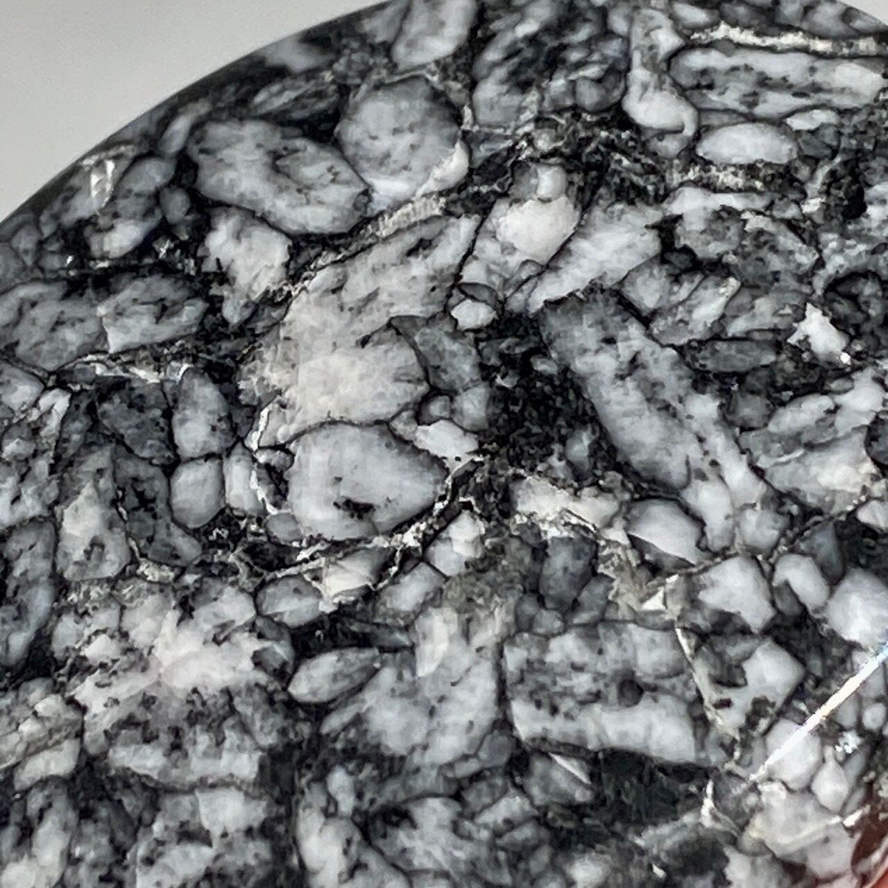 ※この石の特徴ですが、細かいクラックやチップ、そしてキズや凹みがあります。画像では表面がラフに見えますが、研磨されています。ピノリスのオフホワイト・アイボリー部分に黄身(もしくは山吹色)がかった箇所がございますが、これはピノリスの原石に含まれる色味で、避けることはできません。