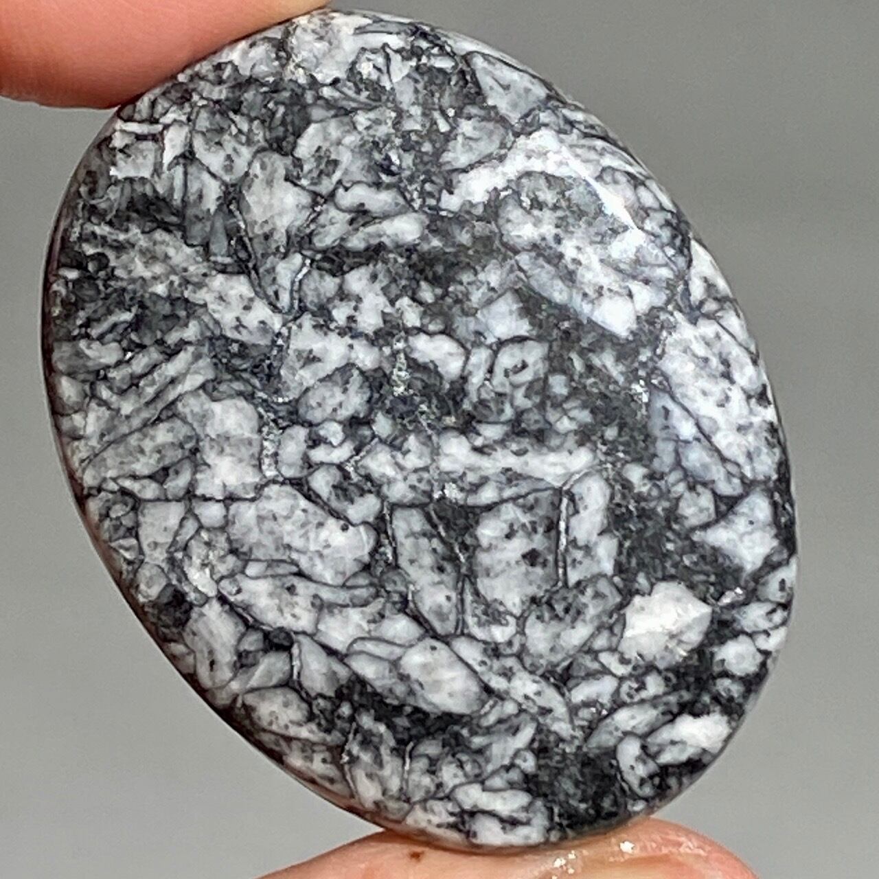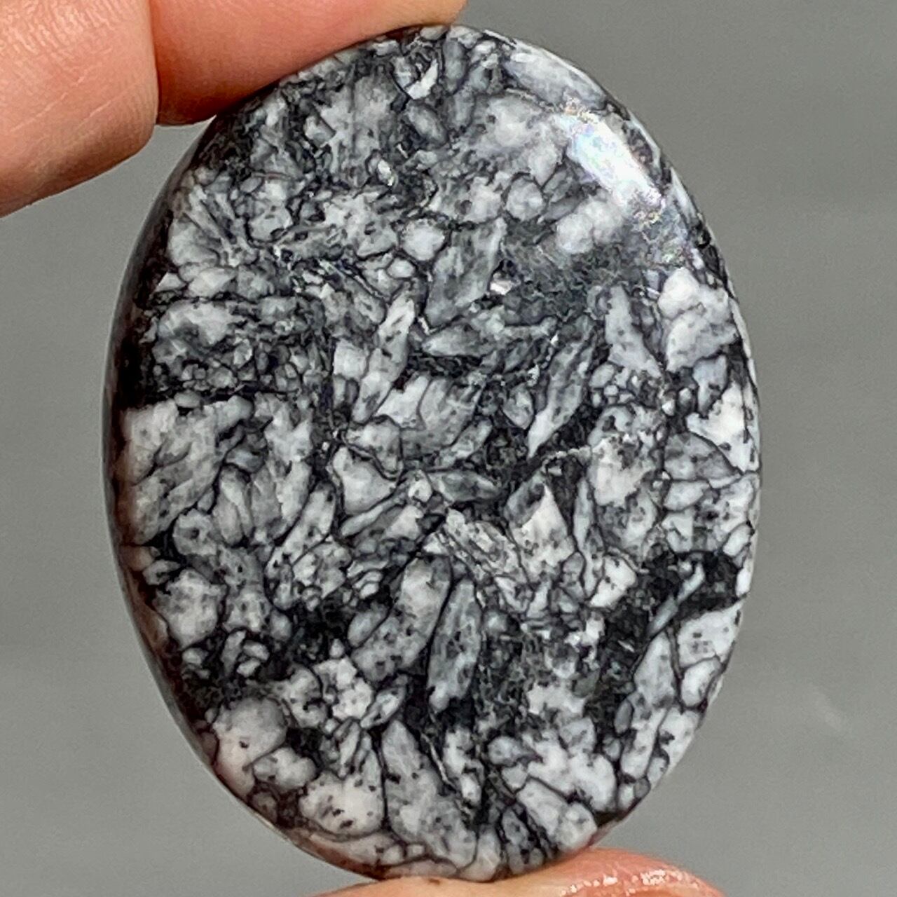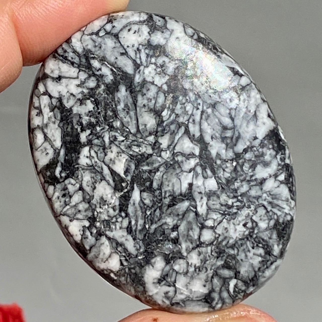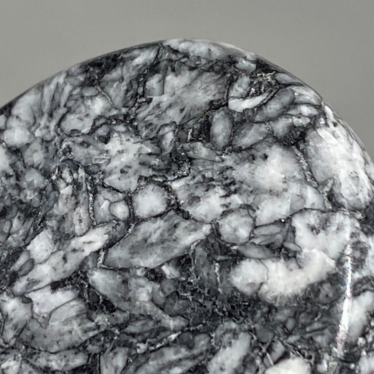 ※この石の特徴ですが、細かいクラックやチップ、そしてキズや凹みがあります。画像では表面がラフに見えますが、研磨されています。ピノリスのオフホワイト・アイボリー部分に黄身(もしくは山吹色)がかった箇所がございますが、これはピノリスの原石に含まれる色味で、避けることはできません。